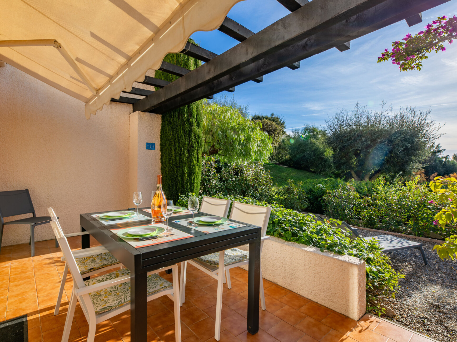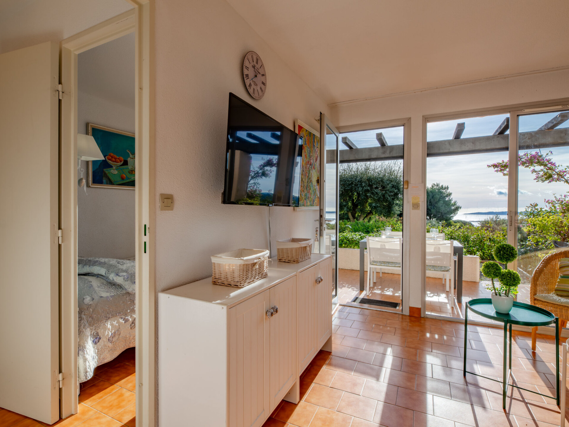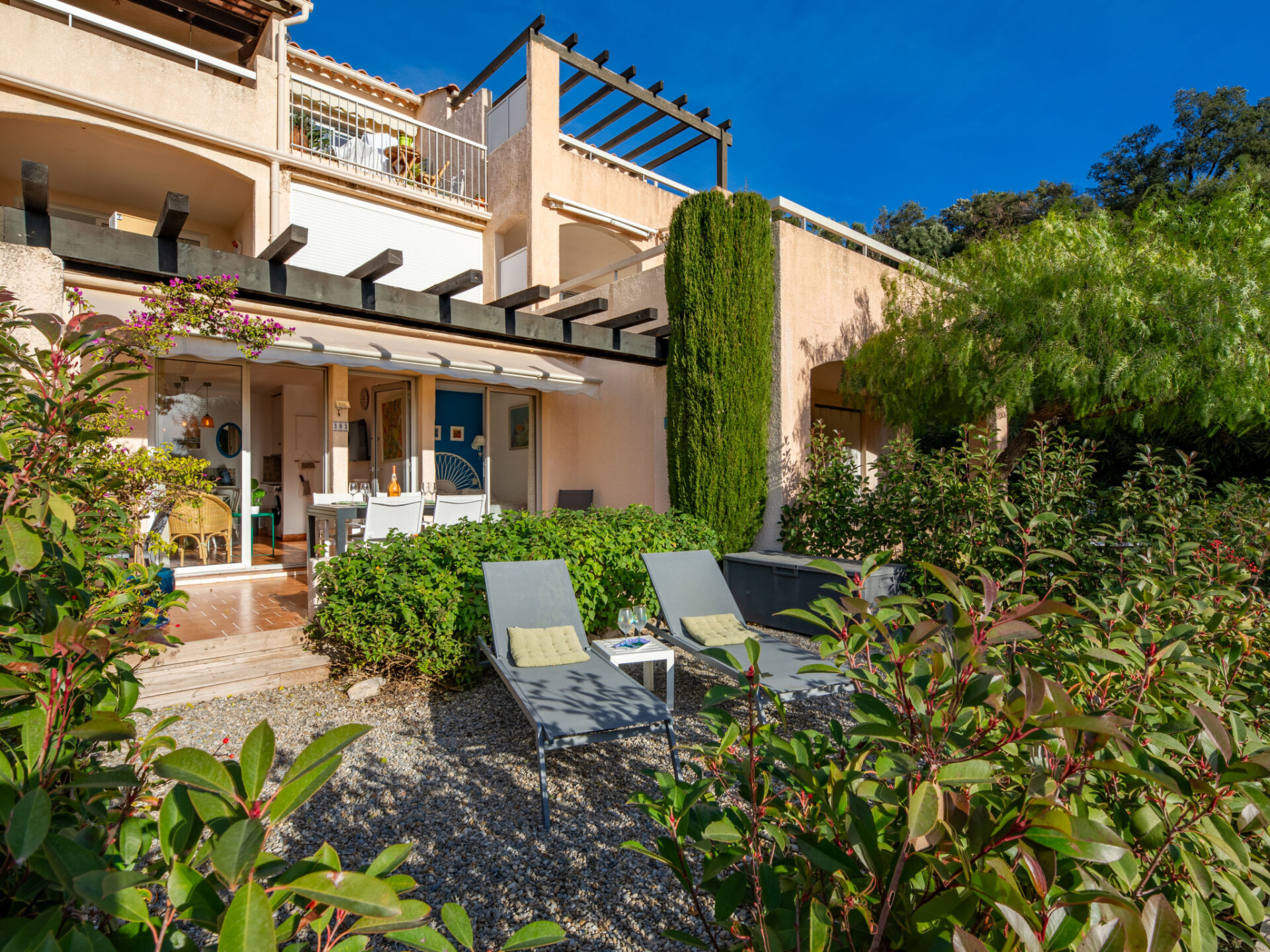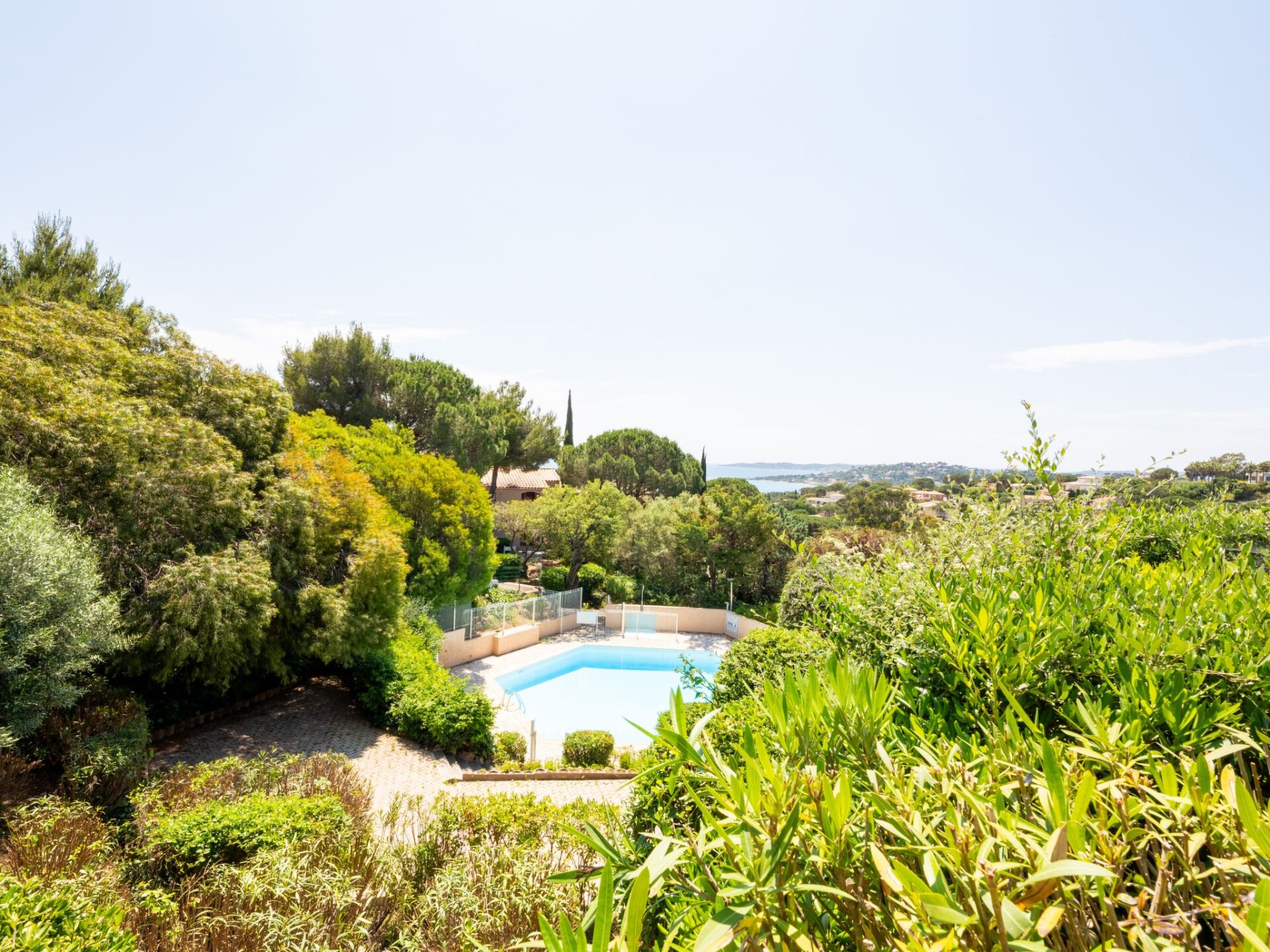 Residentie "Les Coteaux de la Nartelle". Buiten de plaats, 5 km van het centrum van Ste Maxime, zonnige, verhoogde ligging tegen een helling, 400 m van zee, 400 m van het strand. Voor medegebruik: park 10 ha met planten en bomen, openluchtzwembad (6 m diameter, 140 - 240 cm diepte, seizoensgebonden beschikbaarheid: 01.Jun. - 30.Sep.). Tafeltennis, jeu de boules. Trappenweg naar het huis. Parkeerplaats (beperkt aantal). Winkel 5 km, supermarkt 2.5 km, winkelcentrum 5 km, restaurant 400 m, bushalte 700 m, treinstation "Saint-Raphael TGV" 20 km, zandstrand "Plage des Elephants" 400 m (klein), thermaalbad "Thalassothérapie Les Issambres" 7 km. Jachthaven 4 km, golfterrein (18 holes) 5 km, tennis 3 km. Attracties in de buurt: Aqualand waterpark 6 km, Azur Park attractions 16 km, Saint-Tropez/Ramatuelle 18 km, Port-Grimaud 13 km, Gorges du Verdon 95 km, Navette / shuttle boat St-Tropez 15min 4 km. Wandelgebied Massif des Maures 5 km, Massif de l'Esterel 25 km. Auto noodzakelijk, geen lift. Gesloten residentie met een elektrische deur. De sleuteloverdracht vindt plaats bij het agentschap Interhome in Sainte-Maxime, 5 km. Vergelijkbare accommodaties kunnen worden geboekt.