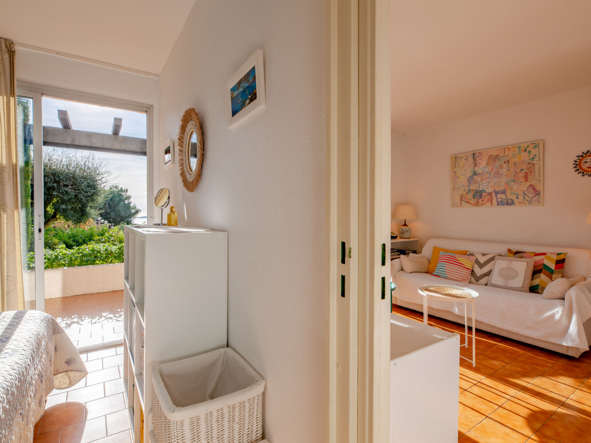 Appartement 2-kamers 30 m2, op verhoogde begane grond, op het zuiden gelegen. Licht, mooi ingericht: woon-/eetkamer met 1 2-pers divanbed (1 x 140 cm, lengte 190 cm), TV (Flatscreen TV). Uitgang naar het terras, naar de zitplaats in de tuin. 1 kamer met 1 2-pers bed (1 x 140 cm, lengte 190 cm). Uitgang naar het terras, naar de zitplaats in de tuin. Open keuken (afwasmachine, 4 keramische glas kookplaten, broodrooster, waterkoker, diepvriezer, elektrische koffiemachine, combimagnetron). Douche/WC. Elektrische verwarming. Terras 16 m2, op het zuiden gelegen, kleine zithoek in de tuin 20 m2, op het zuiden gelegen. Terrasmeubelen, ligstoelen (2). Uitzicht op zee. Ter beschikking: wasmachine, strijkijzer, haardroger. Internet (WiFi, extra). Parkeerplaats. Niet rokers woning. Maximaal 1 huisdier/hond toegestaan. Rookmelders. Aanbod door een particulier volgens art. 155, IV van CGI. 83115001076HT