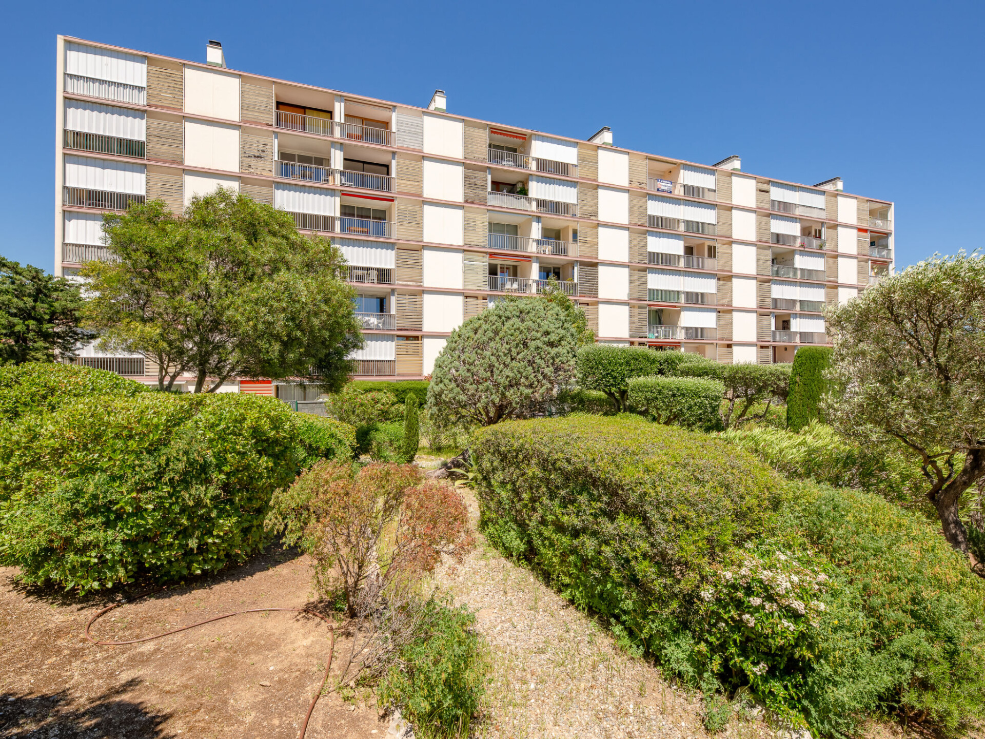 Appartement 2-kamers 46 m2 op de 1e verdieping, op het zuidoosten gelegen. Licht, gerenoveerd, comfortabel en mooi ingericht: hal. Woon-/eetkamer met 1 2-pers divanbed (1 x 140 cm, lengte 190 cm), TV (Flatscreen TV), air-conditioning. Uitgang naar het terras. 1 kamer, op het westen met 1 2-pers bed (1 x 140 cm, lengte 190 cm), ventilator. Keuken (oven, afwasmachine, 3 inductiekookplaten, broodrooster, waterkoker, magnetron, diepvriezer, elektrische koffiemachine). Douche, aparte WC. Elektrische verwarming. Terras 10 m2. Terrasmeubelen. Uitzicht op zee, het zwembad en de tuin. Ter beschikking: wasmachine, strijkijzer. Internet (WiFi, extra). Parkeerplaats nr. 702. Niet rokers woning. Maximaal 1 klein huisdier/hond toegestaan. Rookmelders. 83115003459NH