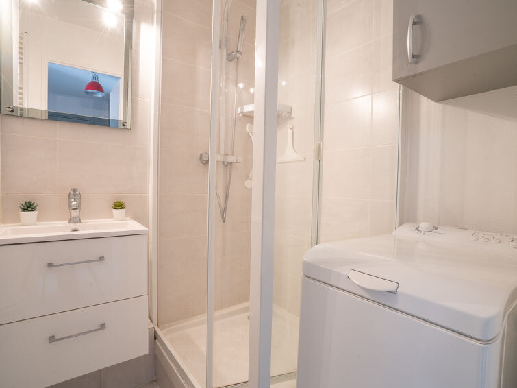 Appartement 2-kamers 30 m2 op de 1e verdieping. Gedeeltelijk gerenoveerd, mooi ingericht: woon-/eetkamer met 1 2-pers divanbed (140 cm), TV (Flatscreen TV), air-conditioning. 1 kleine kamer 5 m2 met 1 2-pers bed (140 cm, lengte 190 cm). Kookhoek (oven, afwasmachine, 3 inductiekookplaten, broodrooster, waterkoker, magnetron, elektrische koffiemachine, pads voor de koffiemachine (Dolce gusto) extra). Douche/WC. Klein balkon 4 m2, op het westen gelegen, terras 8 m2, op het zuiden gelegen. Terrasmeubelen. Ter beschikking: wasmachine. Internet (Internet (WiFi), extra). Parkeerplaats. Woning aan de straatzijde. Rookmelders.