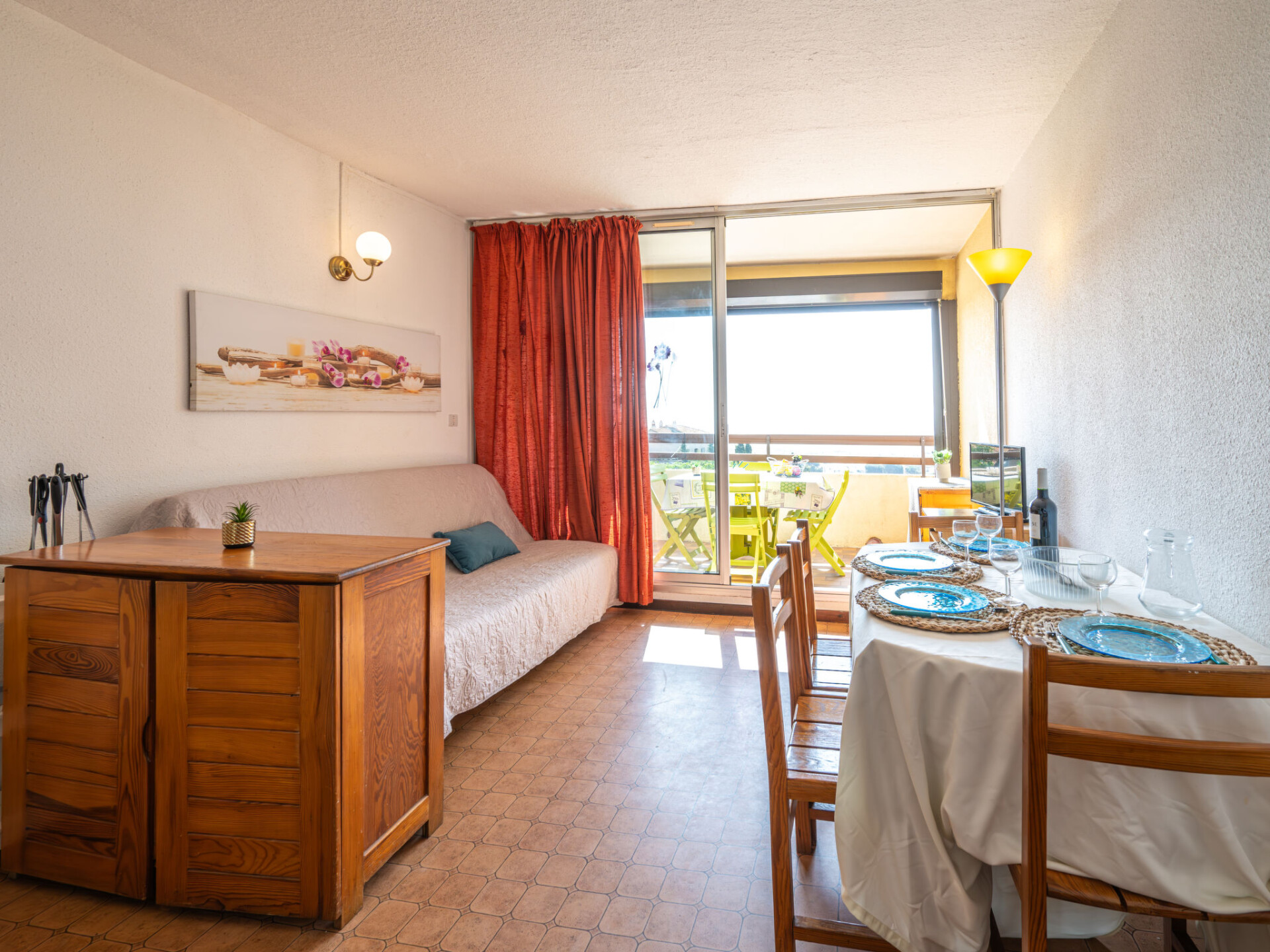 Appartement 2-kamers 25 m2 op de 1e verdieping. Woon-/eetkamer met TV (Flatscreen TV). Uitgang naar de loggia. 1 kleine kamer met 1 2-pers divanbed. Hal met 1 x 2 stapelbedden. Kookhoek (2-pits kookplaat, oven, magnetron). Bad/WC. Elektrische verwarming. Balkon, op het oosten gelegen. Terrasmeubelen. Uitzicht op zee. Ter beschikking: Internet (Internet (WiFi), extra). Maximaal 1 huisdier/hond toegestaan. Rookmelders. In plaats van een afgesloten slaapkamer bevinden sommige slaapgedeeltes zich in een open ruimte (galerij, nis, etc.). Aanbod door een particulier volgens art. 155, IV van CGI.