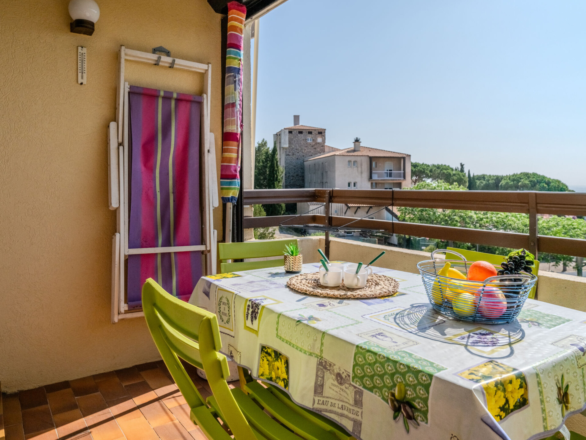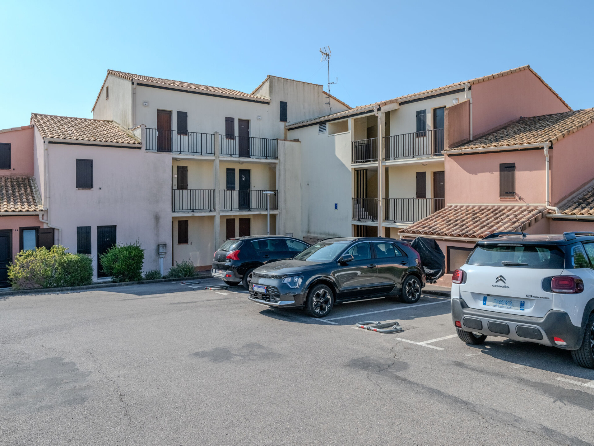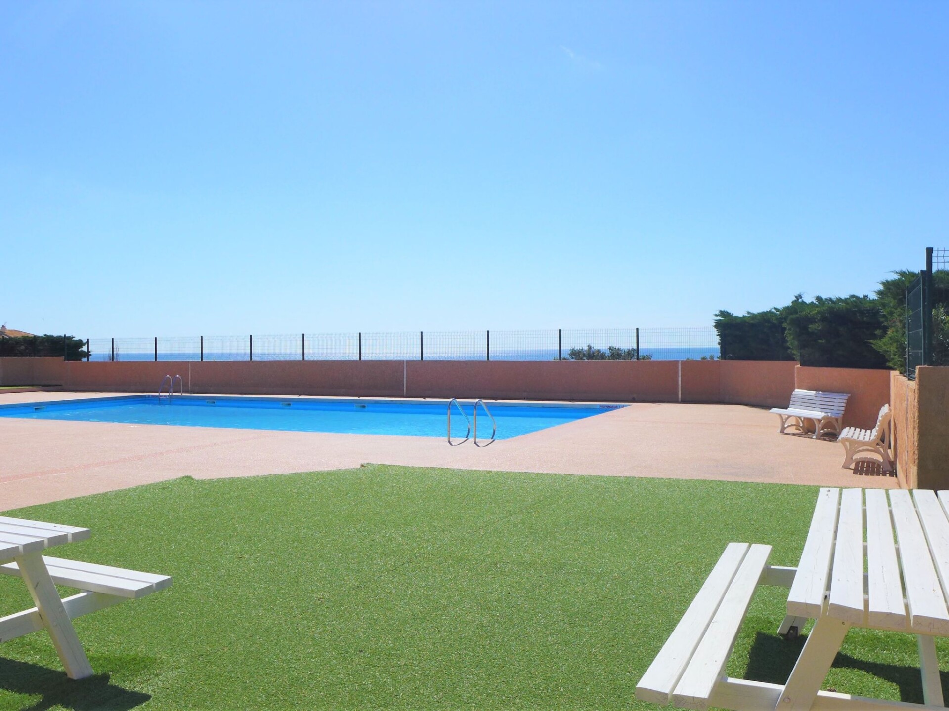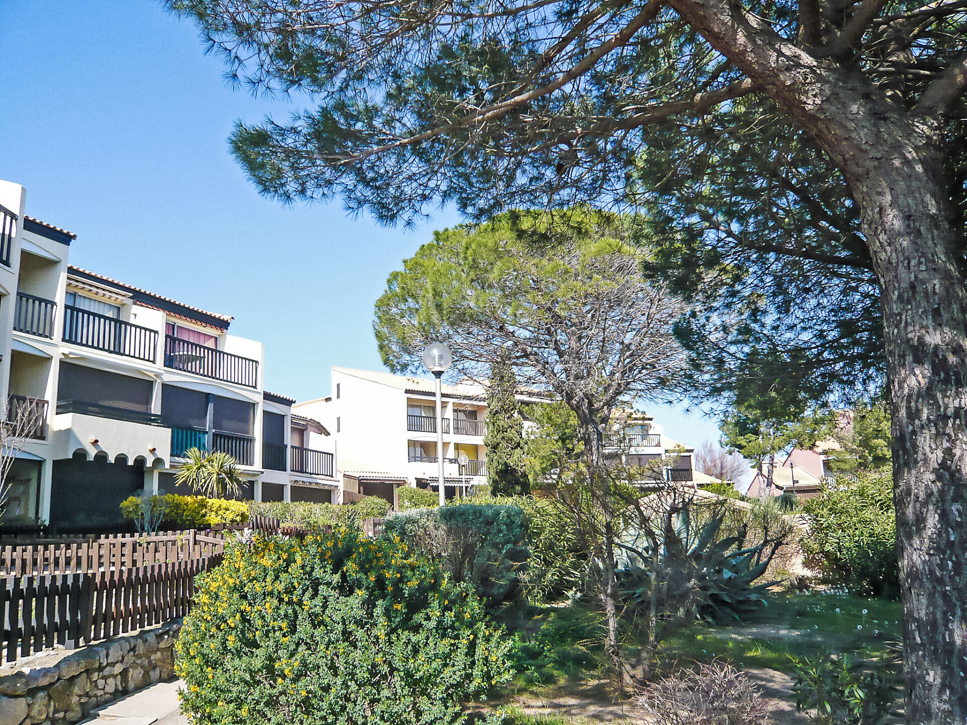 Het complex "Les Eaux Vives" bestaat uit kleine rijtjeshuizen en kleine appartementsgebouwen, gegroepeerd op eilandjes. Residentie "Les Eaux Vives 1 & 2". 195 huizen in de woning. 233 appartementen in de woning. Boven Saint Pierre La Mer, 600 m van het centrum, verhoogde ligging, 900 m van zee. Voor medegebruik: openluchtzwembad (15 x 8 m, 95 - 140 cm diepte, seizoensgebonden beschikbaarheid: 15.Jun. - 31.Aug.) met trap. Parkeerplaats. Winkel, levensmiddelenwinkel 500 m, restaurant 800 m, bushalte 50 m, zandstrand 600 m, duikschool 1.8 km, overdekt zwembad 15 km, fKK-strand 5 km. Jachthaven 1.8 km, manege 3 km. Attracties in de buurt: Réserve Africaine de Sigean 36 km, Cité de Carcassonne 78 km, Espace balnéoludique de Gruissan 11 km. De sleuteloverdracht vindt plaats bij het agentschap Interhome in Narbonne Plage, 3 km. De afgebeelde foto is slechts een voorbeeld. Let op: "Les Eaux Vives 1" en "Les Eaux Vives 2" beschikken elk over een eigen zwembad.