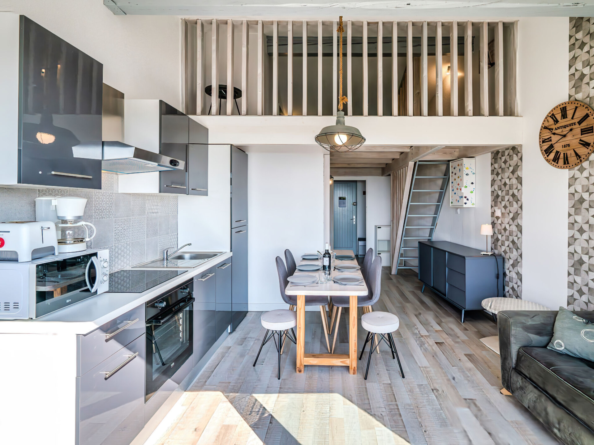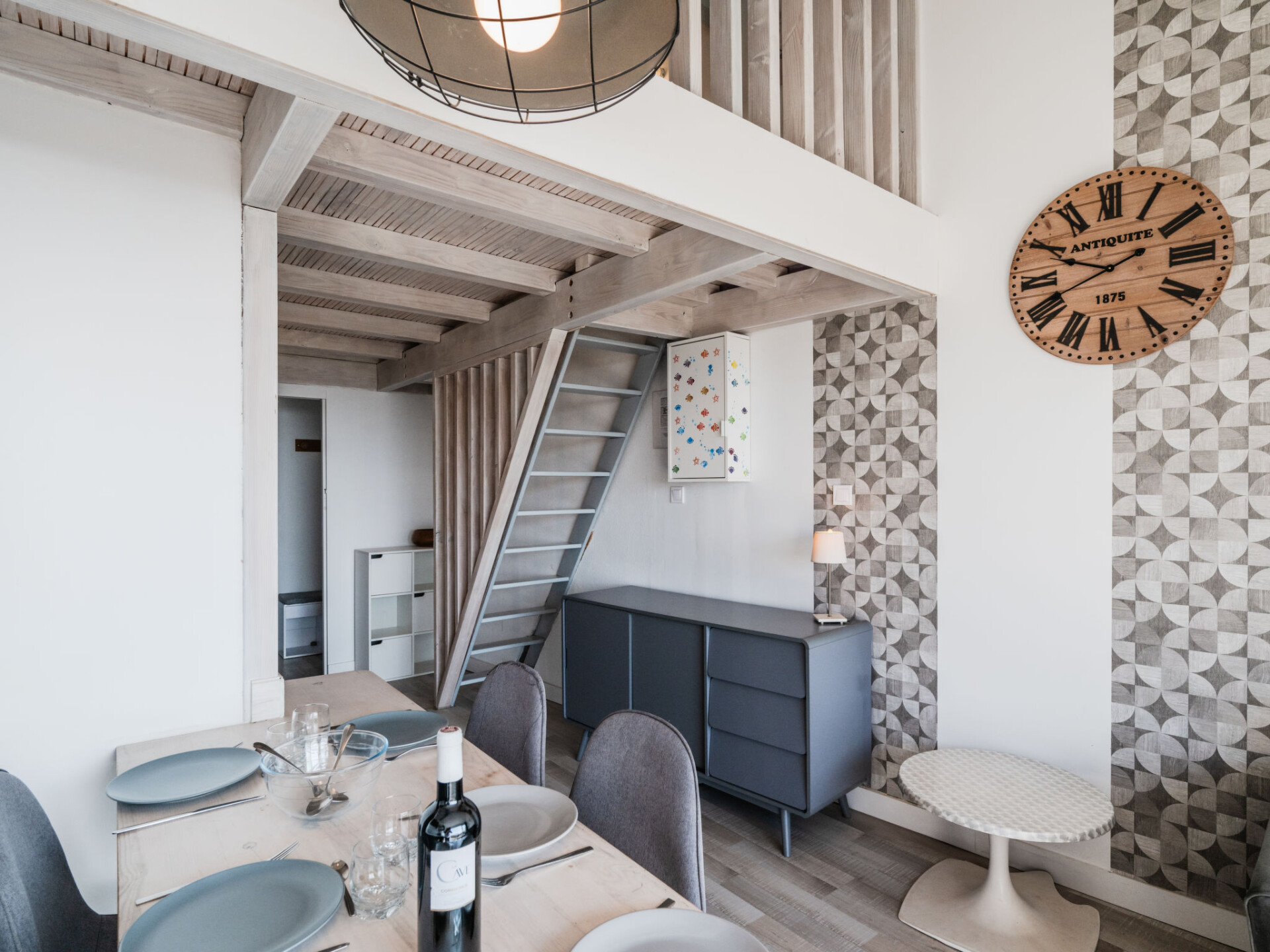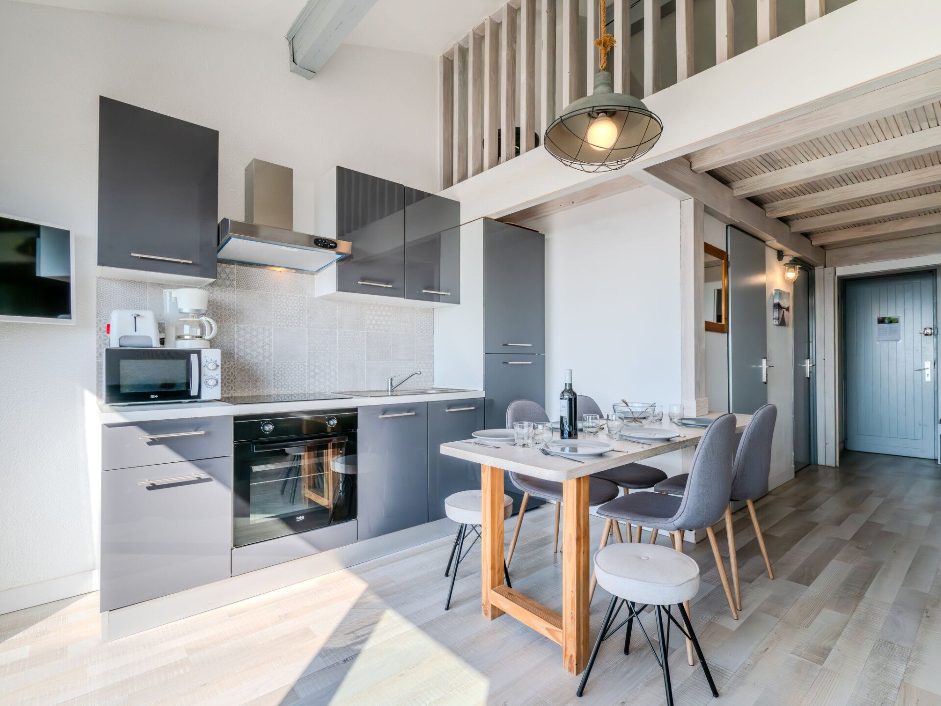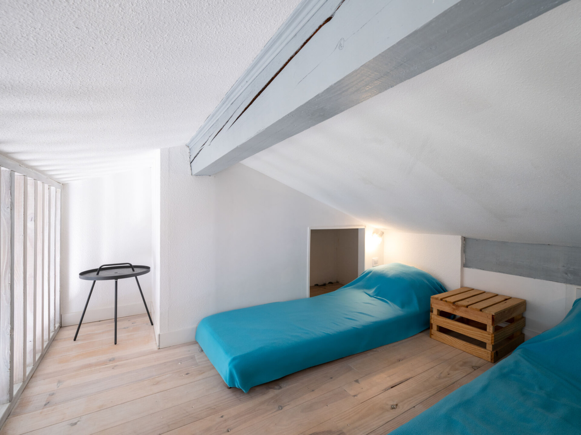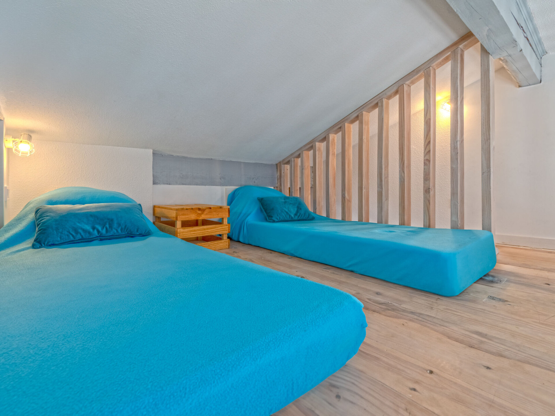 Appartement 2-kamers 25 m2 op de 2e verdieping, op het oosten gelegen. Woon-/eetkamer met 1 2-pers divanbed en TV (Flatscreen TV). 1 kleine kamer met 1 x 2 stapelbedden. Open galerij met afgeschuinde daken, hoogte van het plafond 60 - 120 cm met 2 bedden (70 cm, lengte 190 cm). Kookhoek (2-pits kookplaat, oven, magnetron). Douche/WC. Elektrische verwarming. Balkon, op het oosten gelegen. Terrasmeubelen, loggia. Uitzicht op zee. Ter beschikking: Internet (WiFi, extra). Maximaal 1 huisdier/hond toegestaan. Rookmelders. In plaats van een afgesloten slaapkamer bevinden sommige slaapgedeeltes zich in een open ruimte (galerij, nis, etc.). Aanbod door een particulier volgens art. 155, IV van CGI.