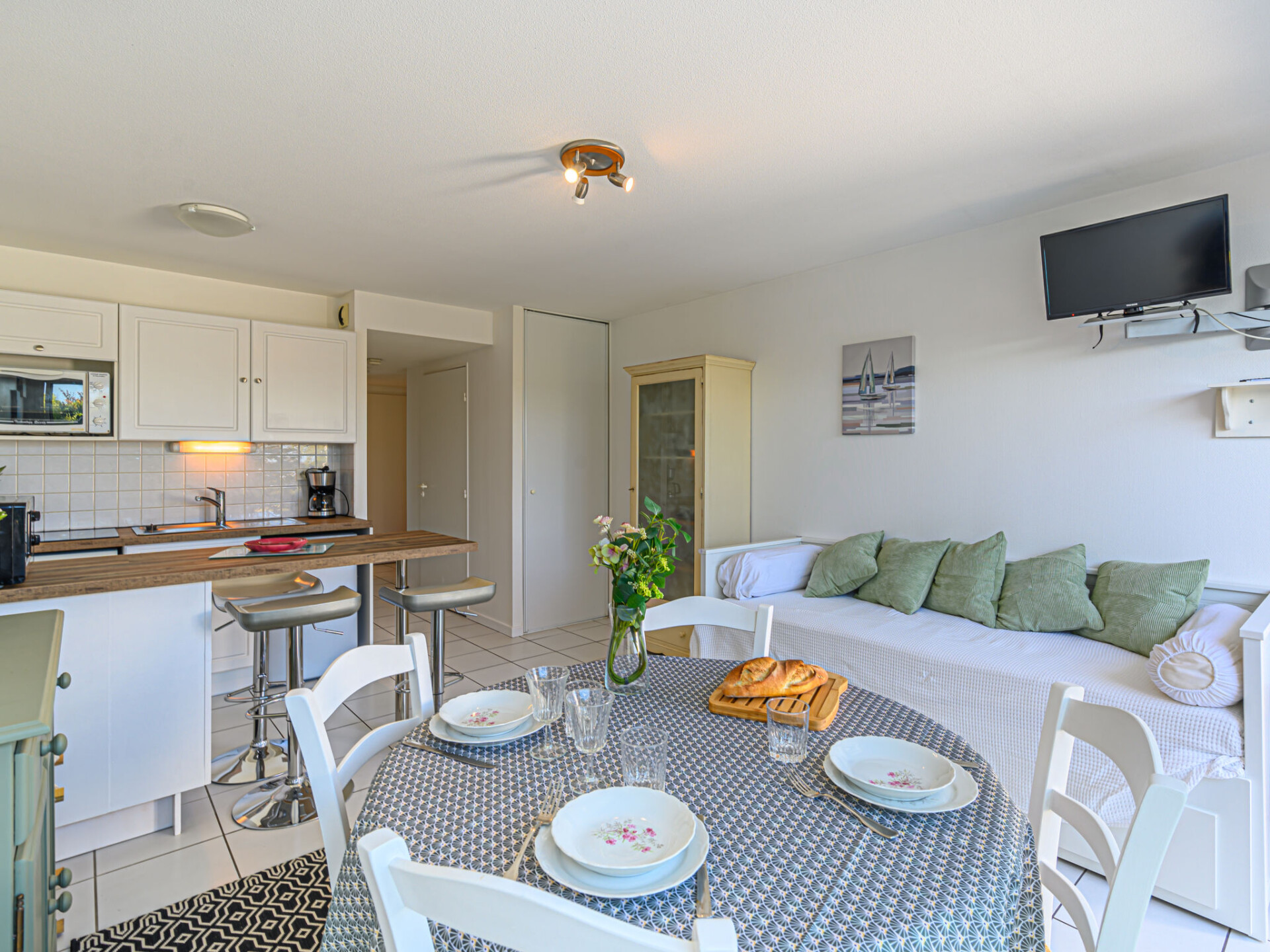 "Les Eiders", appartement 2-kamers 32 m2, op de begane grond, op het zuiden gelegen. Comfortabel ingericht: woon-/eetkamer met 1 bed (90 cm, lengte 190 cm), TV (Flatscreen TV). Uitgang naar het terras. 1 kamer met 2 bedden (90 cm, lengte 190 cm). Kookhoek (oven, afwasmachine, 3 inductiekookplaten, broodrooster, waterkoker, elektrische koffiemachine). Douche, aparte WC. Klein terras, op het zuiden gelegen. Terrasmeubelen, ligstoelen (2). Ter beschikking: wasmachine, strijkijzer, haardroger. Internet (WiFi, extra). Parkeerplaats nr. 5. Niet rokers woning. Rookmelders. Aanbod door een particulier volgens art. 155, IV van CGI. 56034000837D5