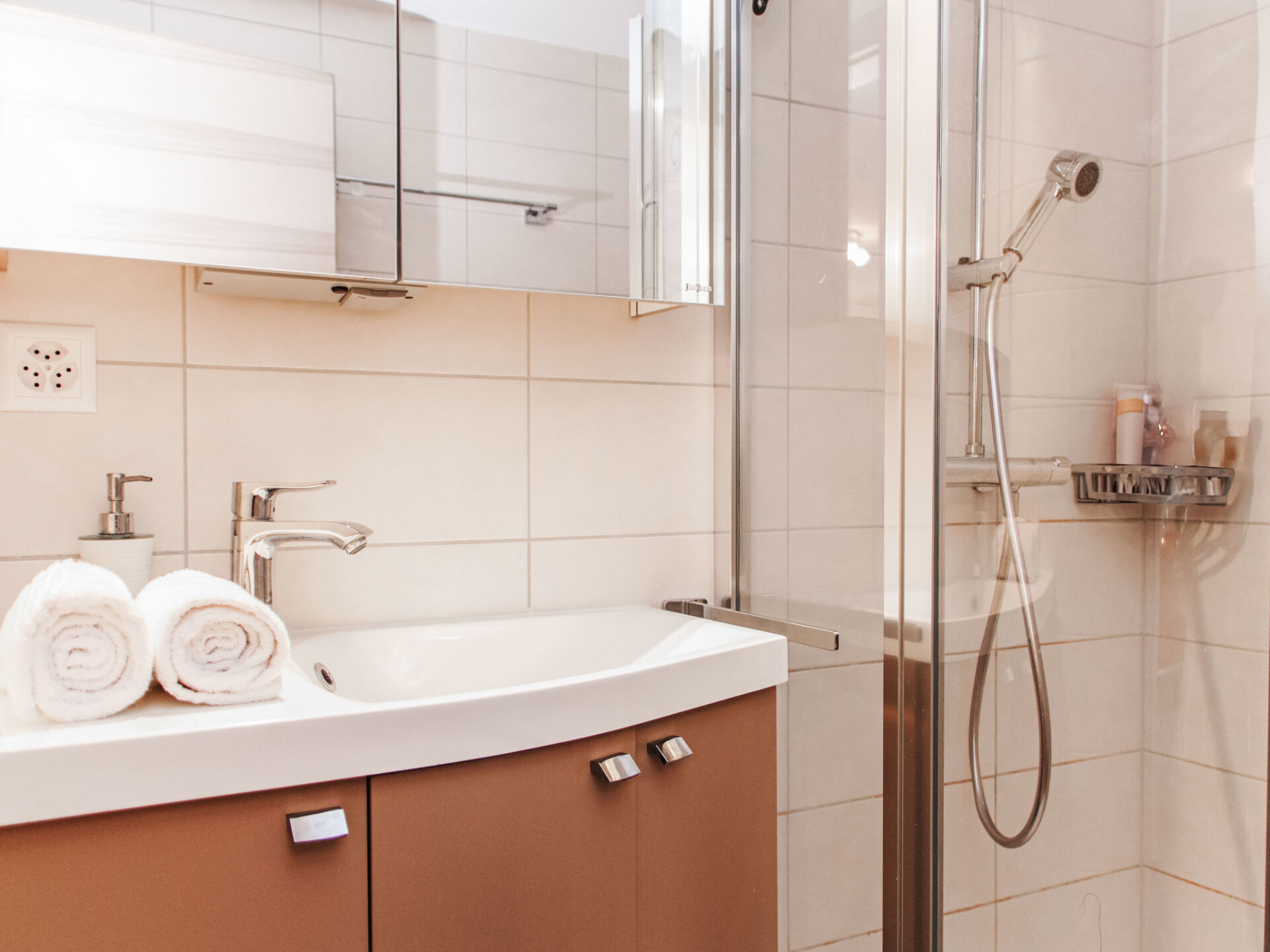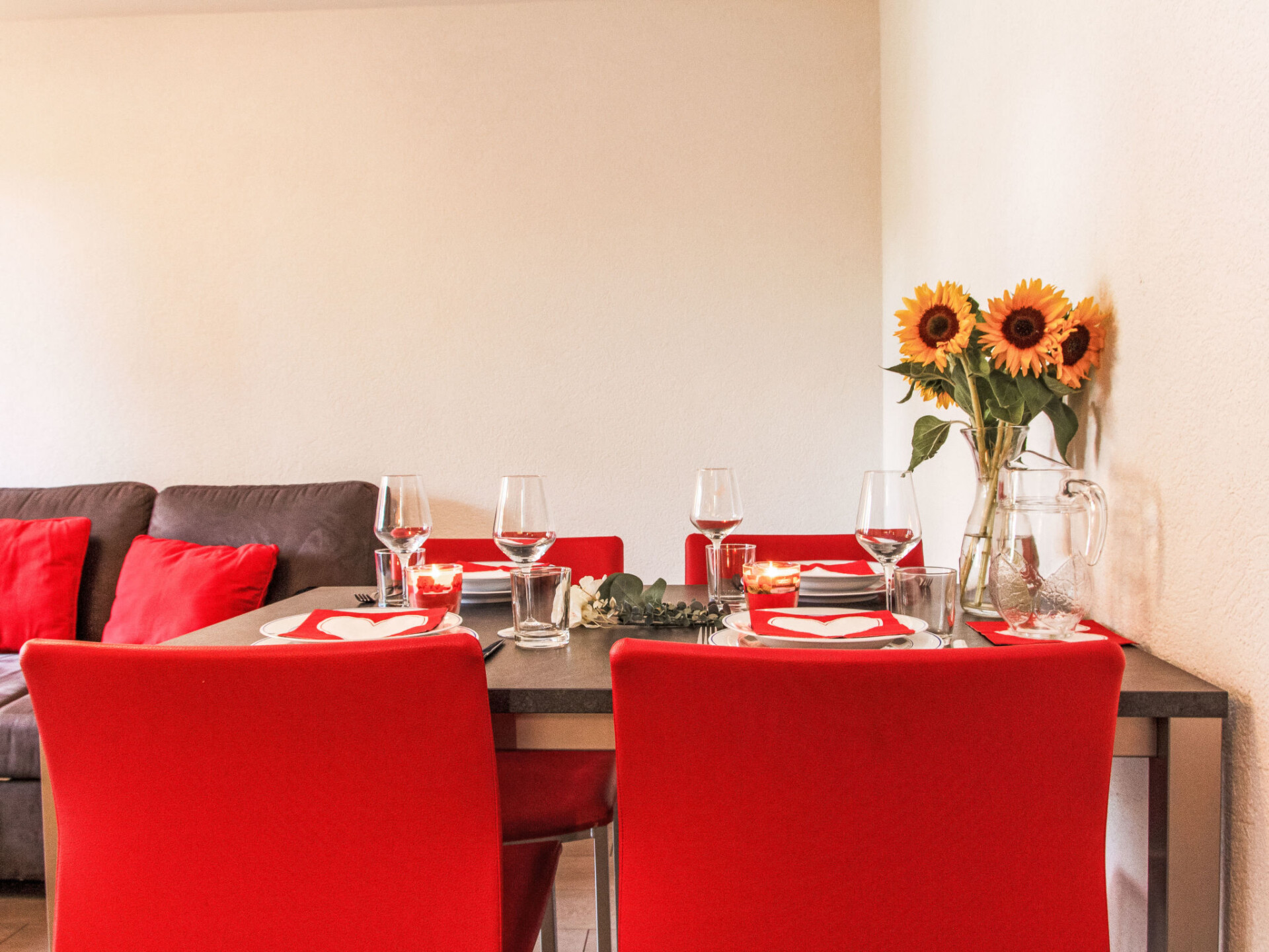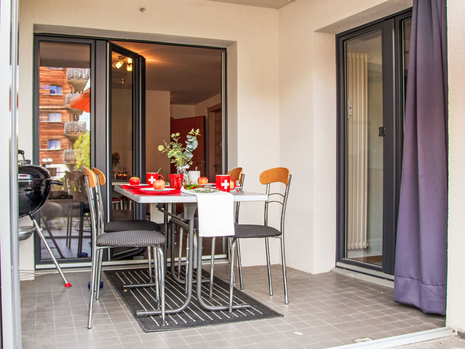 "Les Genets 124D", appartement 2-kamers 45 m2, op verhoogde begane grond, op het westen gelegen. Het objekt is geschikt voor 2 volwassenen + 2 kinderen. Gedeeltelijk gerenoveerd, doelmatig en comfortabel ingericht: hal. Woon-/eetkamer met Kabel-TV. Uitgang naar het terras. 1 kamer met 1 x 2 stapelbedden (90 cm, lengte 190 cm), 1 2-pers bed (2 x 90 cm, lengte 190 cm). Open keuken (oven, afwasmachine, 4 keramische glas kookplaten, broodrooster, waterkoker, elektrische koffiemachine, pads voor de koffiemachine (Nespresso) extra, raclette oven, fondue Set (kaas)). Douche/WC. Terras, op het westen gelegen. Terrasmeubelen, barbecue. Beperkt uitzicht op de bergen. Ter beschikking: Internet (WiFi, gratis). Parkeerplaats nr. 124D (overdekt, 1 Auto), hoogte 200 cm, breedte 240 cm. Niet rokers woning.