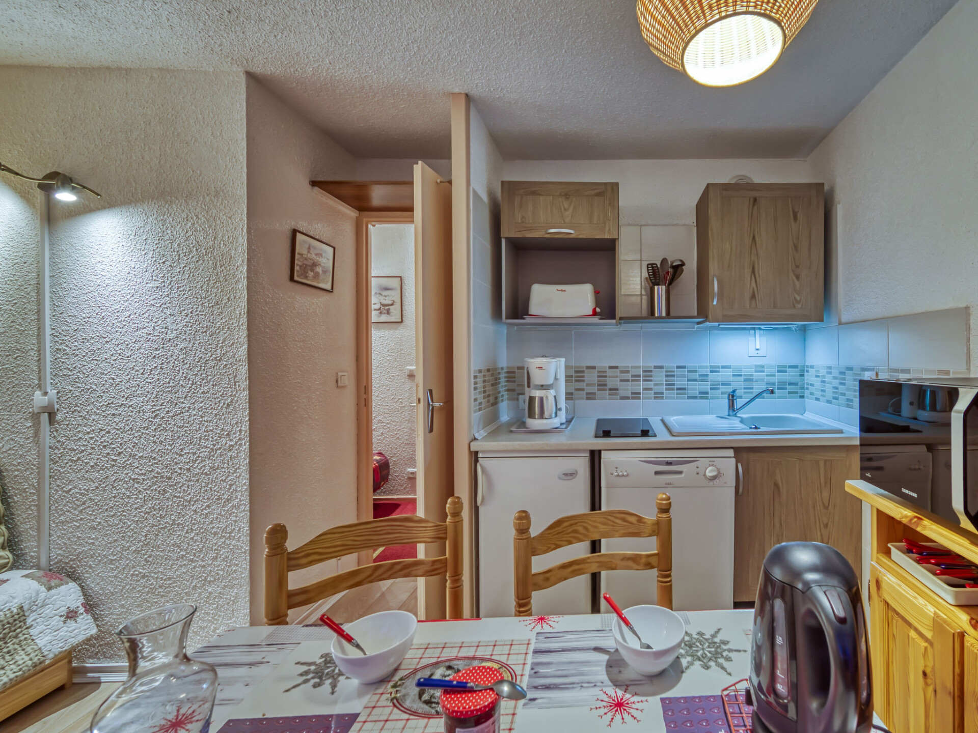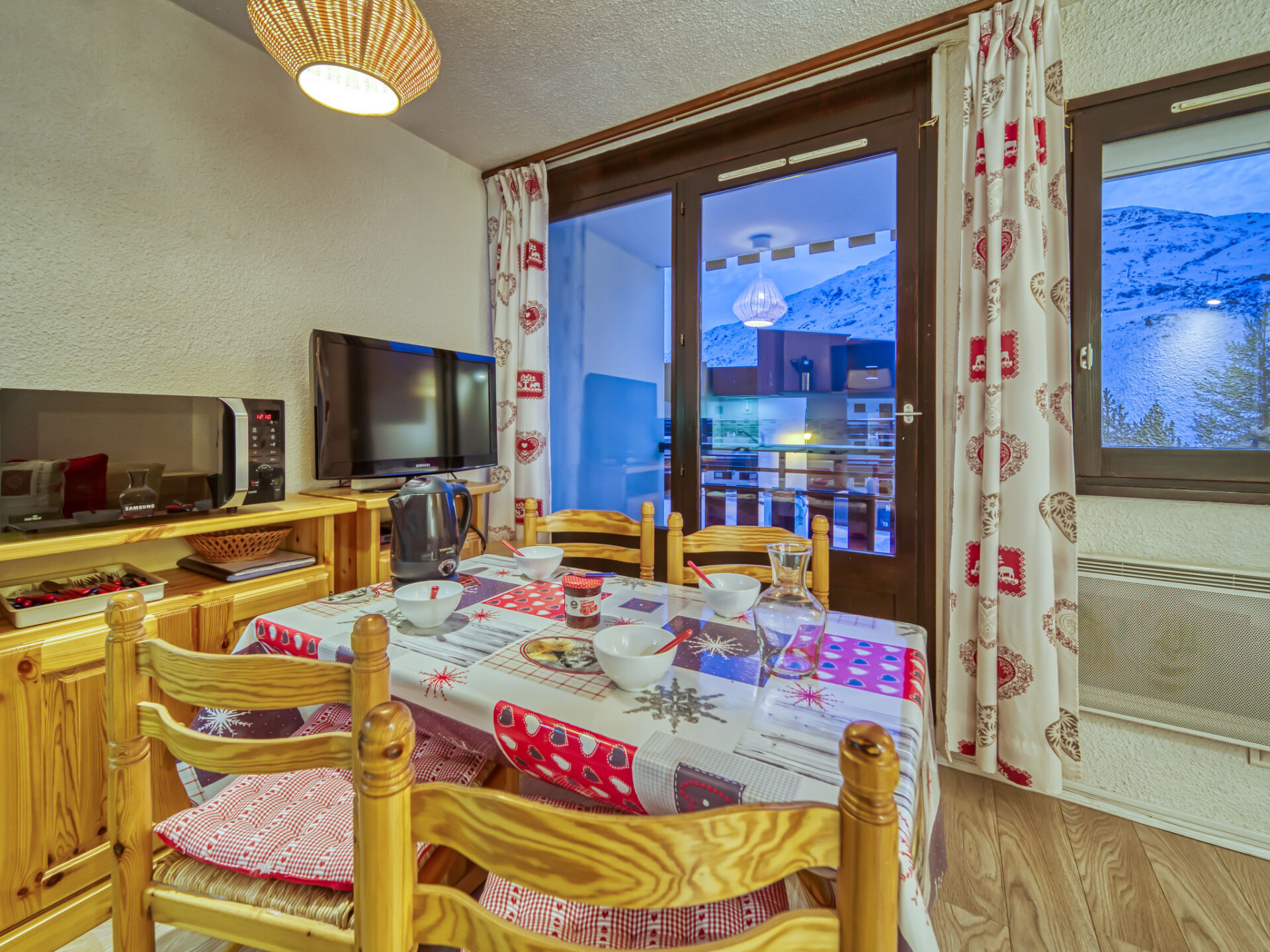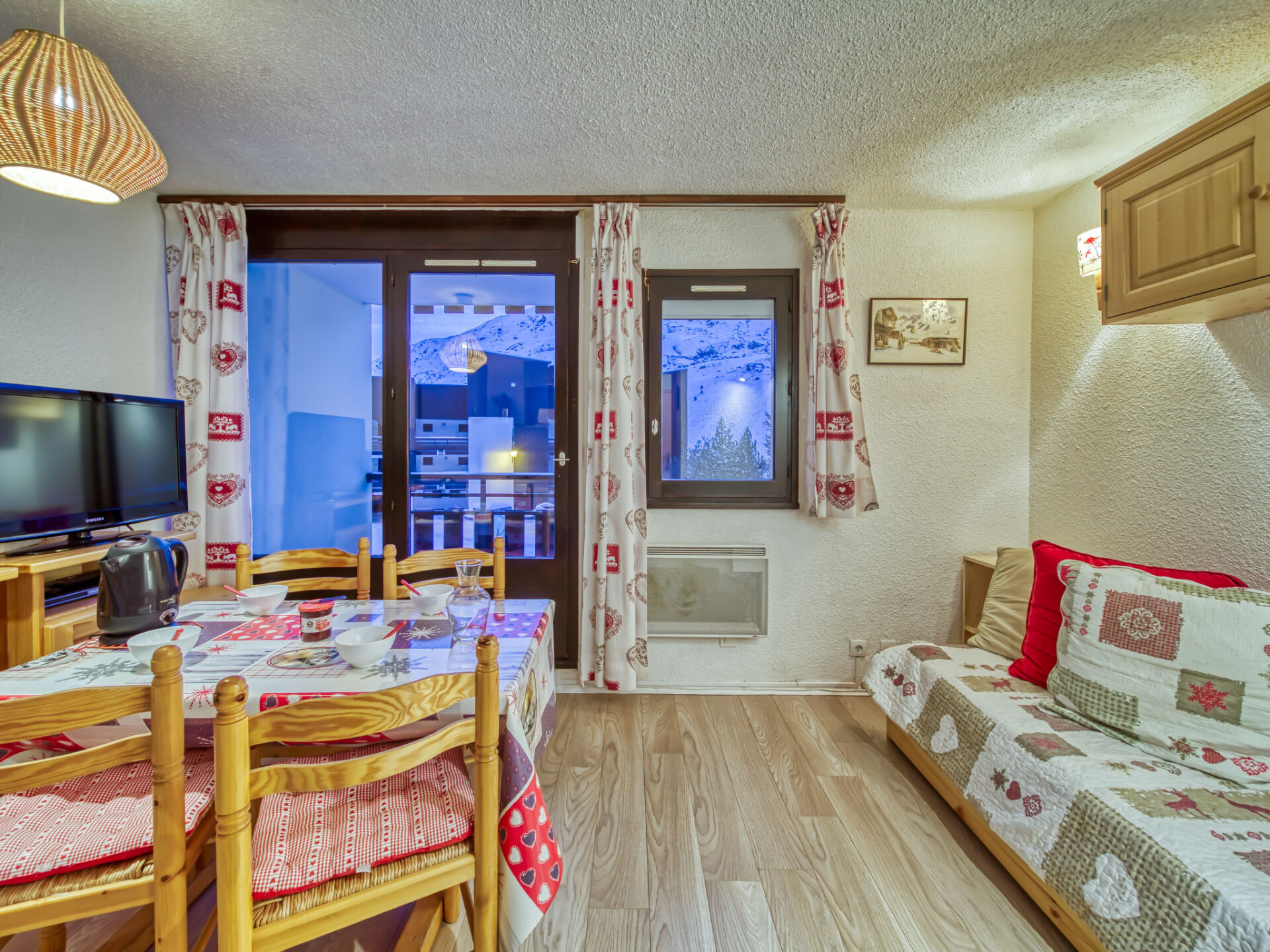 "Les Gentianes 110", appartement 1-kamer 24 m2 op de 1e verdieping, op het westen gelegen. Zeer mooi ingericht: groot hal met 1 2-pers divanbed (140 cm, lengte 190 cm). Woon-/eetkamer met 1 uitschuifbaar bed (2 pers. 2 x 80 cm, lengte 190 cm), TV (Flatscreen TV), elektrische rolluiken. Uitgang naar het balkon. Open keuken (afwasmachine, 2 keramische glas kookplaten, waterkoker, elektrische koffiemachine, combimagnetron). Badkamer, aparte WC. Elektrische verwarming. Uitzicht op de bergen. Ter beschikking: Internet (Internet (WiFi), extra). Rookmelders. 73257005967MX