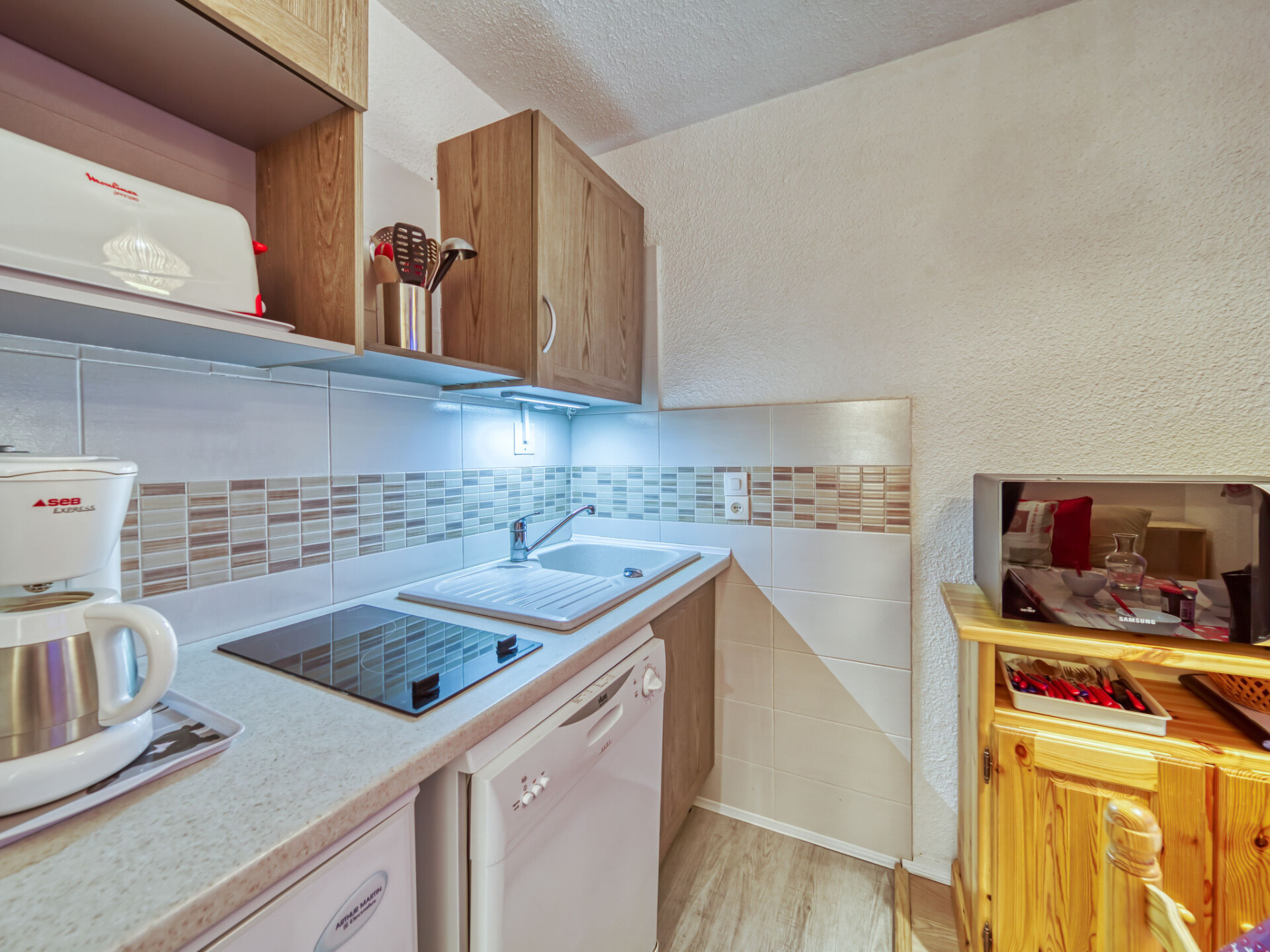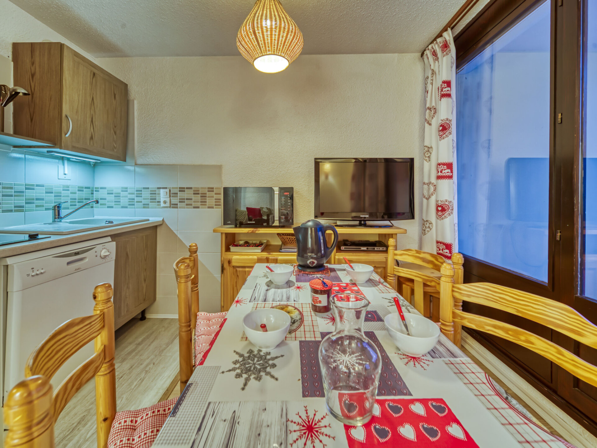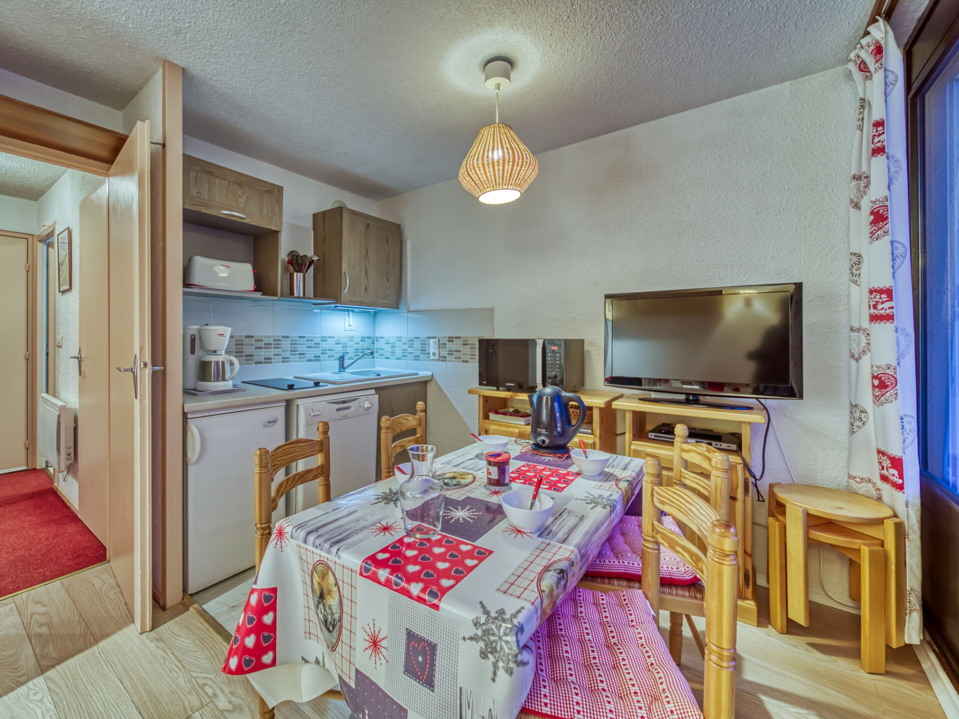 "Les Gentianes 110", appartement 1-kamer 24 m2 op de 1e verdieping, op het westen gelegen. Zeer mooi ingericht: groot hal met 1 2-pers divanbed (140 cm, lengte 190 cm). Woon-/eetkamer met 1 uitschuifbaar bed (2 pers. 2 x 80 cm, lengte 190 cm), TV (Flatscreen TV), elektrische rolluiken. Uitgang naar het balkon. Open keuken (afwasmachine, 2 keramische glas kookplaten, waterkoker, elektrische koffiemachine, combimagnetron). Badkamer, aparte WC. Elektrische verwarming. Uitzicht op de bergen. Ter beschikking: Internet (Internet (WiFi), extra). Rookmelders. 73257005967MX