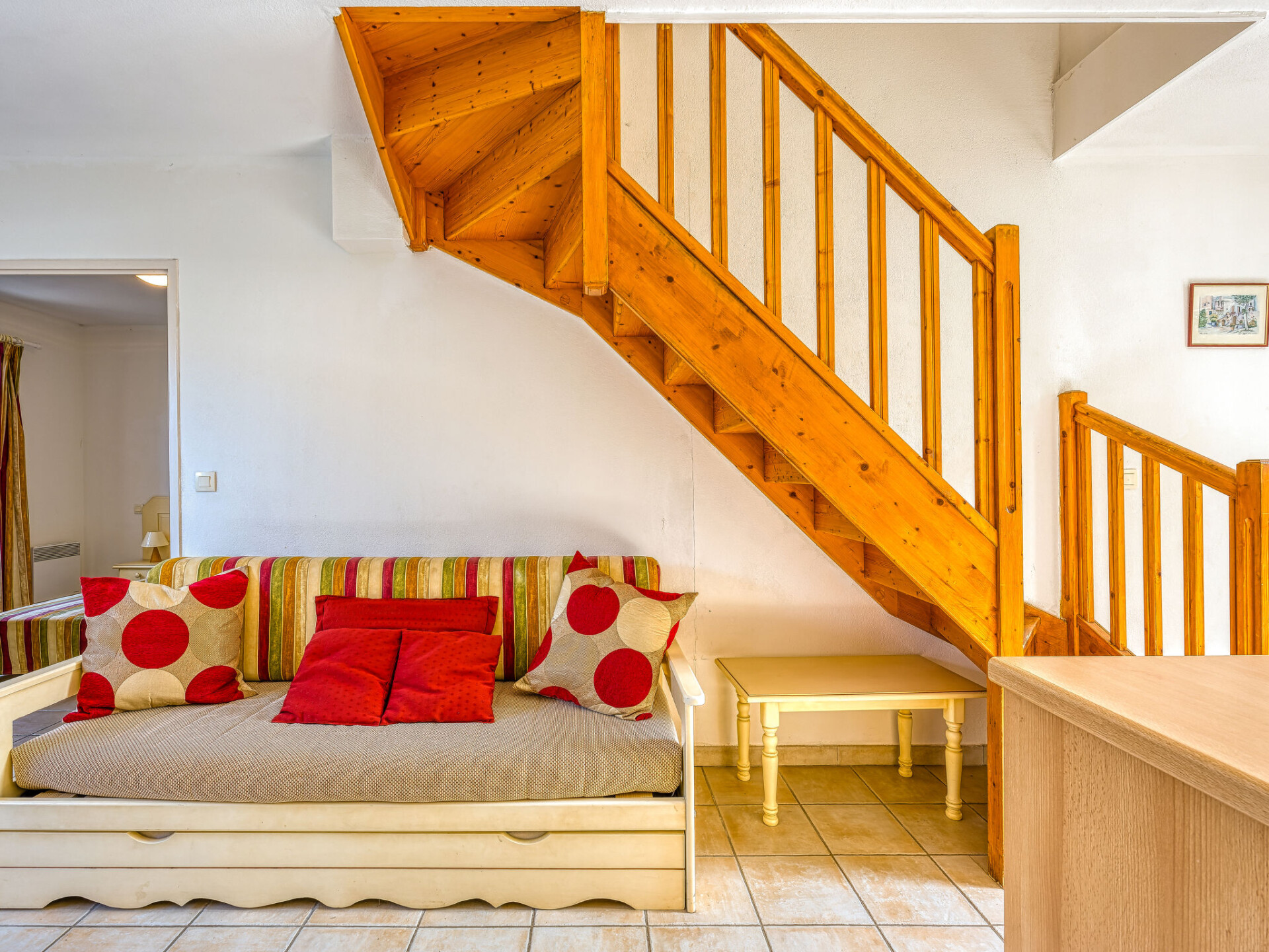 Huis in een rij 4-kamers 60 m2 op 2 verdiepingen. Mooi ingericht: woon-/eetkamer met TV (Flatscreen TV). Uitgang naar het terras. 1 kamer met 1 2-pers bed (140 cm), douche/WC. Uitgang naar het terras. Open keuken (oven, afwasmachine, 4 keramische glas kookplaten, magnetron, diepvriezer) met bar. Bovenverdieping: 1 kamer met 2 bedden (90 cm). 1 kamer met 1 2-pers bed (140 cm). Badkamer, aparte WC. Elektrische verwarming. Terras 18 m2, op het westen gelegen. Terrasmeubelen. Ter beschikking: wasmachine. Internet (WiFi, extra). Parkeerplaats (omheind). Maximaal 1 huisdier/hond toegestaan. Rookmelders. Aanbod door een particulier volgens art. 155, IV van CGI.
