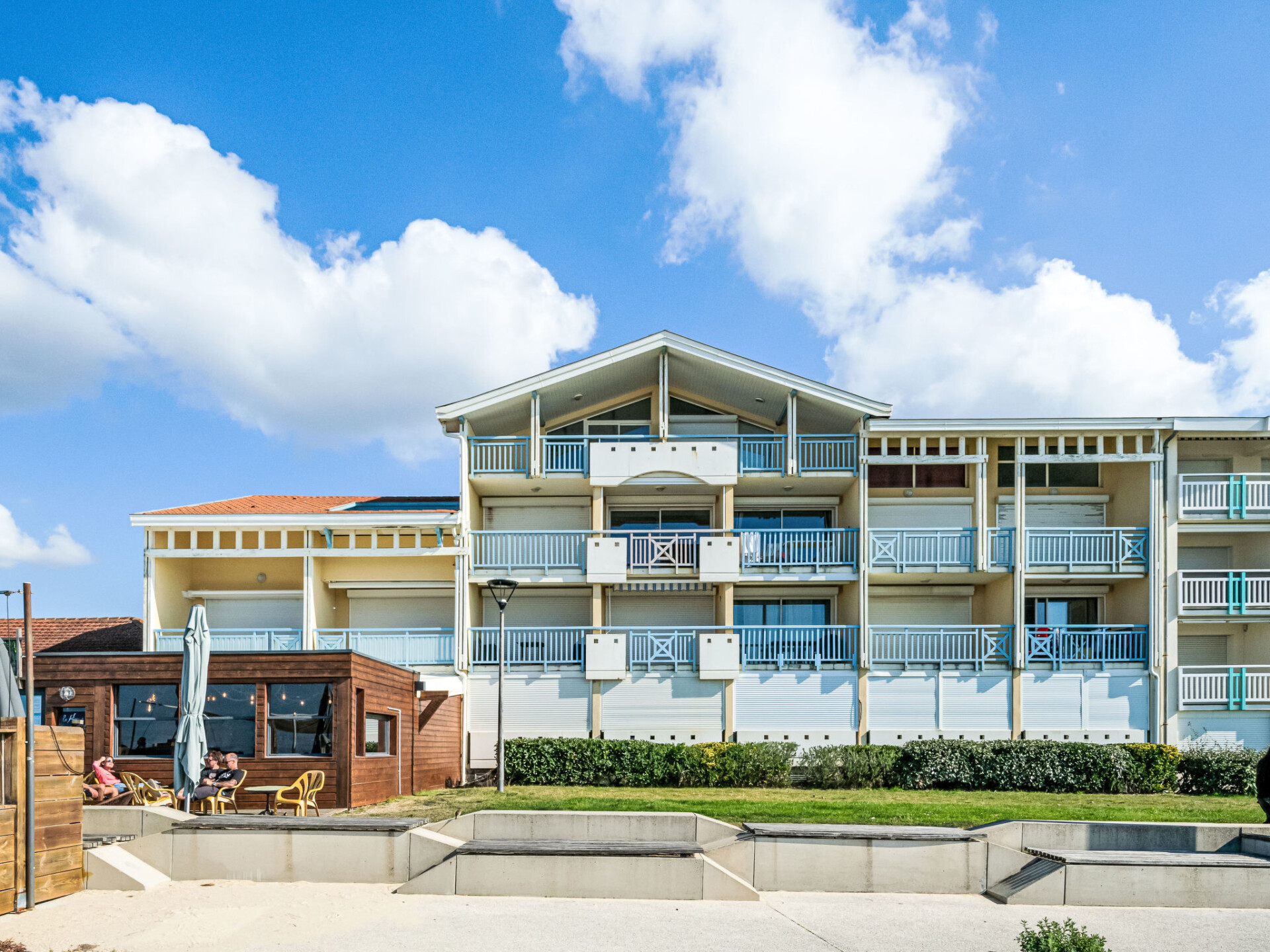 Residentie "Les Hauts de la Corniche", van 3 verdiepingen. Centrale, drukke ligging, in het centrum van de stad, 1 km van de bosrand, 50 m van zee, 10 km van het meer, 50 m van het strand. In het complex: lift. Winkel, levensmiddelenwinkel 50 m, supermarkt 500 m, restaurant 10 m, bakkerij 50 m, voetgangersgebied 10 m, bushalte 400 m, treinstation "Labouheyre" 30 km, zandstrand "la garluche" 50 m, park "Landes Aventure" 6 km, overdekt zwembad 6 km, meer (zwemmen) "Aureilhan" 10 km. Golfterrein (9 holes) 6 km, surfschool 50 m, manege 10 km. Attracties in de buurt: Aqualand Bassin Arcachon 70 km, Biscarrosse 40 km, Casino Mimizan Plage 1.5 km, Centre Nautique 10 km. Wandelgebied Marquèze 40 km. Brasserie op de begane grond van het gebouw. Direkte toegang tot de wandelpromenade die naar het strand leidt.