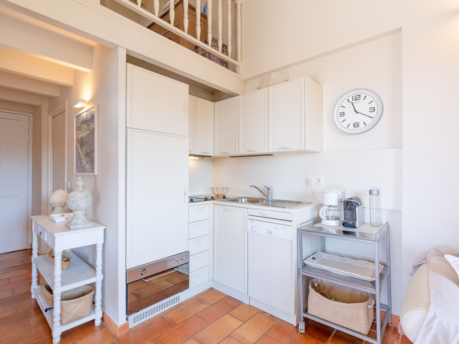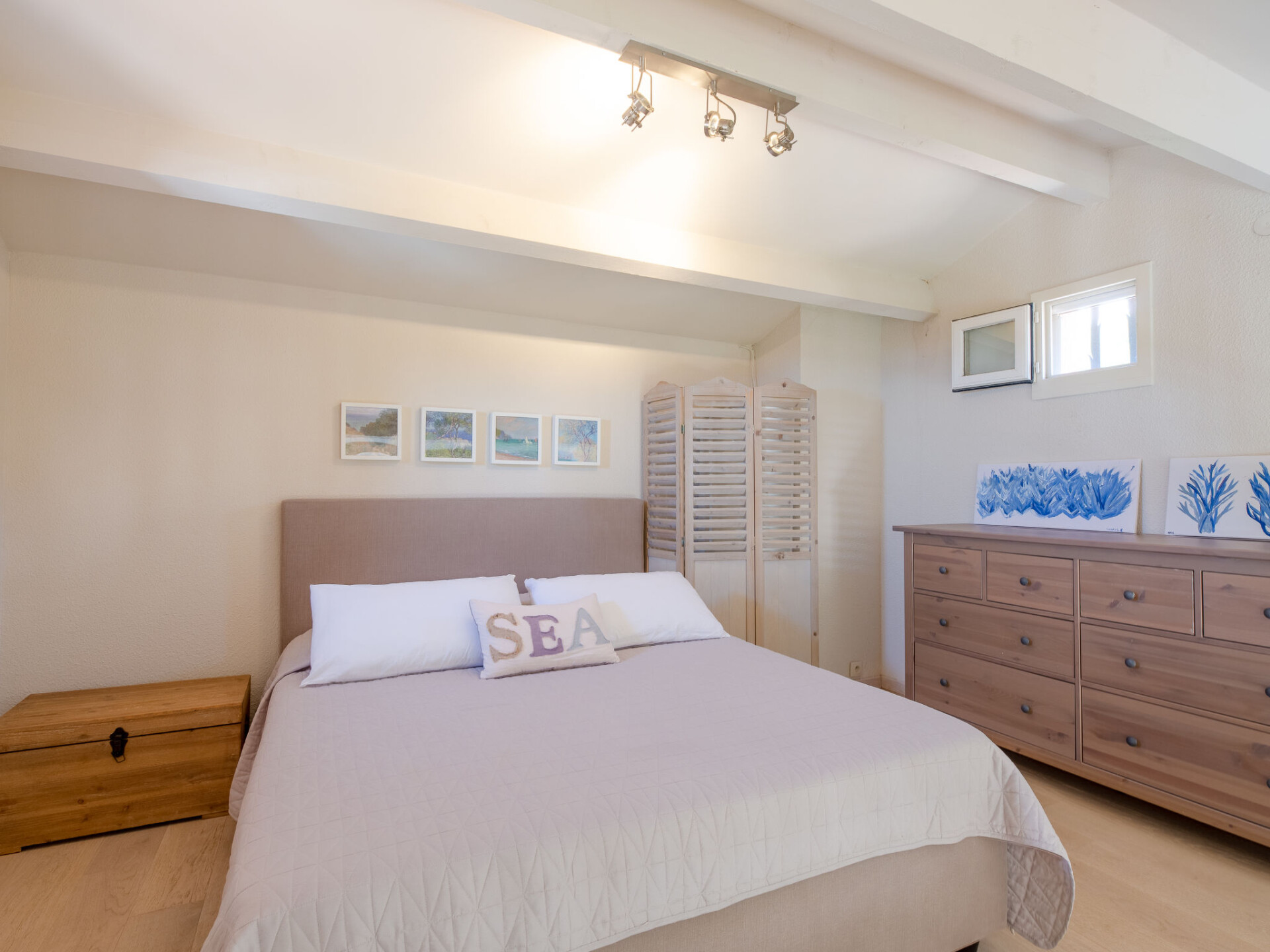 Maisonette 3-kamers 50 m2 op de 1e verdieping. Licht, mooi ingericht: woon-/eetkamer met TV (Flatscreen TV). Uitgang naar het terras. 1 kamer met 2 bedden (90 cm, lengte 200 cm). Open keuken (oven, afwasmachine, 4 keramische glas kookplaten, broodrooster, waterkoker, diepvriezer, elektrische koffiemachine). Douche/WC. Elektrische verwarming. Bovenverdieping: (wenteltrap), 1 open kamer met afgeschuinde daken met 1 2-pers bed (1 x 160 cm, lengte 200 cm). Terras 15 m2, op het zuidoosten gelegen. Terrasmeubelen, ligstoelen (2). Mooi uitzicht op zee. Ter beschikking: wasmachine, strijkijzer, haardroger. Internet (WiFi, gratis). Parkeerplaats. Niet rokers woning. Rookmelders. In plaats van een afgesloten slaapkamer bevinden sommige slaapgedeeltes zich in een open ruimte (galerij, nis, etc.). 83107001057NS