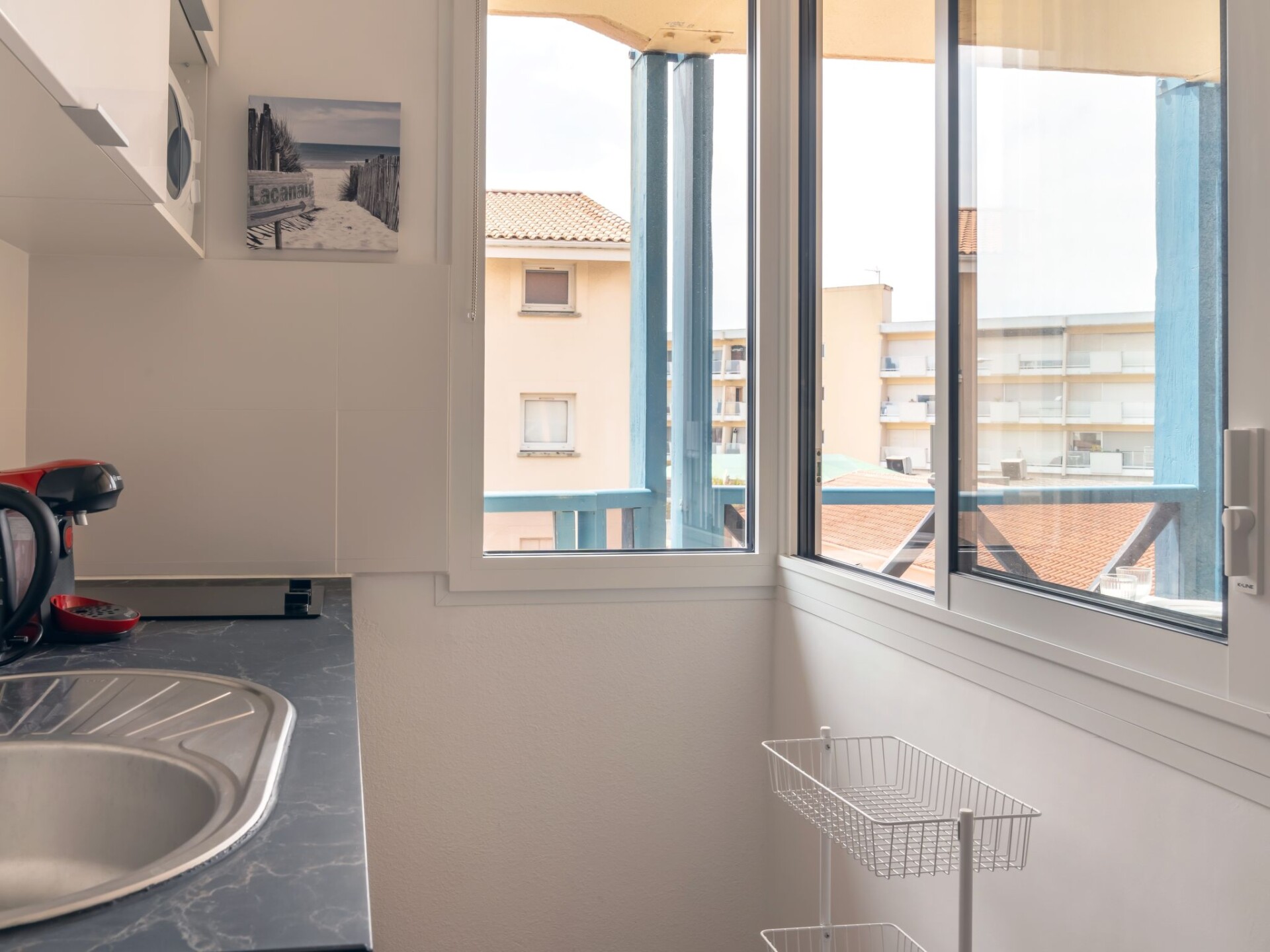 Lacanau Océan: Residentie "Les Hélianthes", van 3 verdiepingen. In het centrum van Lacanau-Océan, centrale, drukke ligging, 100 m van zee, 6 km van het meer, 100 m van het strand. In het complex: lift. Winkel, supermarkt 100 m, restaurant 10 m, bar 20 m, fietsverhuur 50 m, bushalte "Salle l'Escoure Océan" 450 m. Golfterrein (18 holes) 4 km, surfschool 100 m, tennis 3 km, manege 4 km, fietspad 200 m. Attracties in de buurt: Bordeaux 60 km, Saint Emilion 85 km, Dune du Pyla 80 km. Wandelgebied Vélodyssée 500 m. Animatie in het hoogseizoen.