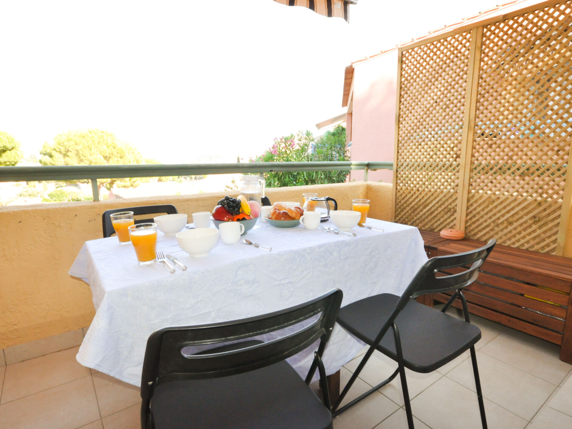 Residentie "Les Jardins d'Amaryllis". Buiten de plaats Cavalaire Sur Mer, 1.2 km van zee, 1.2 km van het strand. Voor medegebruik: openluchtzwembad (12 x 25 m, 150 - 220 cm diepte, seizoensgebonden beschikbaarheid: 01.Mei. - 30.Sep.). Kinderzwembad, jeu de boules. Winkel 800 m, supermarkt 1 km, restaurant 900 m, bakkerij 700 m, bushalte "Halte routière" 1.1 km, zandstrand 1.2 km, park "Aqualand" 24 km, duikschool 1.1 km. Jachthaven 1.1 km. Attracties in de buurt: Azur Park, Paint-ball 12 km, Bowling à Port-Grimaud 13 km, St-Tropez 17 km, Ste-Maxime 24 km. Wandelgebied Sentier du Fenouillet 2.2 km, Sentier du littoral 7 km, Toulon 60 km. Auto noodzakelijk. De sleuteloverdracht vindt plaats bij het agentschap Interhome in Cavalaire. Elektrische verwarming.