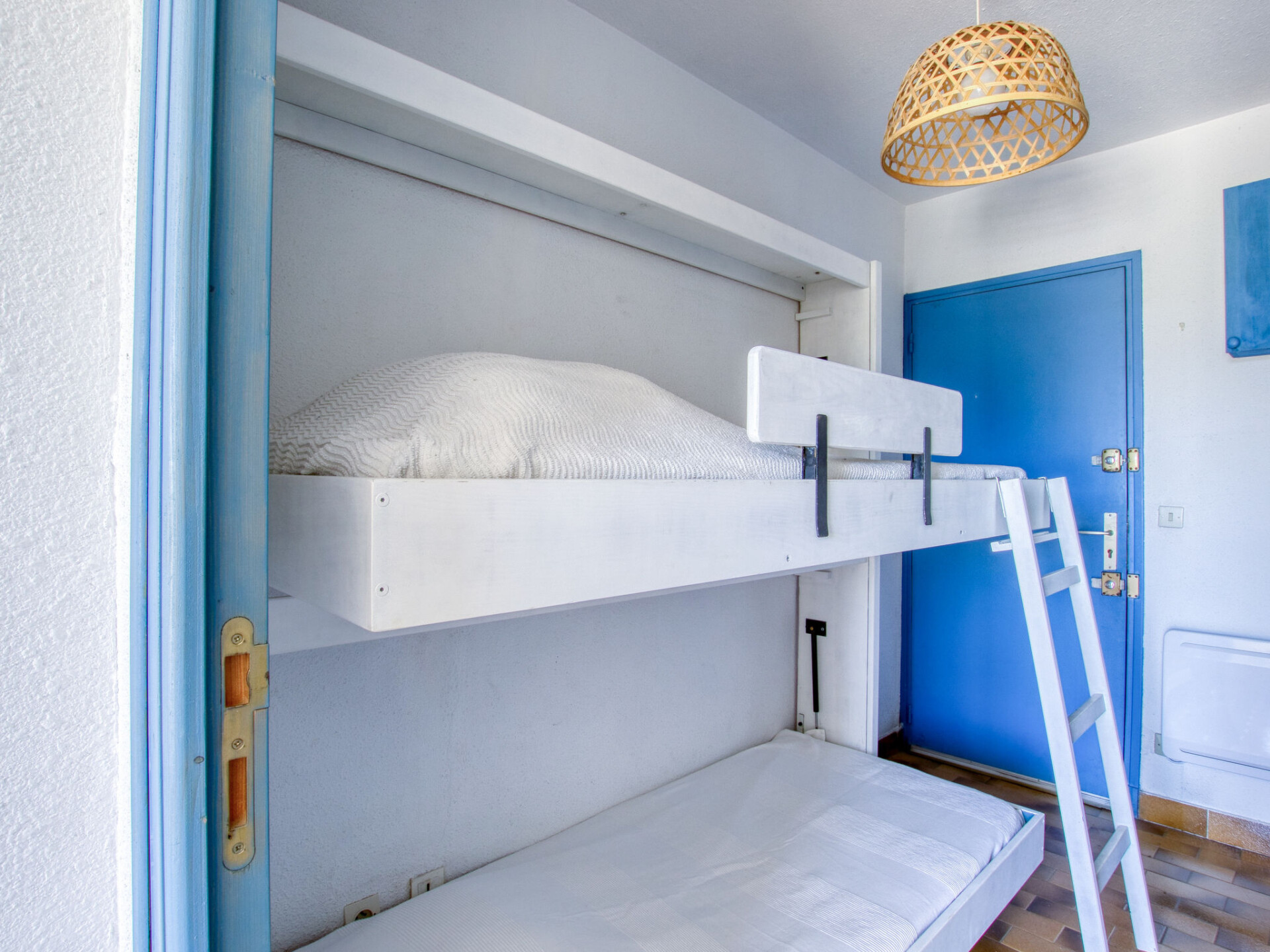 Studio 1-kamer 24 m2 op de 1e verdieping. Licht, comfortabel ingericht: hal met 1 x 2 stapelbedden (80 cm, lengte 190 cm). Woon-/eetkamer met 1 2-pers divanbed (160 cm, lengte 200 cm), TV (Flatscreen TV). Uitgang naar het terras. Kookhoek (2-pits kookplaat, mini-oven, broodrooster, waterkoker, elektrische koffiemachine). Douche/WC. Elektrische verwarming. Terras 6 m2, op het oosten gelegen. Terrasmeubelen. Ter beschikking: Internet (Internet (WiFi), extra). Parkeerplaats nr. 76. TV alleen FR. Rookmelders. Aanbod door een particulier volgens art. 155, IV van CGI. 83112000324ZK