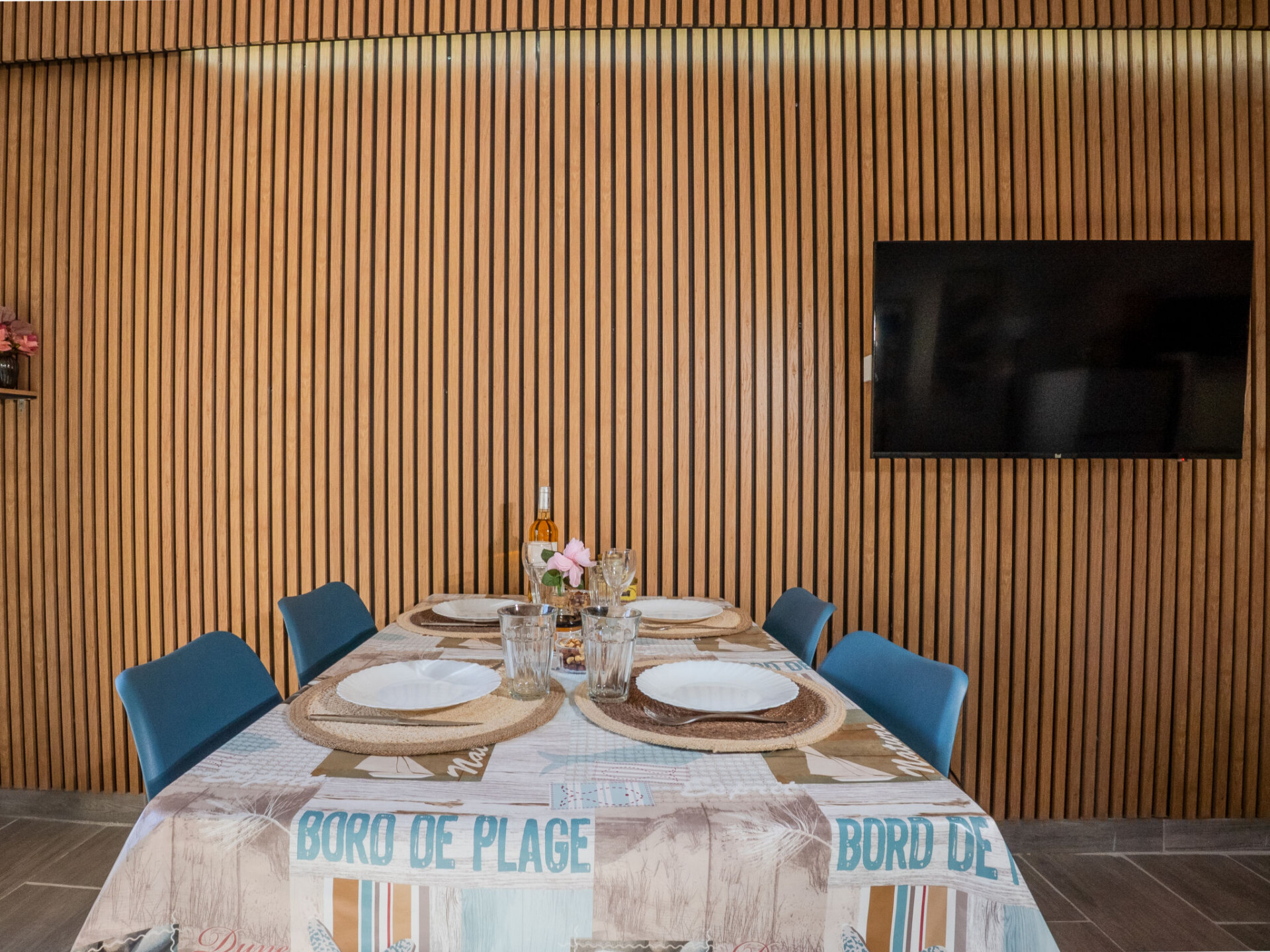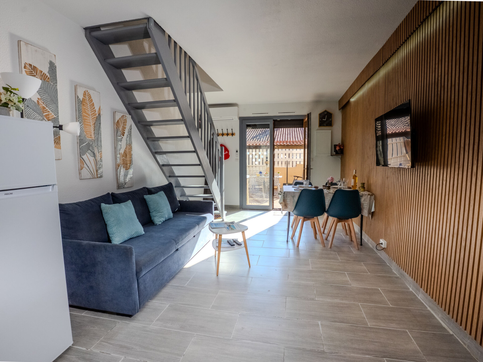Huis in een rij 3-kamers 44 m2. Het objekt is geschikt voor 2 volwassenen + 2 kinderen. Gerenoveerd in 2025: woon-/eetkamer met TV (Flatscreen TV). Uitgang naar het terras. Open keuken (4 keramische glas kookplaten, broodrooster, waterkoker, magnetron, diepvriezer, elektrische koffiemachine, pads voor de koffiemachine (Tassimo) extra). Aparte WC. Air-conditioning. Bovenverdieping: 1 kamer met 1 2-pers bed (140 cm, lengte 190 cm). 1 kamer met 2 bedden (90 cm, lengte 190 cm). Douche. Elektrische verwarming. Terras 16 m2, op het oosten gelegen. Terrasmeubelen. Ter beschikking: wasmachine. Internet (Internet (WiFi), gratis). Parkeerplaats nr. 40. Rookvrij huis. Rookmelders. Aanbod door een particulier volgens art. 155, IV van CGI. 301330009673Q