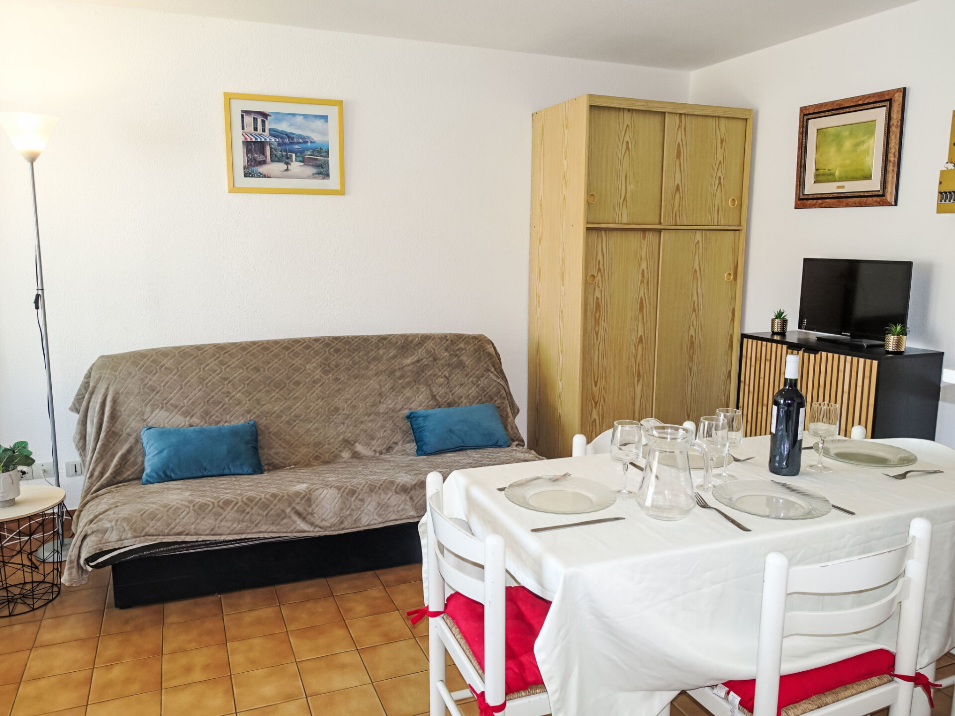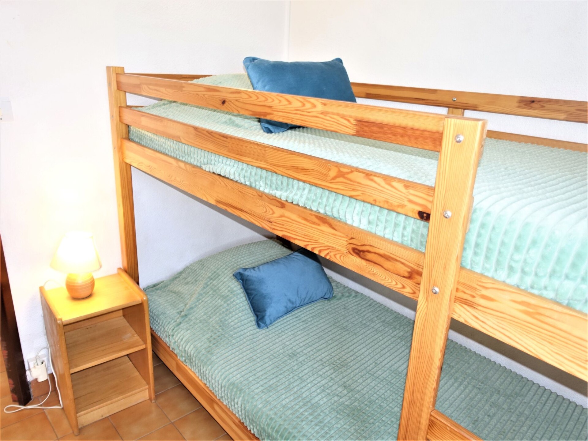 Appartement 2-kamers 25 m2 op de 2e verdieping, op het westen gelegen. Gedeeltelijk in 2020: woon-/eetkamer met 1 2-pers divanbed en TV (Flatscreen TV). Uitgang naar de loggia. 1 kamer met 1 x 2 stapelbedden (90 cm, lengte 190 cm). Kookhoek (mini-oven, 2 keramische glas kookplaten, magnetron, elektrische koffiemachine, pads voor de koffiemachine (Dolce gusto) extra). Douche/WC. Geen verwarmingsmogelijkheid. Terrasmeubelen. Uitzicht op het zwembad. Ter beschikking: Internet (Internet (WiFi), extra). Parkeerplaats. Rookmelders. De loggia, 5 m2, afgesloten door schuiframen, gelegen op het zuid-westen. Aanbod door een particulier volgens art. 155, IV van CGI.