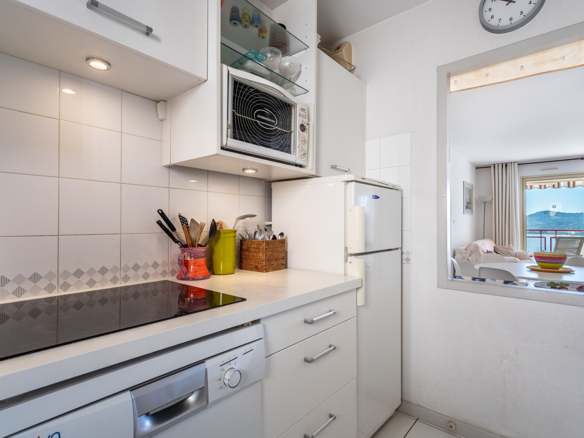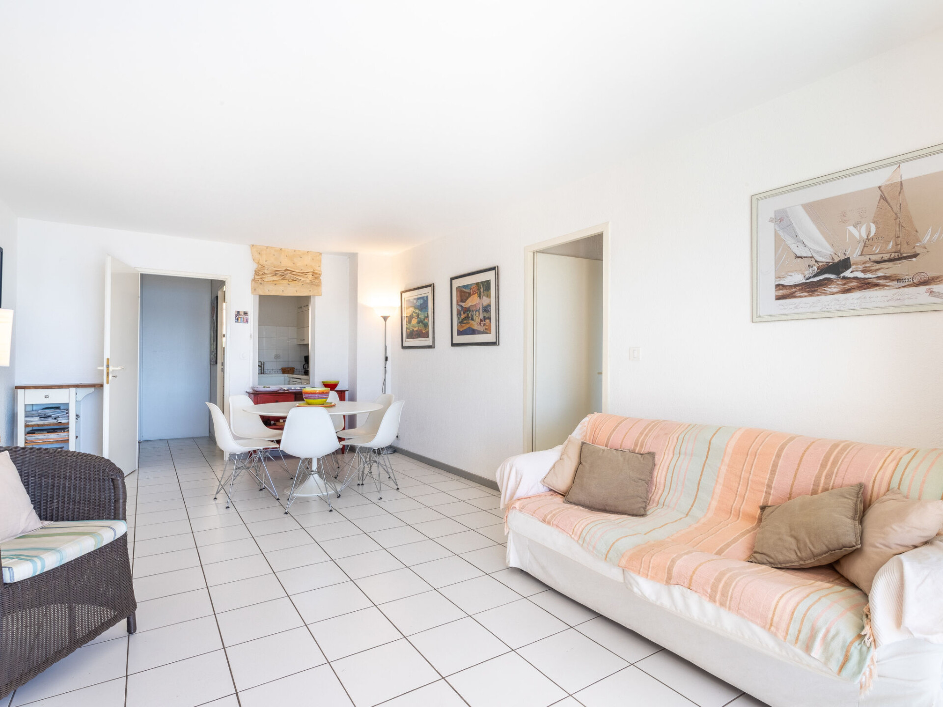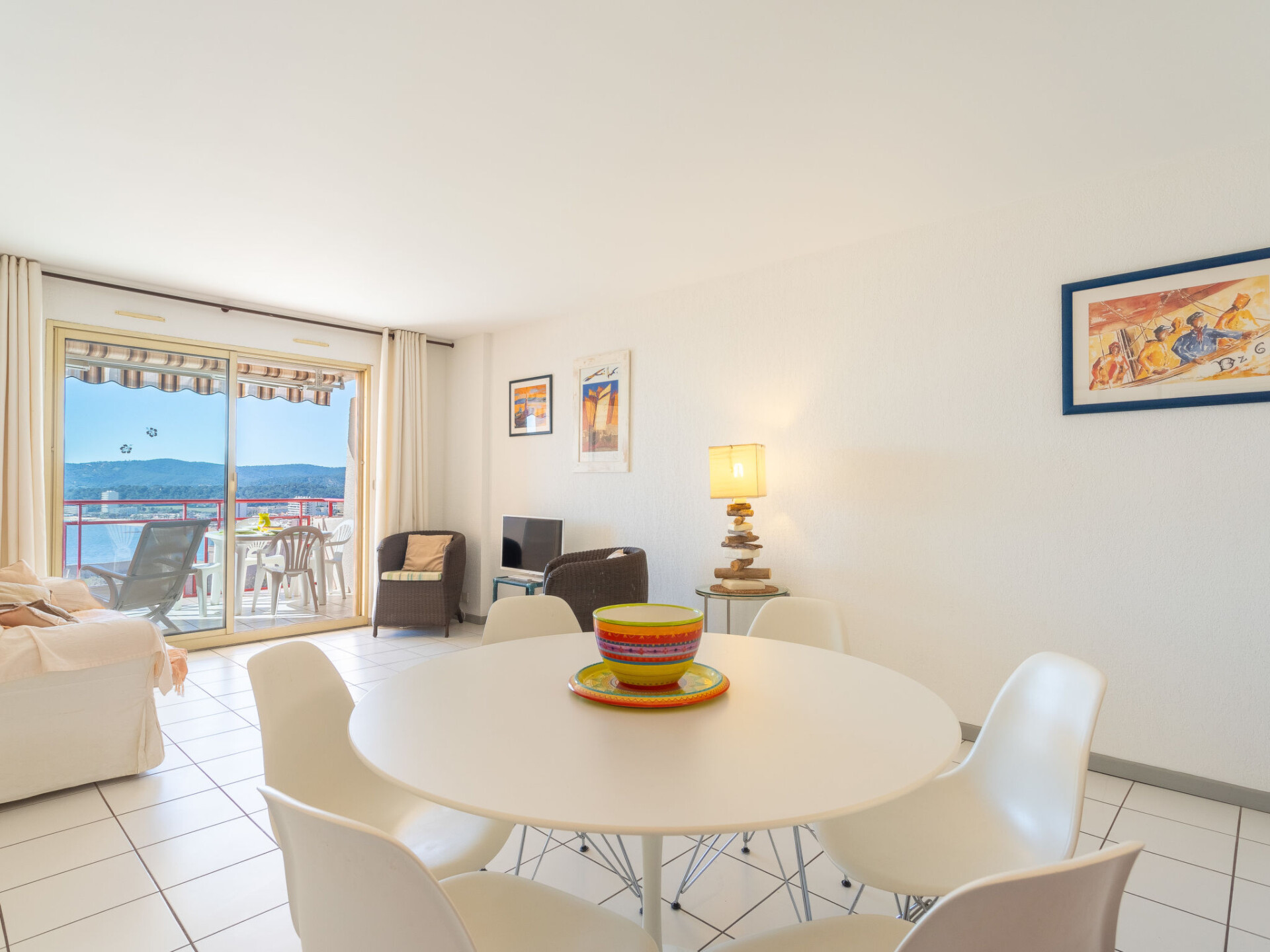 Appartement 3-kamers 60 m2 op de 2e verdieping. Doelmatig en mooi ingericht: woon-/eetkamer met eettafel en TV (Flatscreen TV). Uitgang naar het terras. 1 kamer met 1 2-pers bed (160 cm, lengte 200 cm). 1 kamer met 2 bedden (90 cm, lengte 190 cm). Keuken (oven, afwasmachine, 3 inductiekookplaten, broodrooster, waterkoker, magnetron, diepvriezer, elektrische koffiemachine). Badkamer, aparte WC. Elektrische verwarming. Balkon 10 m2, op het zuiden gelegen. Balkonmeubilair. Zeer mooi uitzicht op zee en de baai. Ter beschikking: wasmachine, strijkijzer, haardroger. Internet (WiFi, extra). Parkeerplaats nr. 11. Maximaal 1 huisdier/hond toegestaan. TV alleen FR. Rookmelders. Aanbod door een particulier volgens art. 155, IV van CGI. 83070 000043 AP