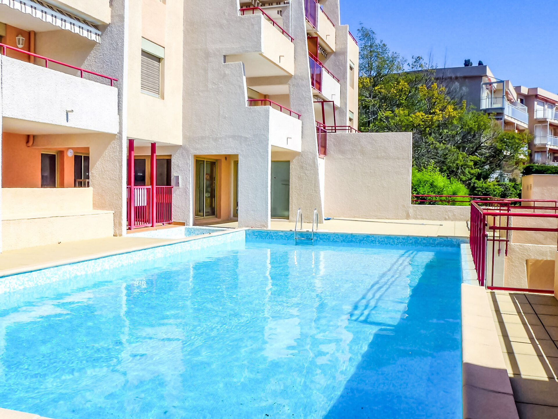 Residentie "Les Mandariniers", van 3 verdiepingen. In de plaats, 900 m van het centrum van Le Lavandou, zonnige ligging, 800 m van zee, 800 m van het strand. Voor medegebruik: 2 zwembaden hoekig omheind (12 x 5 m, 130 - 200 cm diepte, seizoensgebonden beschikbaarheid: 01.Jun. - 01.Okt.). Openbare parkeerplaatsen in de straat. Winkel 1.5 km, levensmiddelenwinkel, restaurant, bar 700 m, bakkerij 400 m, café 700 m, centrum te voet bereikbaar in 10 minuten, bushalte "Lavandou Gare routière" 500 m, zandstrand "La Lavandou" 800 m. Jachthaven 700 m, midgetgolf 2.5 km. De sleuteloverdracht vindt plaats bij het agentschap Interhome in Le Lavandou.