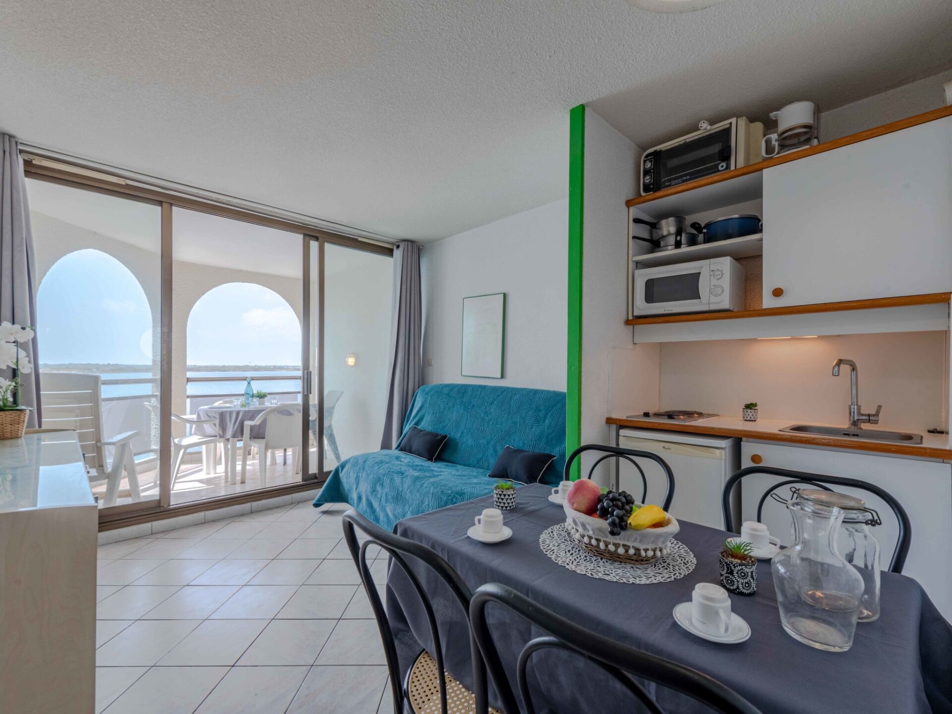 La Coudalère 5 km van Barcares centre: Residentie "Les Marquises", van 3 verdiepingen. 2.5 km van zee, 30 m van het meer, 2.5 km van het strand. Voor medegebruik: mooie tuin ter ontspanning, 2 zwembaden verwarmd (10 x 15 m, seizoensgebonden beschikbaarheid: 15.Apr. - 15.Okt.). Kinderzwembad, tennisbaan (extra), basketbal, jeu de boules (extra), kinderspeelplaats (glijbaan), openbare parkeerplaatsen 30 m. Winkel, levensmiddelenwinkel 500 m, supermarkt 6 km, restaurant, bar, bakkerij, café, fietsverhuur 500 m, bushalte "La Coudalère" 1 km, treinstation "Perpignan" 22 km, zandstrand 2.5 km. Zeilschool 500 m, midgetgolf 1.3 km, manege 12 km. Attracties in de buurt: Réserve Africaine de Sigean 41 km, Aqualand Port Leucate 7 km, Parcours Aventure 7 m, cinéma 5 m, Téleski nautique site des dosses 5 m, Spot de windsurf 50 m. Bekende meren kunnen gemakkelijk worden bereikt: Lac de villeneuve de la Raho 34 km. Wandelgebied Sentier du guetteur 8 km, la forteresse de salses 15 km, Sentier du littoral Collioure 40 km. Auto noodzakelijk, geen lift. Animatie in het hoogseizoen. De sleuteloverdracht vindt plaats bij het agentschap Interhome Barcares 3 km. De woning bevindt zich in een voor verkeer beperkte zone. De afgebeelde foto is slechts een voorbeeld. Vergelijkbare accommodaties kunnen worden geboekt.