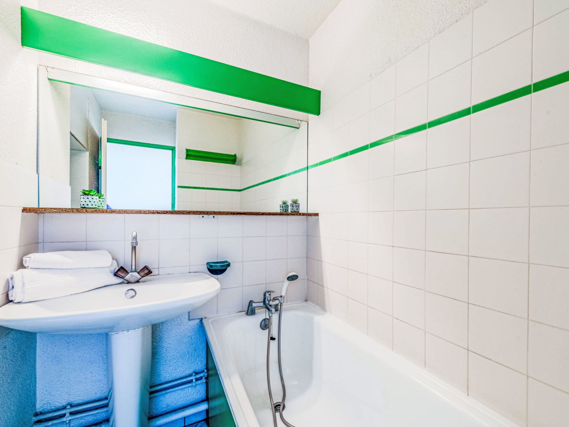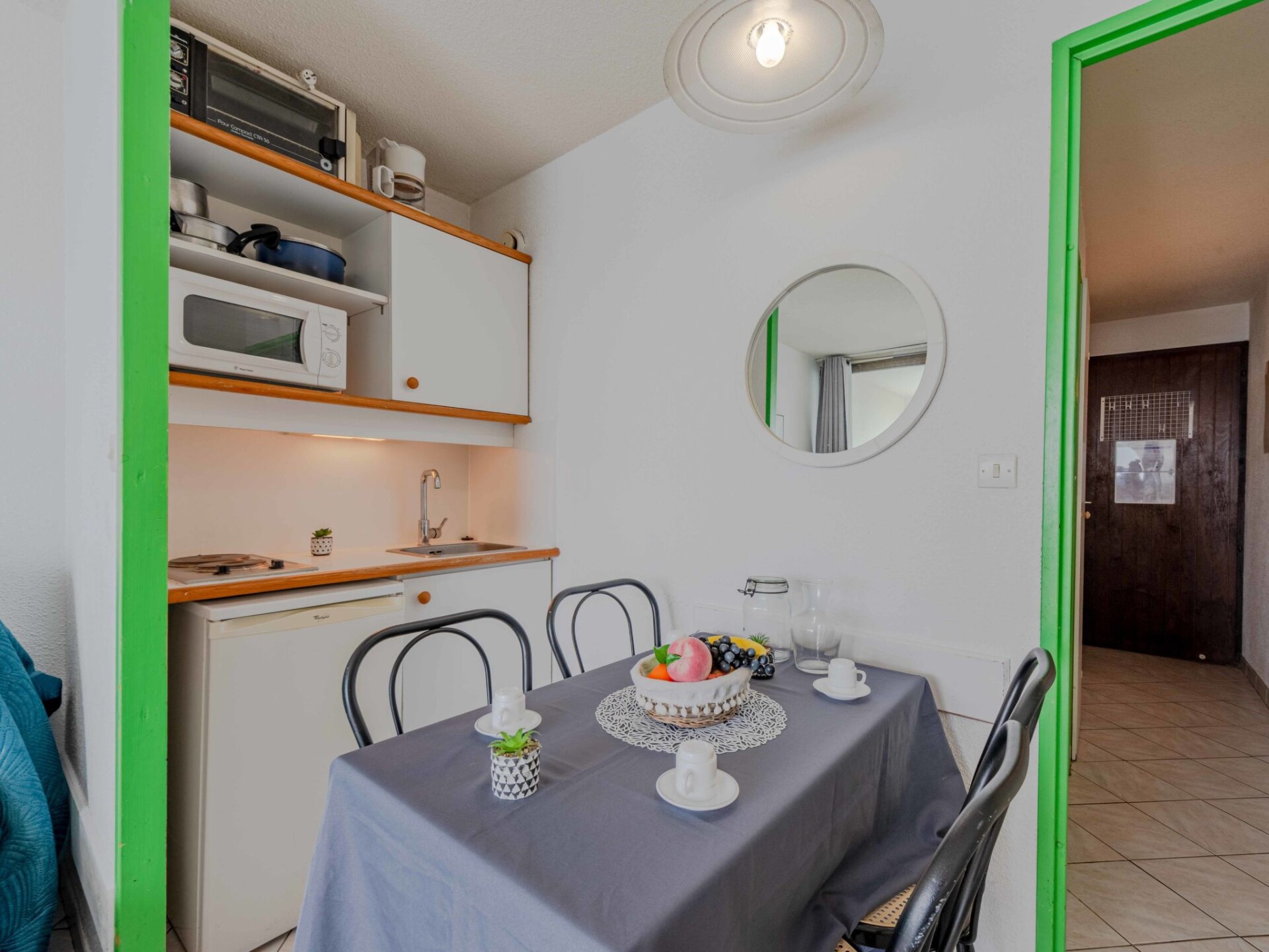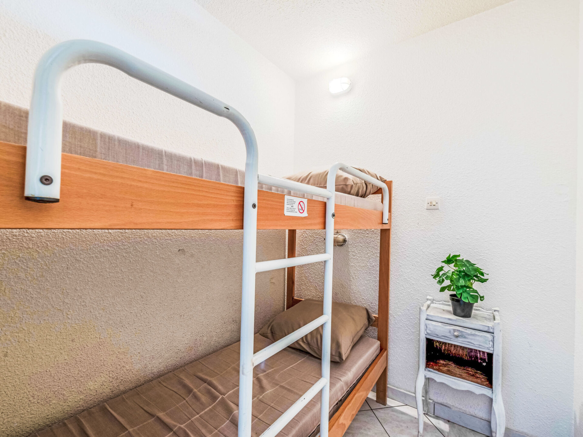 Appartement 1-kamer 22 m2 op de 2e verdieping, op het zuidoosten gelegen. Woon-/eetkamer met 1 2-pers divanbed (1 x 140 cm, lengte 190 cm), TV (Flatscreen TV). Uitgang naar het terras. Cabine met 1 x 2 stapelbedden (80 cm, lengte 190 cm). Kookhoek (2-pits kookplaat, mini-oven, magnetron, elektrische koffiemachine). Bad/WC. Terras 7 m2. Mooi uitzicht op het meer en de bergen. Ter beschikking: Internet (WiFi, extra). Maximaal 1 huisdier/hond toegestaan. Rookmelders. Aanbod door een particulier volgens art. 155, IV van CGI.