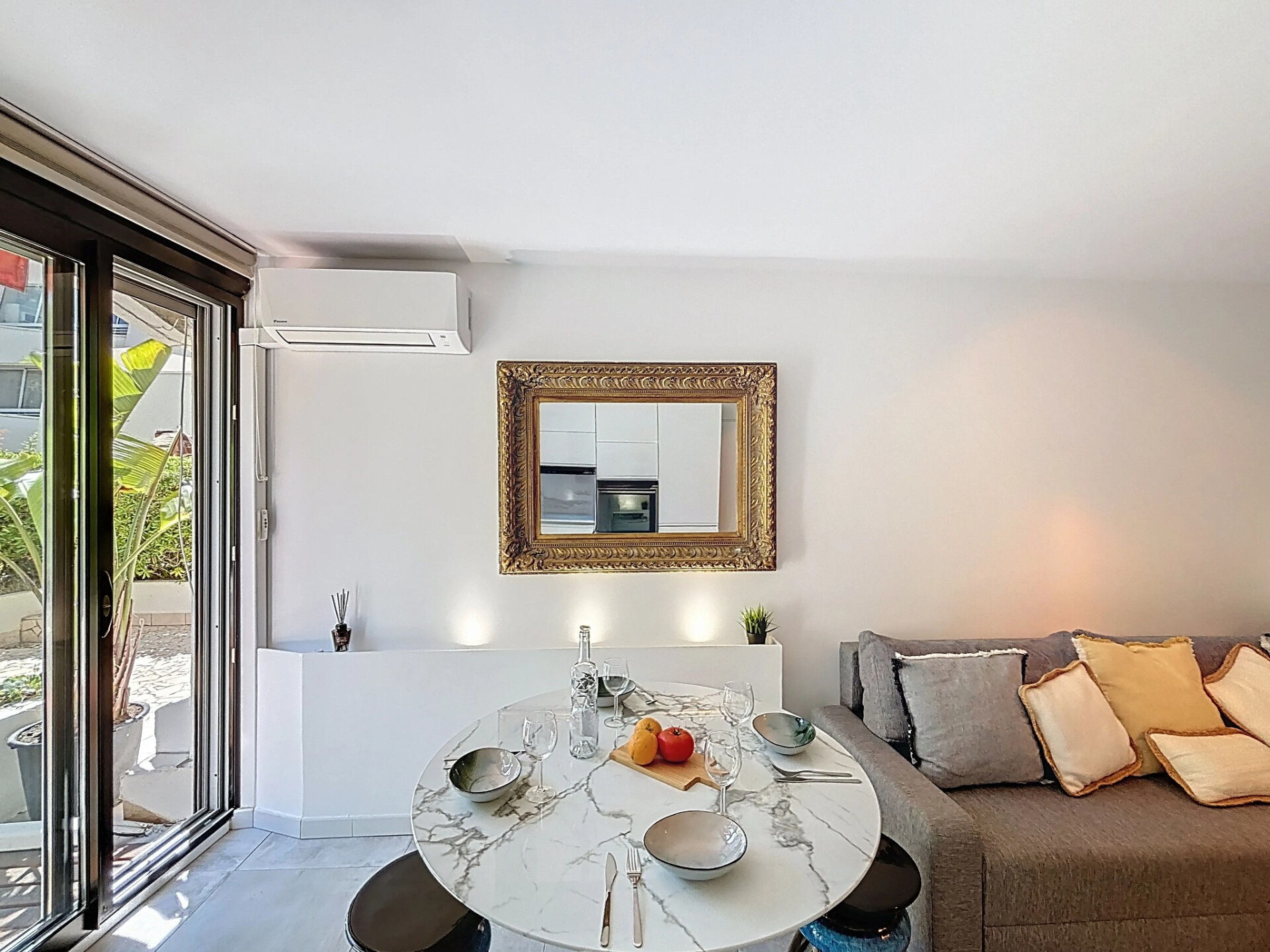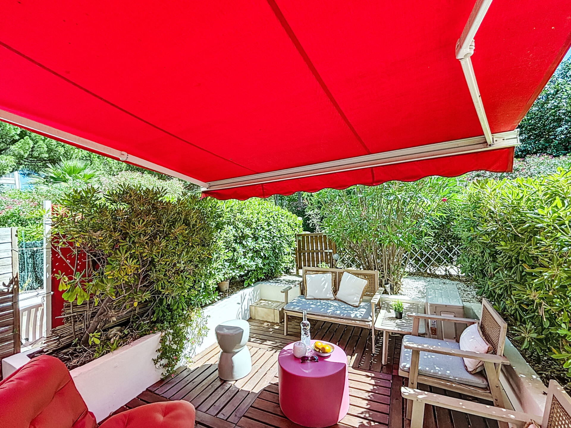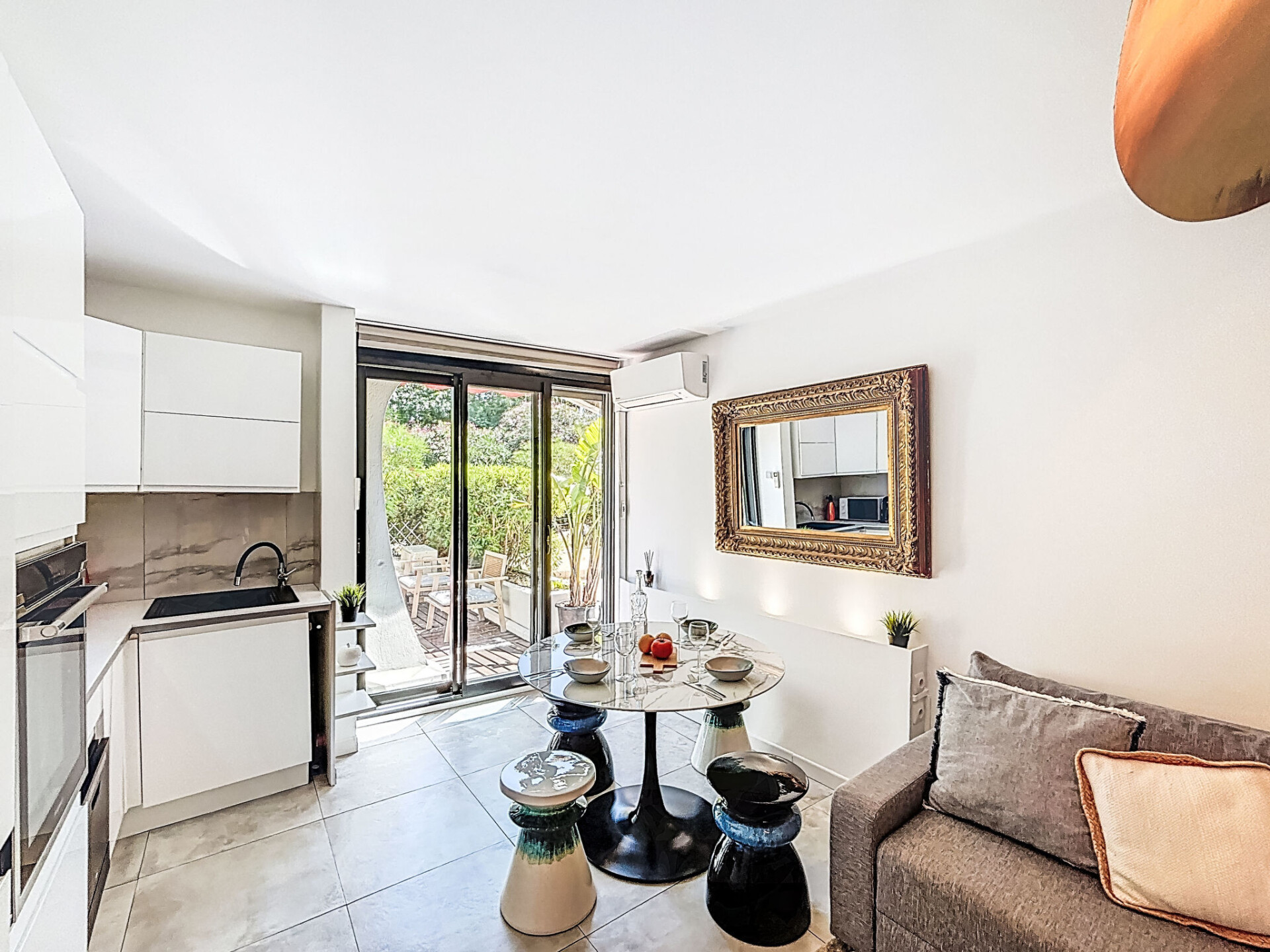 Appartement 2-kamers 27 m2, op de begane grond, op het zuiden gelegen. Mooi ingericht: woon-/eetkamer met 1 2-pers divanbed (140 cm, lengte 190 cm), TV (Flatscreen TV), air-conditioning. Uitgang naar het terras. 1 kleine kamer met 1 2-pers bed (140 cm, lengte 200 cm). Kookhoek (oven, afwasmachine, 3 inductiekookplaten, broodrooster, waterkoker, magnetron, diepvriezer, elektrische koffiemachine, pads voor de koffiemachine (NESPRESSO) extra). Douche/WC. Elektrische verwarming. Groot terras 25 m2, op het zuiden gelegen. Terrasmeubelen, ligstoelen (1). Uitzicht op de tuin. Ter beschikking: wasmachine, droger. Internet (WiFi, extra). Niet rokers woning, geen parkeerplaats. Rookmelders. Aanbod door een particulier volgens art. 155, IV van CGI.