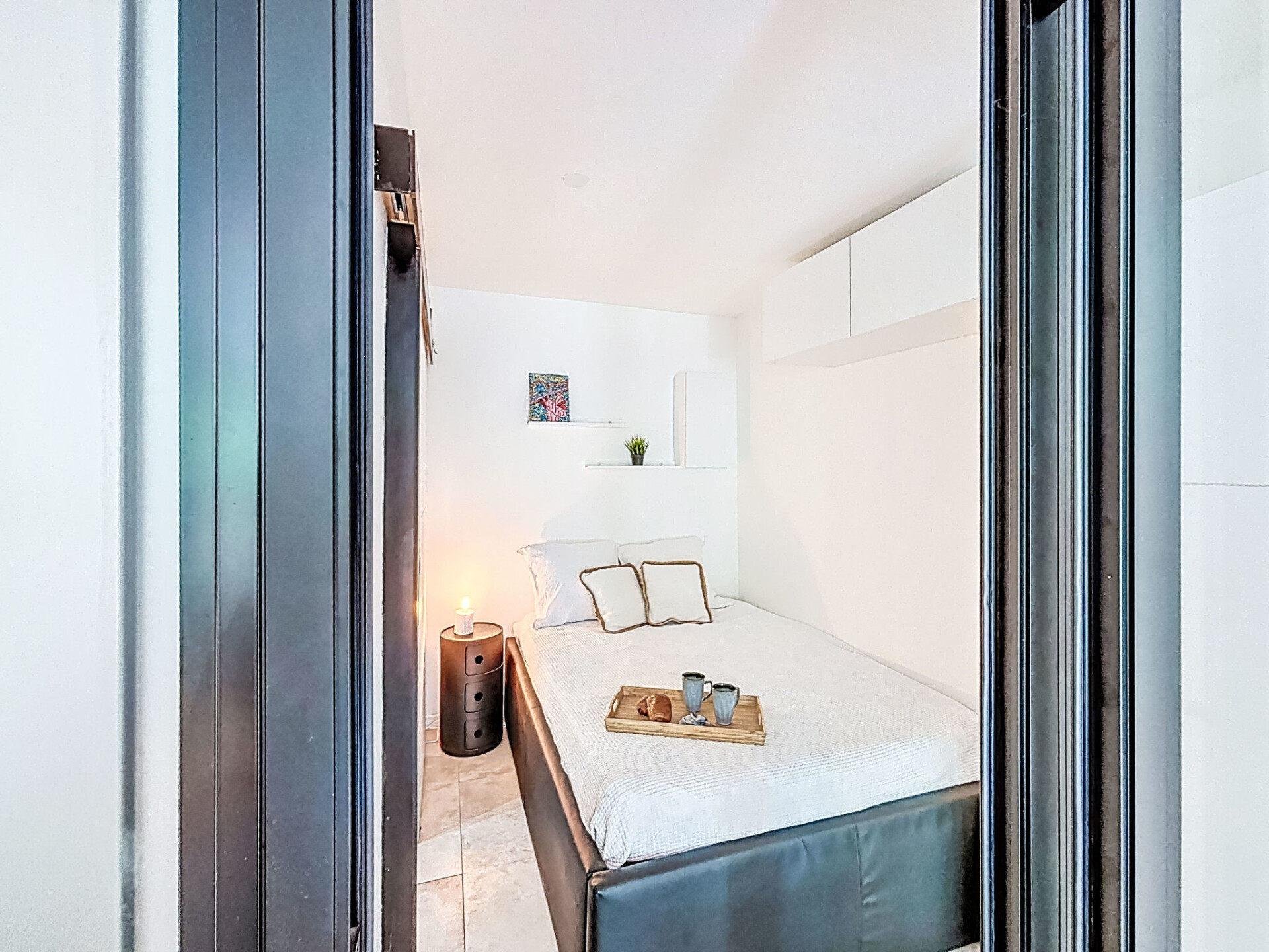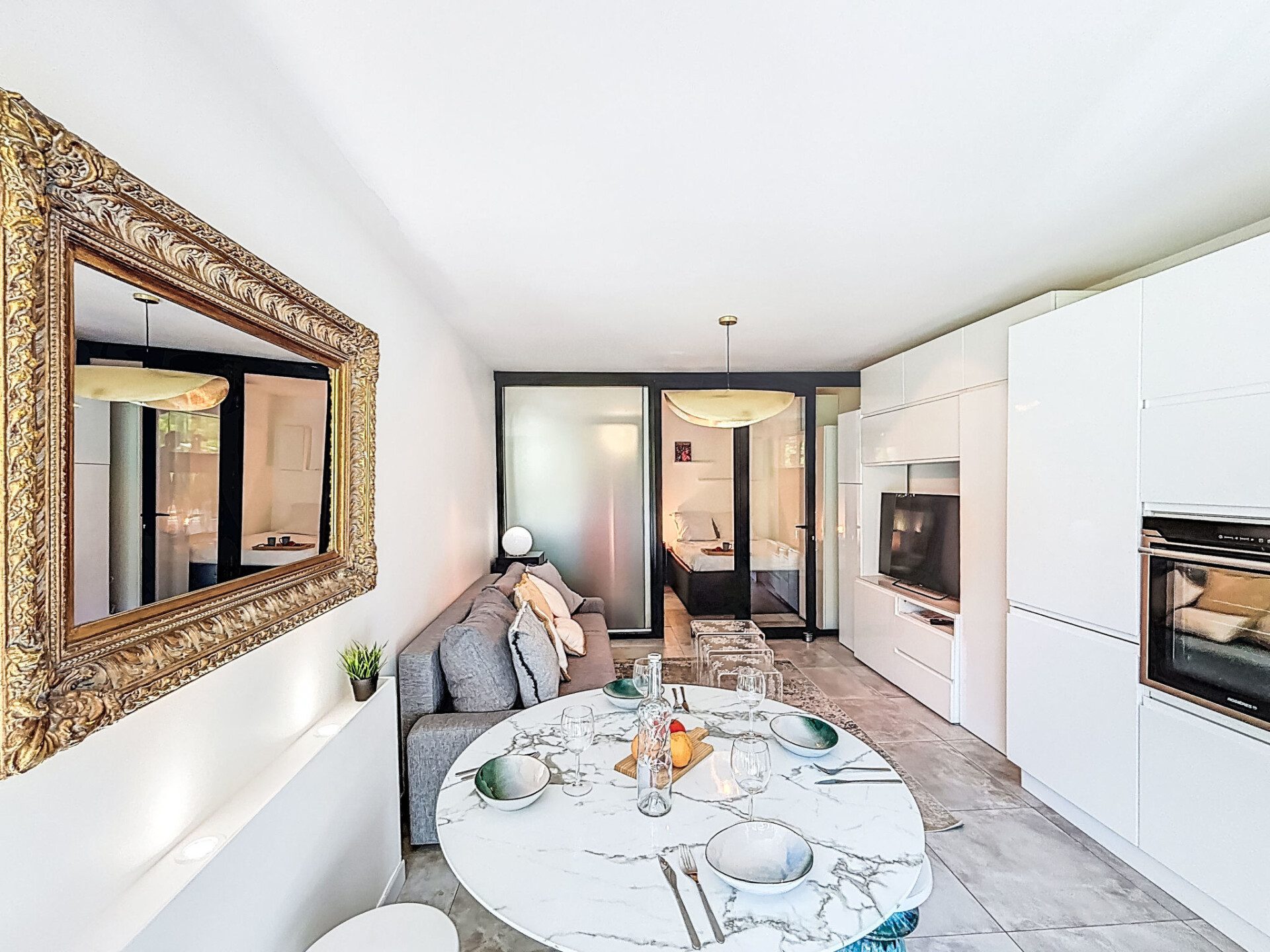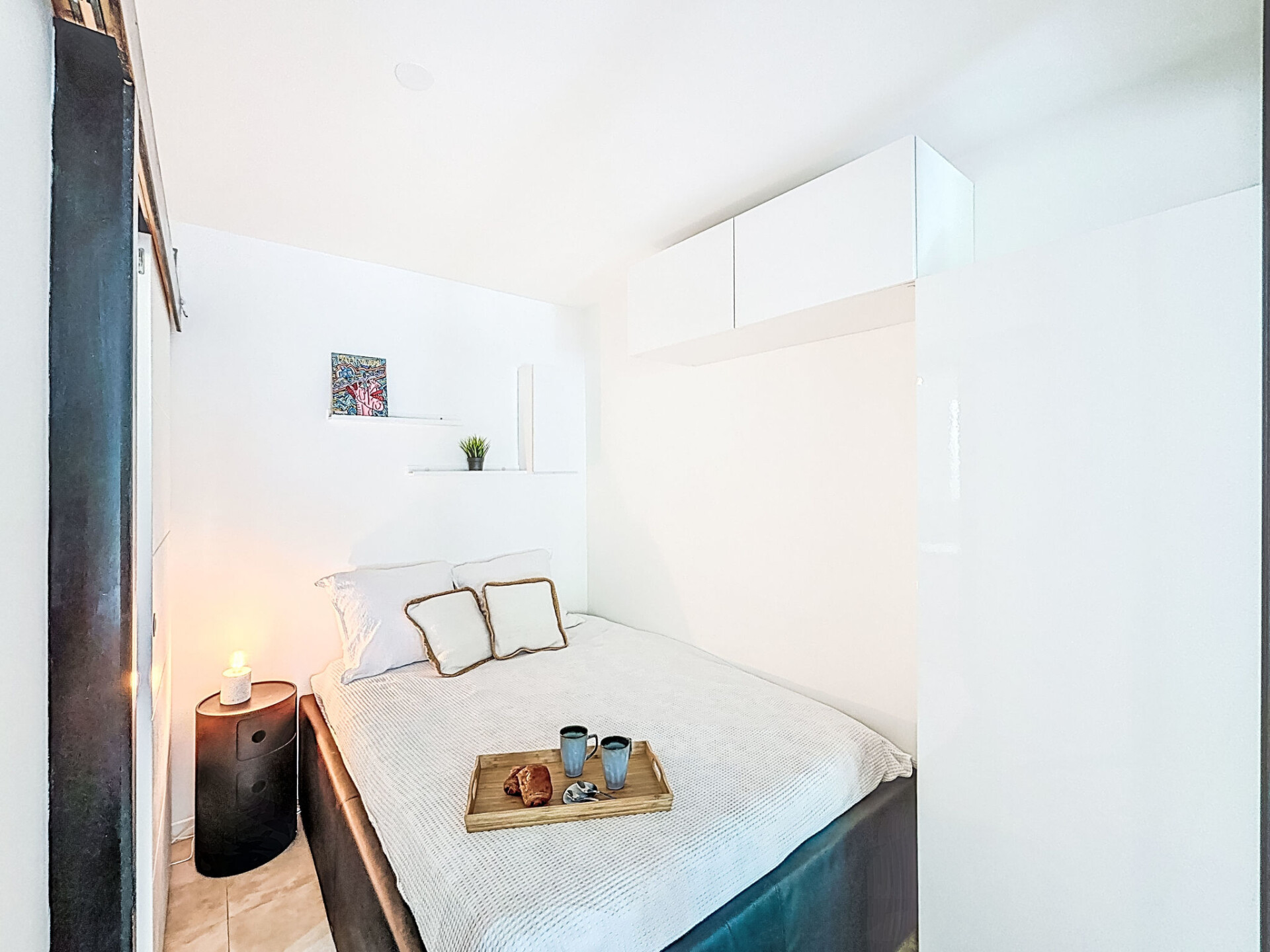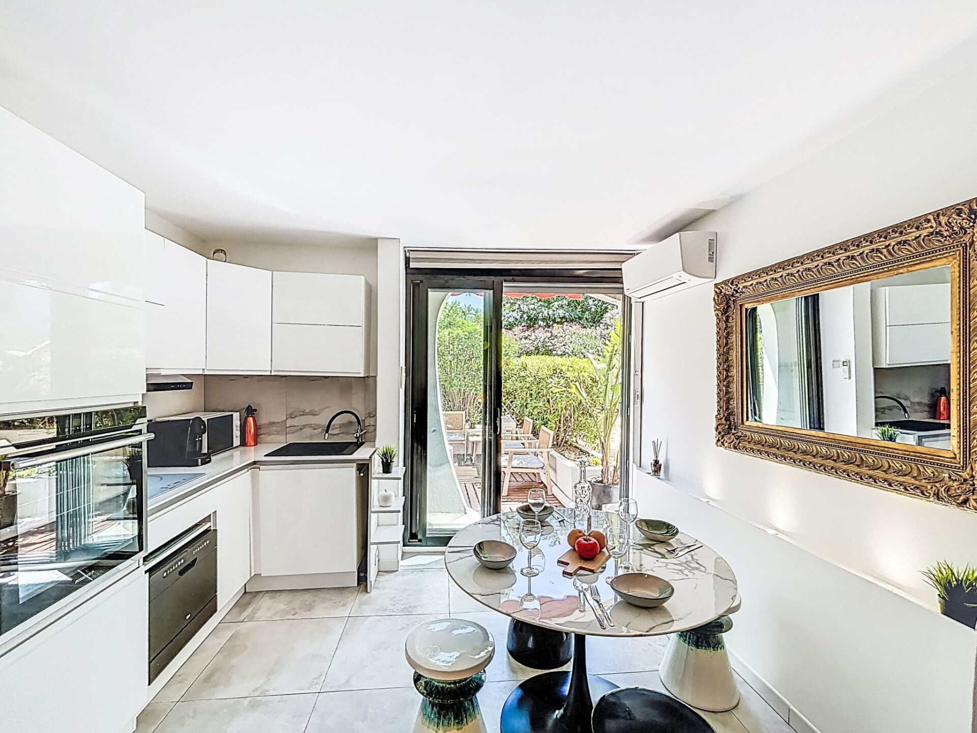 Appartement 2-kamers 27 m2, op de begane grond, op het zuiden gelegen. Mooi ingericht: woon-/eetkamer met 1 2-pers divanbed (140 cm, lengte 190 cm), TV (Flatscreen TV), air-conditioning. Uitgang naar het terras. 1 kleine kamer met 1 2-pers bed (140 cm, lengte 200 cm). Kookhoek (oven, afwasmachine, 3 inductiekookplaten, broodrooster, waterkoker, magnetron, diepvriezer, elektrische koffiemachine, pads voor de koffiemachine (NESPRESSO) extra). Douche/WC. Elektrische verwarming. Groot terras 25 m2, op het zuiden gelegen. Terrasmeubelen, ligstoelen (1). Uitzicht op de tuin. Ter beschikking: wasmachine, droger. Internet (WiFi, extra). Niet rokers woning, geen parkeerplaats. Rookmelders. Aanbod door een particulier volgens art. 155, IV van CGI.
