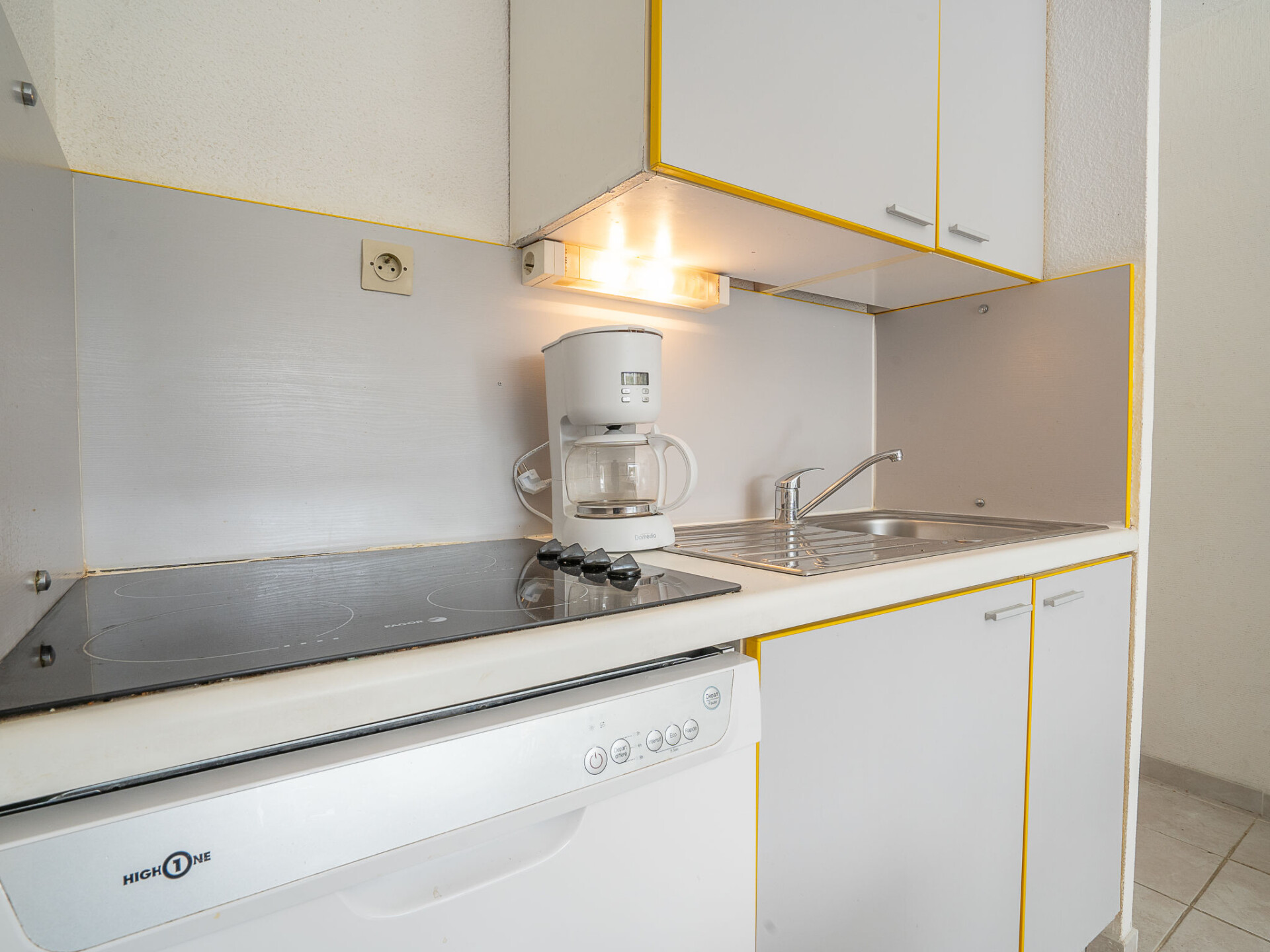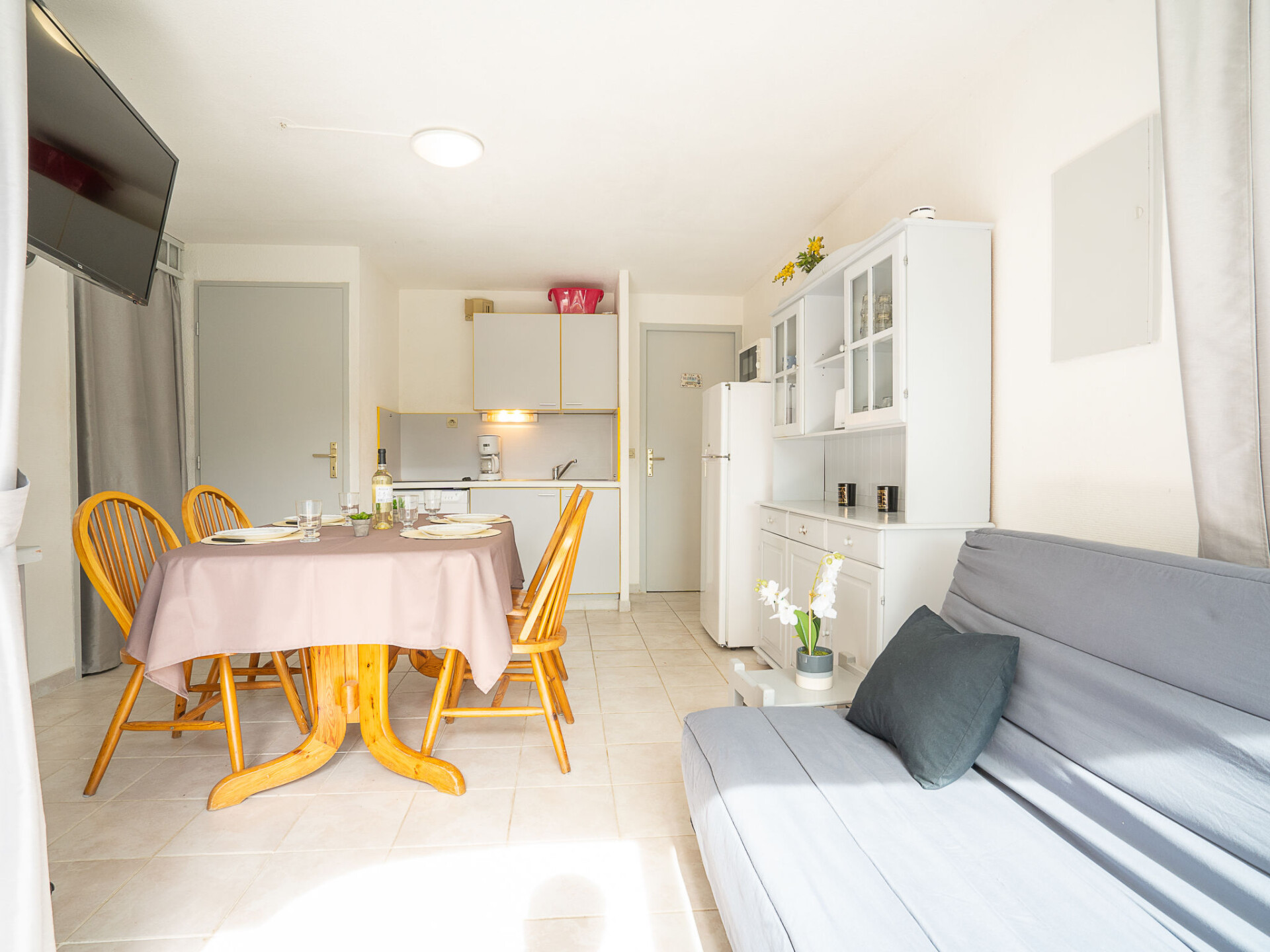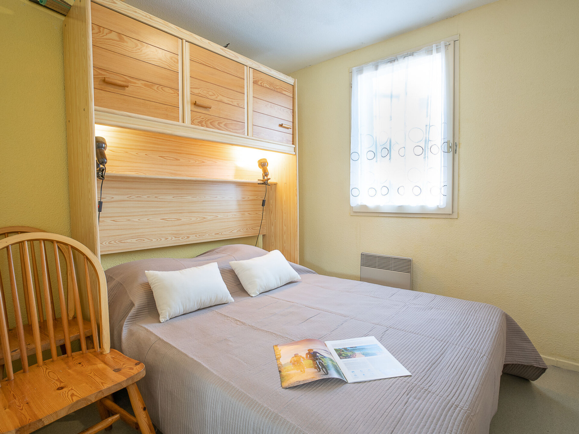 Appartement 2-kamers 28 m2, op de begane grond. Woon-/eetkamer met TV (Flatscreen TV). Uitgang naar het terras. Cabine met 1 x 2 stapelbedden (80 cm, lengte 190 cm). 1 kamer met 1 2-pers bed (140 cm, lengte 190 cm). Kookhoek (4-pits kookplaat, oven, afwasmachine, magnetron, diepvriezer, elektrische koffiemachine). Douche/WC. Elektrische verwarming. Terras 10 m2, op het oosten gelegen, tuin 40 m2. Terrasmeubelen. Ter beschikking: kinderbed. Internet (Internet (WiFi), extra). Maximaal 1 huisdier/hond toegestaan. Rookmelders. In plaats van een afgesloten slaapkamer bevinden sommige slaapgedeeltes zich in een open ruimte (galerij, nis, etc.). FR6665.250.1