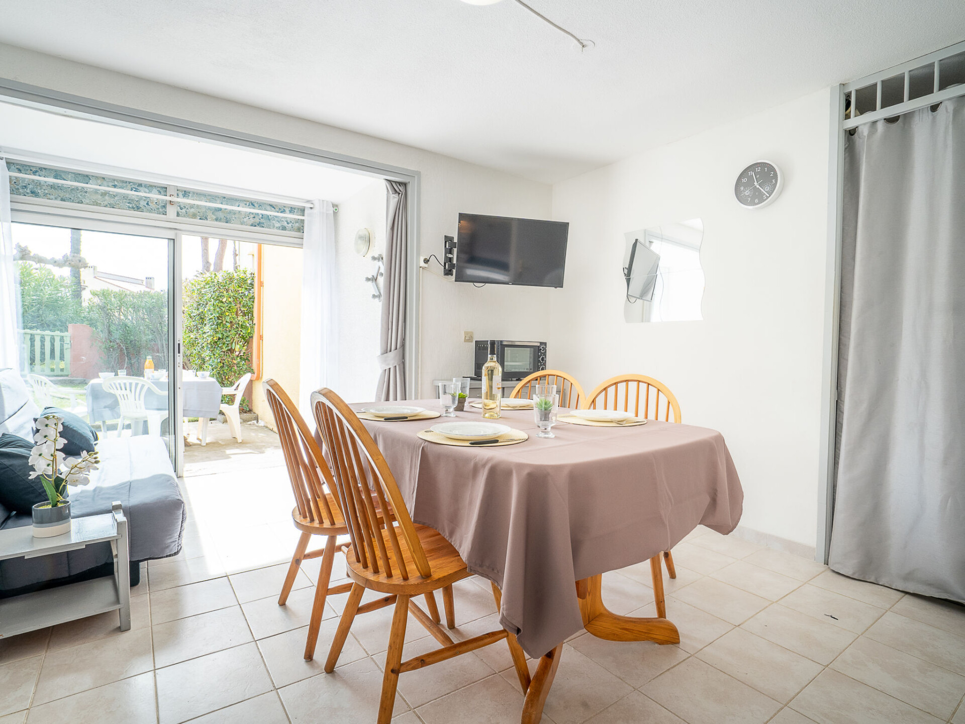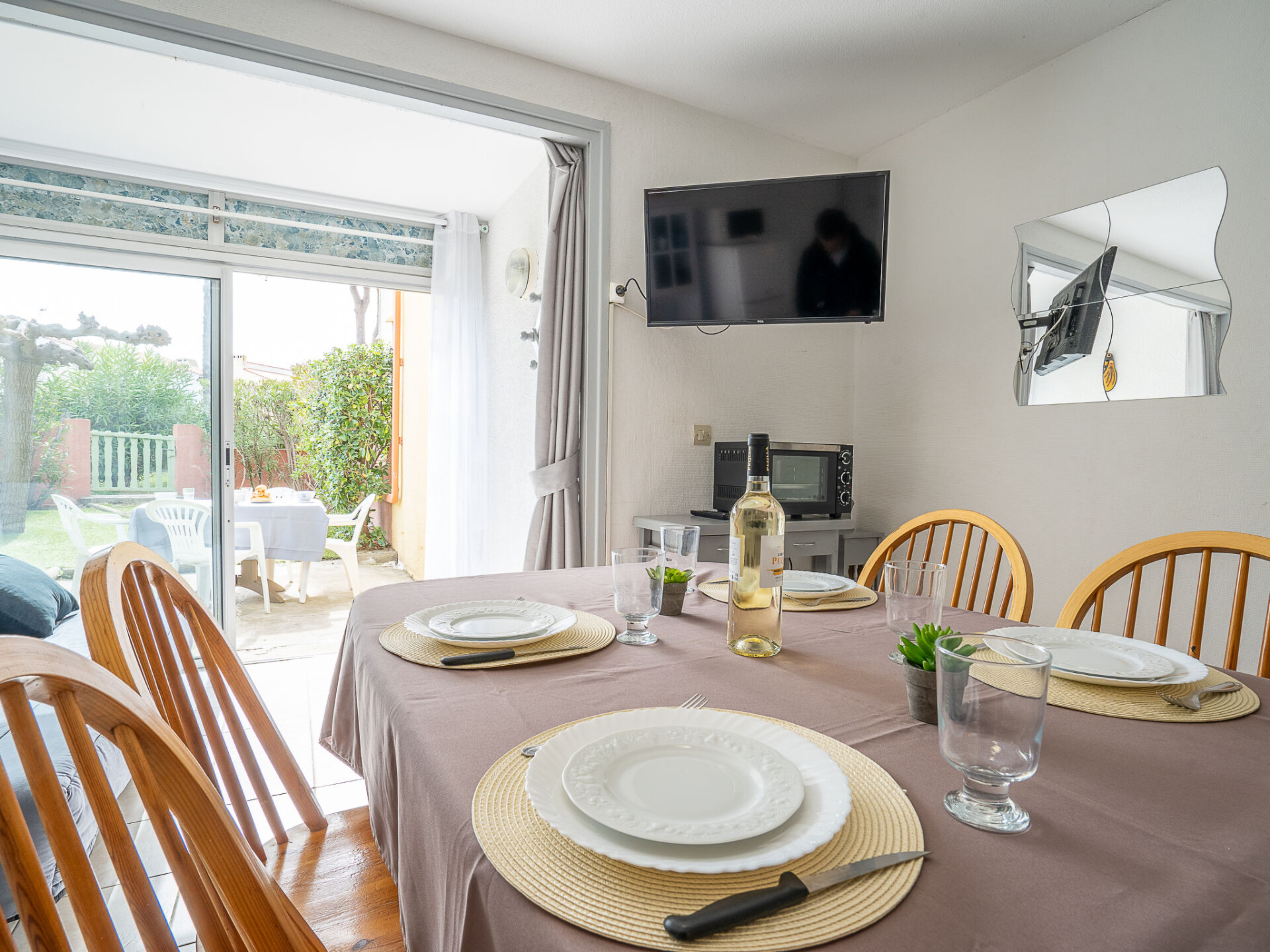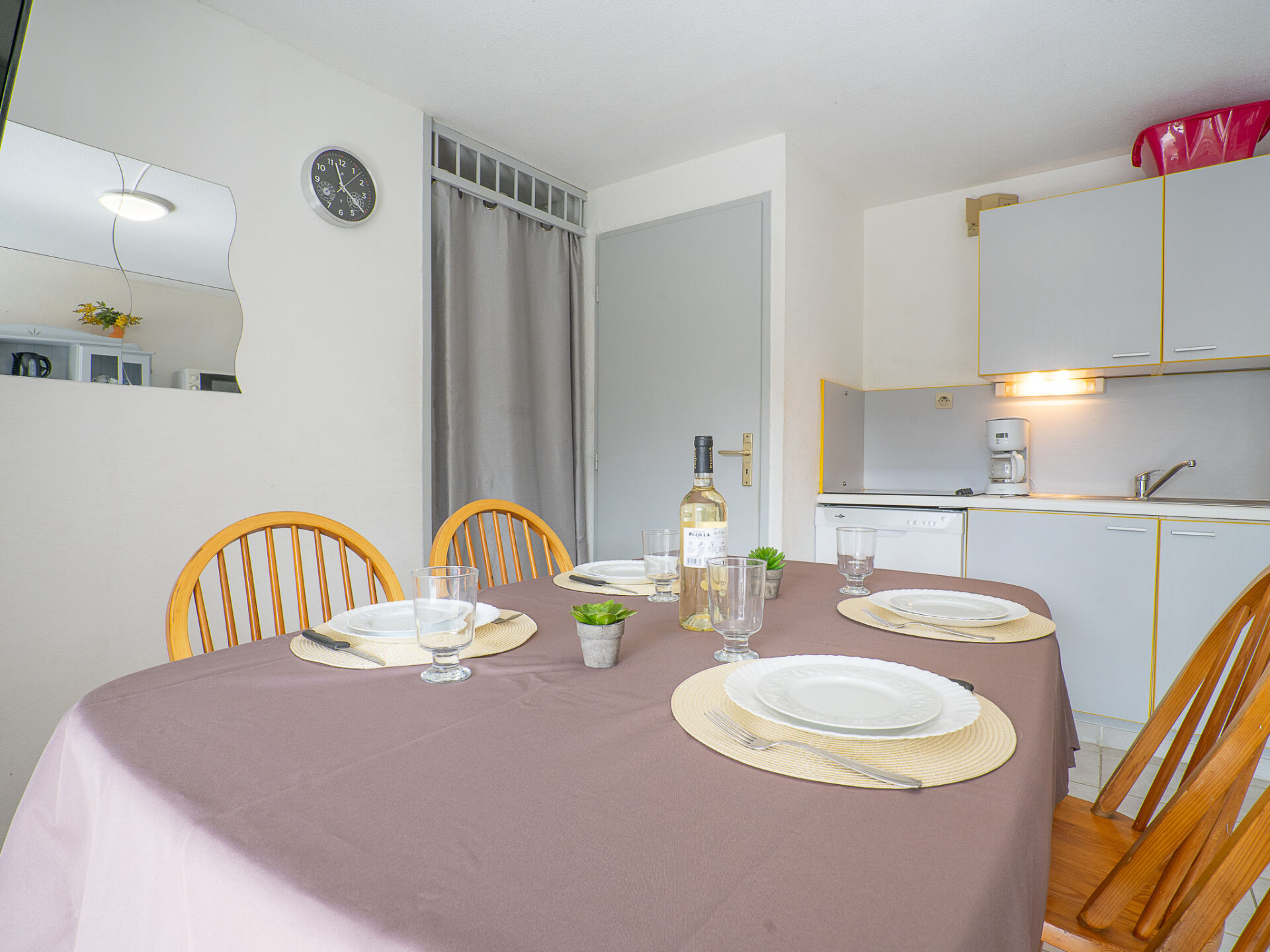 Appartement 2-kamers 28 m2, op de begane grond. Woon-/eetkamer met TV (Flatscreen TV). Uitgang naar het terras. Cabine met 1 x 2 stapelbedden (80 cm, lengte 190 cm). 1 kamer met 1 2-pers bed (140 cm, lengte 190 cm). Kookhoek (4-pits kookplaat, oven, afwasmachine, magnetron, diepvriezer, elektrische koffiemachine). Douche/WC. Elektrische verwarming. Terras 10 m2, op het oosten gelegen, tuin 40 m2. Terrasmeubelen. Ter beschikking: kinderbed. Internet (Internet (WiFi), extra). Maximaal 1 huisdier/hond toegestaan. Rookmelders. In plaats van een afgesloten slaapkamer bevinden sommige slaapgedeeltes zich in een open ruimte (galerij, nis, etc.). FR6665.250.1