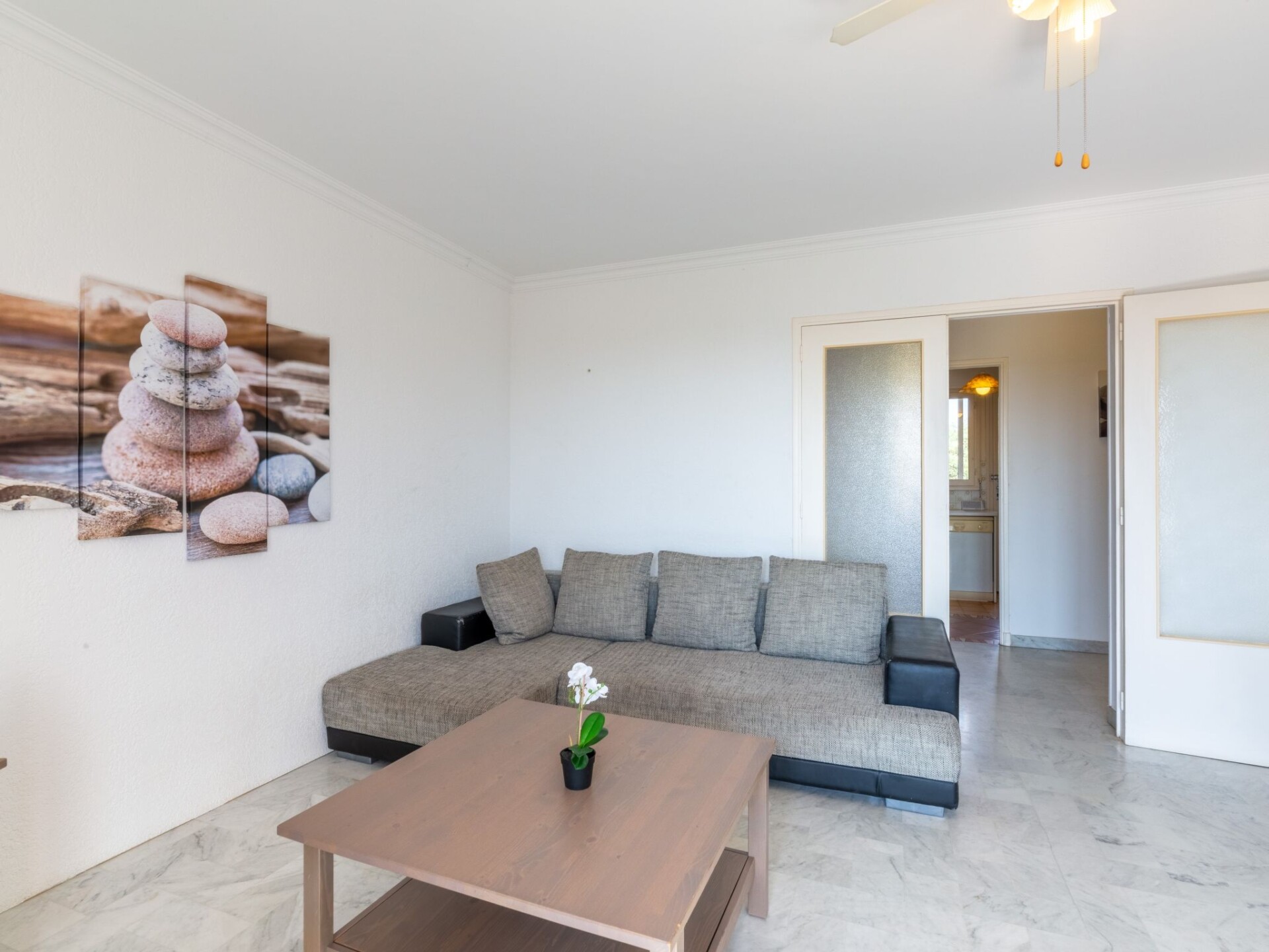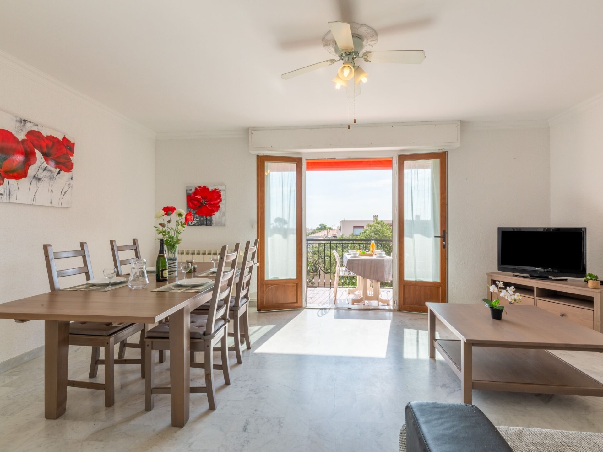 Appartement 3-kamers 70 m2 op de 2e verdieping, op het noordwesten gelegen. Comfortabel en mooi ingericht: woon-/eetkamer met TV en elektrische rolluiken. Uitgang naar het balkon. 1 kamer met 2 bedden (80 cm, lengte 190 cm), ventilator en elektrische rolluiken. 1 kamer met 1 2-pers bed (1 x 160 cm, lengte 200 cm), ventilator en elektrische rolluiken. Keuken (oven, afwasmachine, 4 kookpitten (vlammen), broodrooster, waterkoker, magnetron, diepvriezer, elektrische koffiemachine, pads voor de koffiemachine (senseo) extra). Uitgang naar de loggia. Douche, bidet, aparte WC. Elektrische verwarming. Balkon 10 m2. Balkonmeubilair, ligstoelen (1). Uitzicht in de verte op zee. Ter beschikking: wasmachine, strijkijzer. Internet (WiFi, extra). Garage, hoogte 195 cm, breedte 230 cm. Geschikt voor families. Maximaal 1 huisdier/hond toegestaan. TV alleen FR. Rookmelders. 8DPWMU