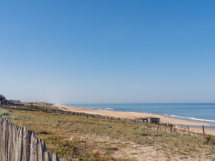 Lacanau-Ocean: Residentie "Les Océanides", van 4 verdiepingen. 300 m van het centrum, 20 m van zee, 6 km van het meer, 20 m van het strand, directe toegang tot het strand. Winkel 300 m, levensmiddelenwinkel 50 m, supermarkt 300 m, restaurant 50 m, bar 200 m, bakkerij 100 m, voetgangersgebied 200 m, fietsverhuur 500 m, bushalte "Salle l'Escoure Océan" 700 m, zandstrand "Plage sud" 20 m, meer (zwemmen) "Moutchic" 6 km. Golfterrein (18 holes) 4 km, zeilschool 10 km, tennis 2 km, manege 15 km. Attracties in de buurt: Bordeaux 60 km, Dune du Pilat 80 km, Arcachon 80 km, Saint Emilion 80 km, Lacanau Ville 10 km. Bekende meren kunnen gemakkelijk worden bereikt: Lac du moutchic 10 km, Lac de Maubuisson 20 km. Wandelgebied Chemin de Saint Jacques de Compostelle 500 m.