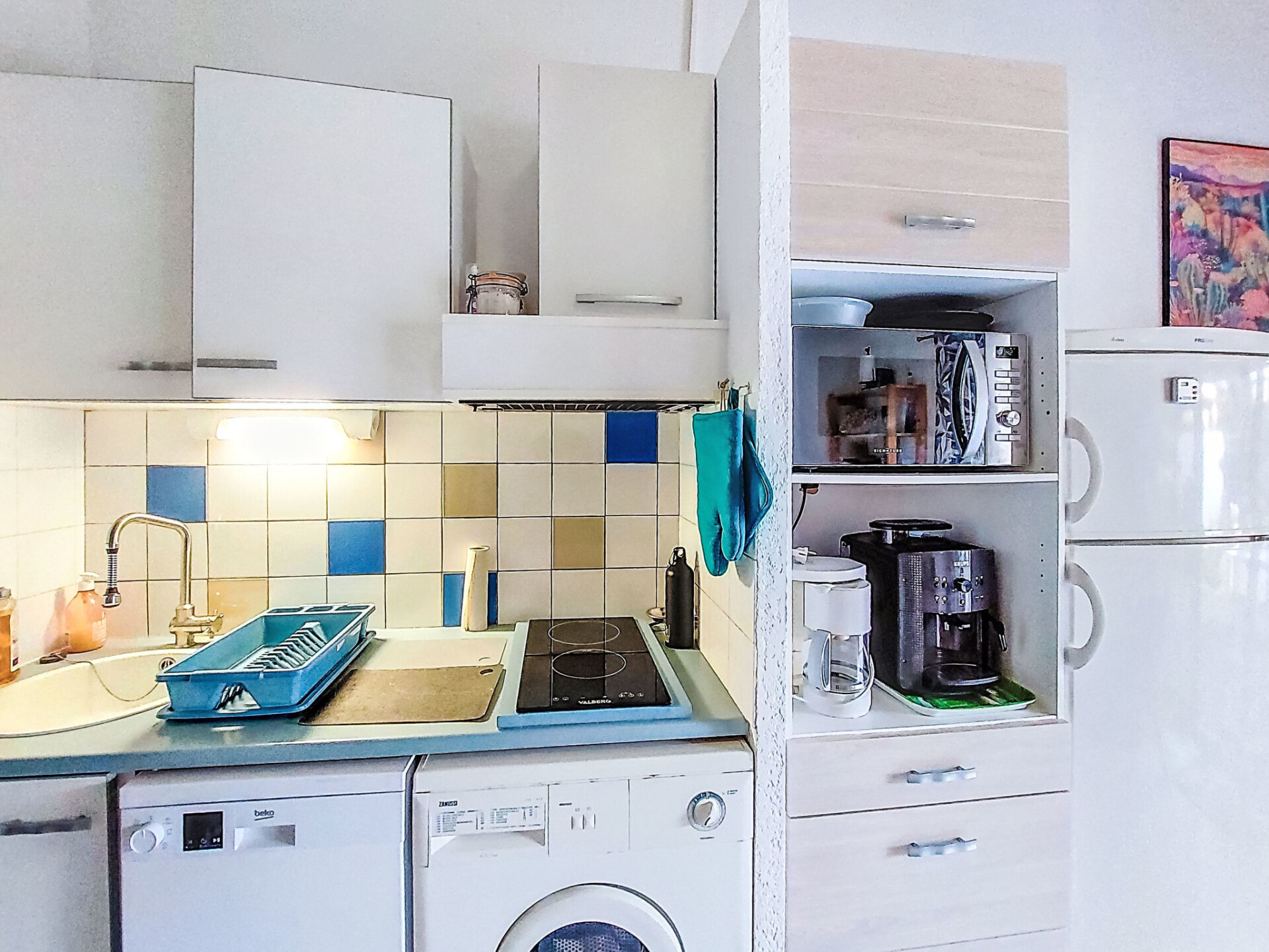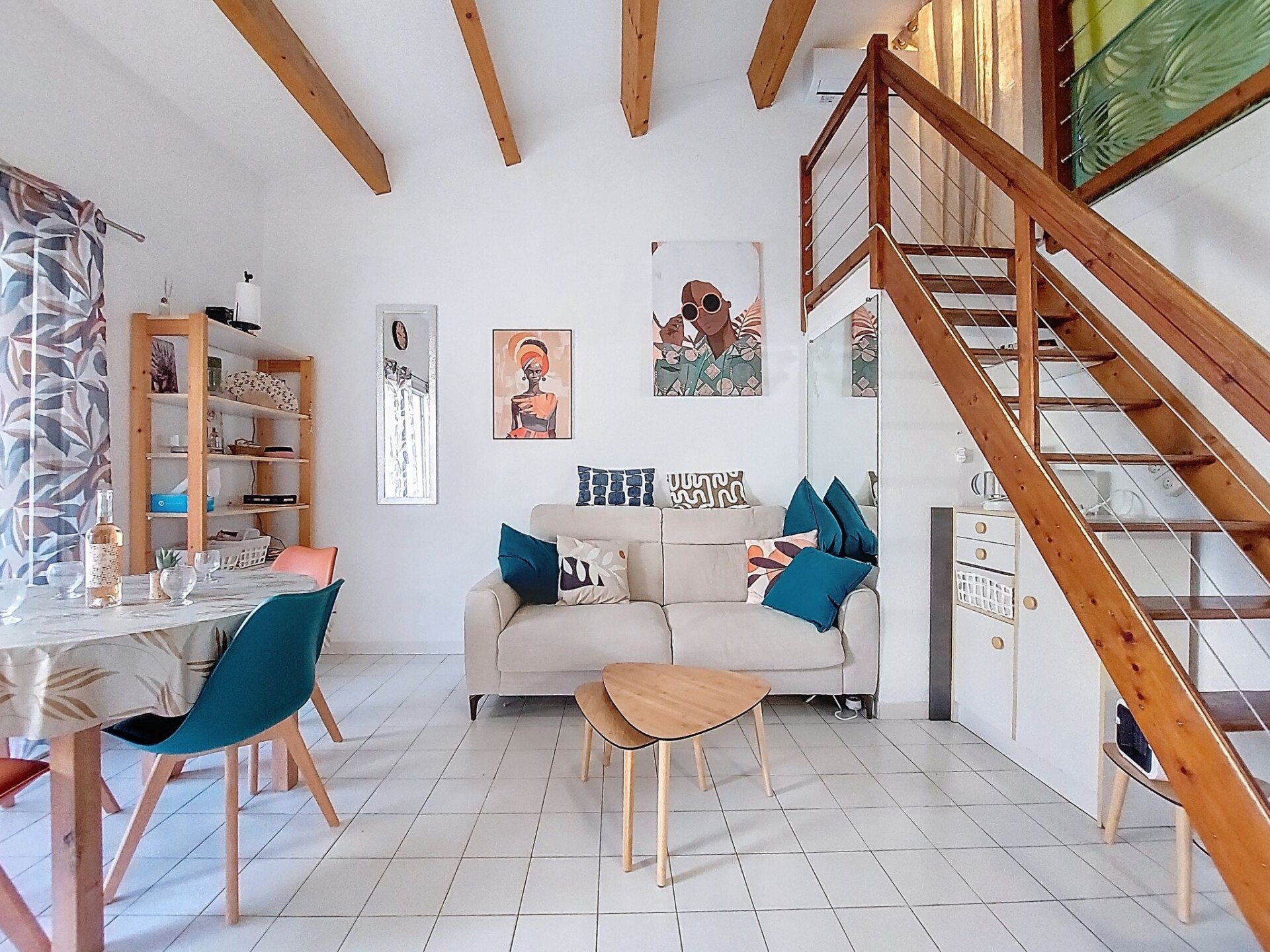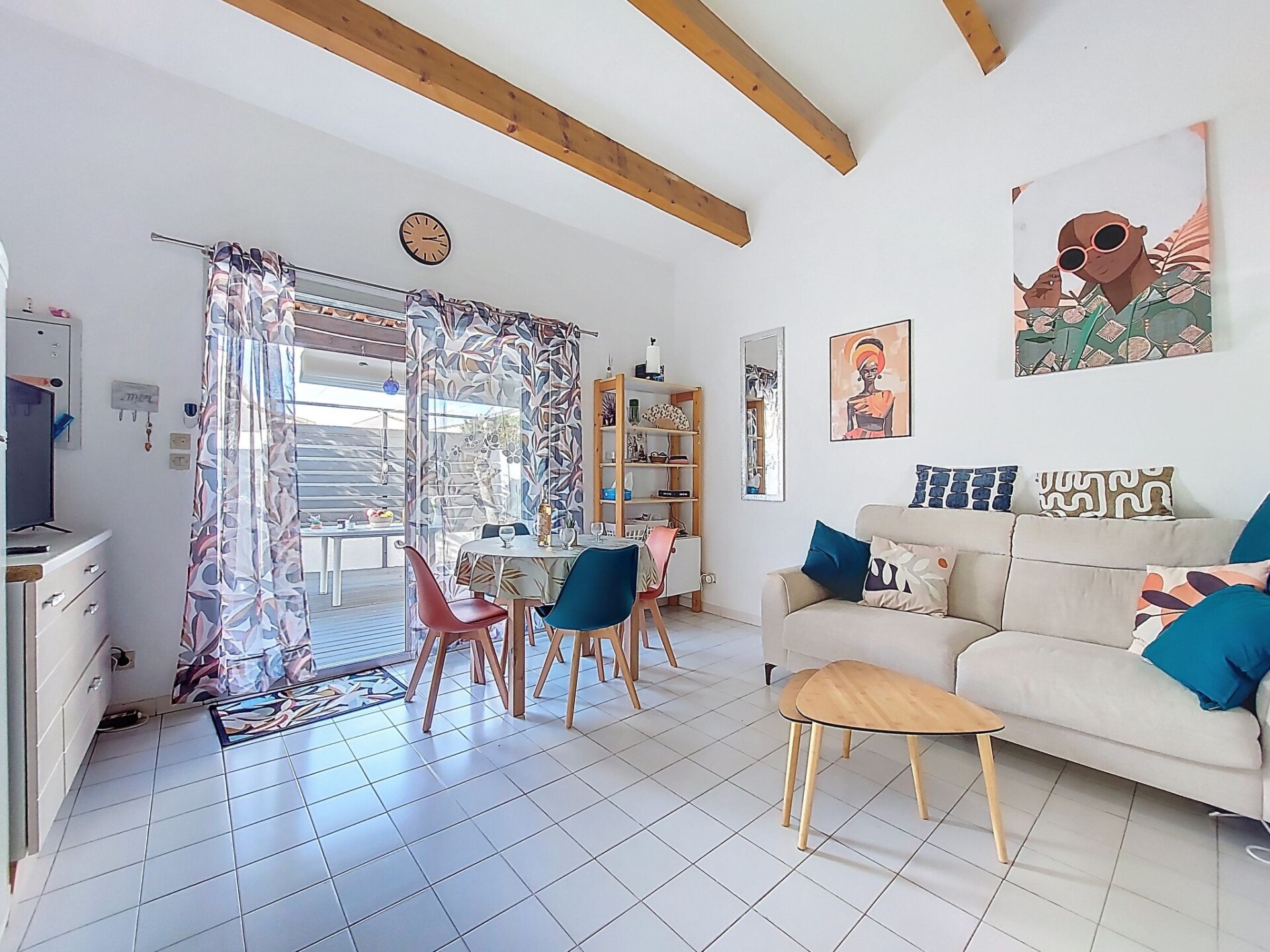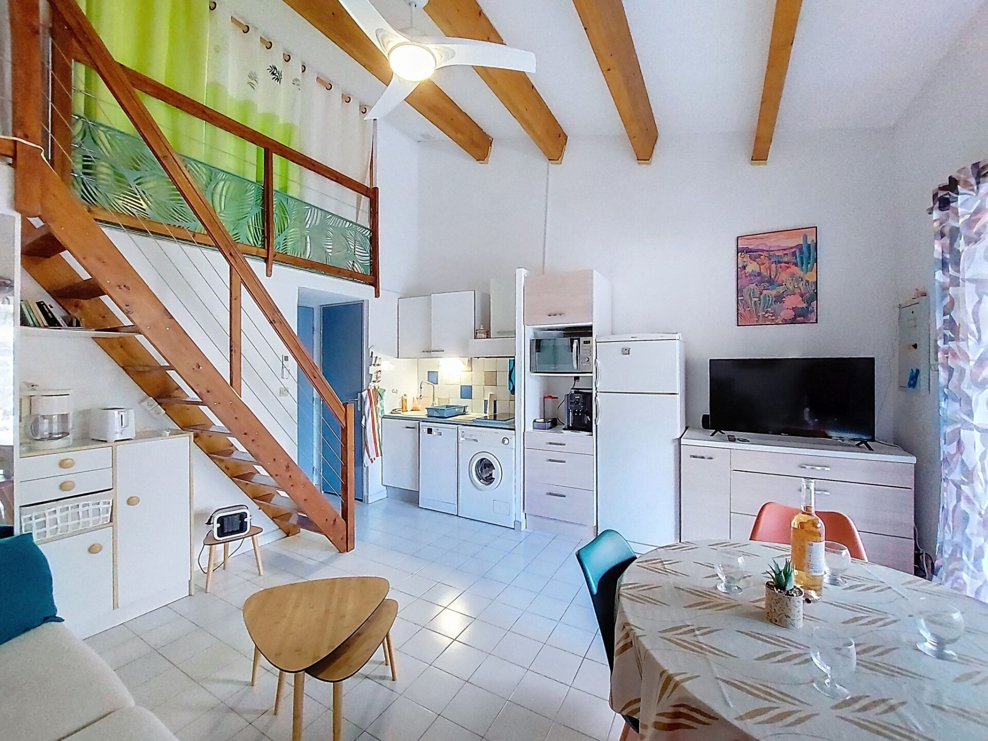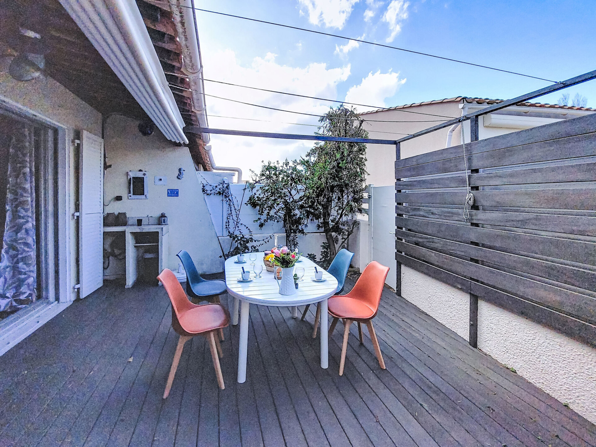 Huis in een rij 2-kamers 40 m2 op 2 verdiepingen. Woon-/eetkamer met TV (Flatscreen TV), air-conditioning en heteluchtverwarming. Uitgang naar het terras. 1 kamer met 1 2-pers bed (140 cm, lengte 190 cm). Kookhoek (2-pits kookplaat, afwasmachine, elektrische koffiemachine, combimagnetron). Douche, aparte WC. Bovenverdieping: galerij met afgeschuinde daken, hoogte van het plafond 170 - 240 cm met 2 bedden (80 cm, lengte 190 cm). Groot terras 27 m2. Ter beschikking: wasmachine. Internet (WiFi, extra). Parkeerplaats nr. 45. Rookvrij huis. Rookmelders. Aanbod door een particulier volgens art. 155, IV van CGI.