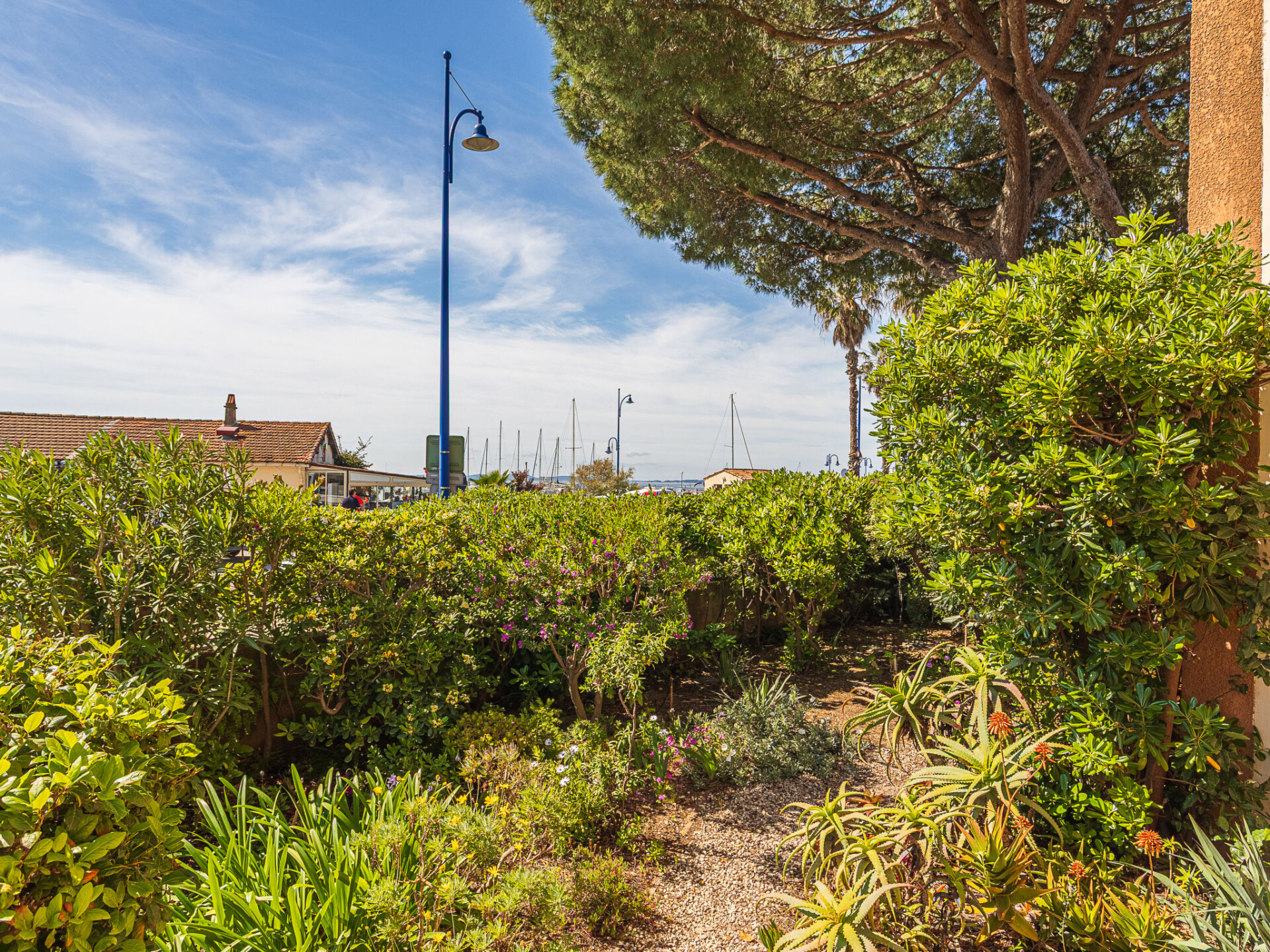 Residentie "Les Palmiers", omgeven door bomen. In de wijk Salins, drukke, zonnige ligging, 50 m van zee, 150 m van het strand. Voor medegebruik: kinderspeelplaats, openbare parkeerplaatsen extra. Oplaadstation. Winkel 6 km, levensmiddelenwinkel 40 m, supermarkt 9.8 km, winkelcentrum 8.4 km, restaurant, bar, café 35 m, bushalte "Les Salins" 200 m, zandstrand "Les Vahinés" 150 m. Jachthaven 1.3 km, golfterrein (18 holes) 14 km, surfschool 8.3 km. Attracties in de buurt: Jardin Olbius Riquier 6.7 km, speedkart 6.8 km, Aquatica mini-golf 6.9 km, Jardin Zoologique Tropical 9 km. Wandelgebied Espace Nature des Vieux salins 300 m, Chemin Littoral en bord de mer 150 m, Route du Sel Hyères 11 km. De sleuteloverdracht vindt plaats bij het agentschap Interhome in Hyères le Port. Vliegveld in de buurt.