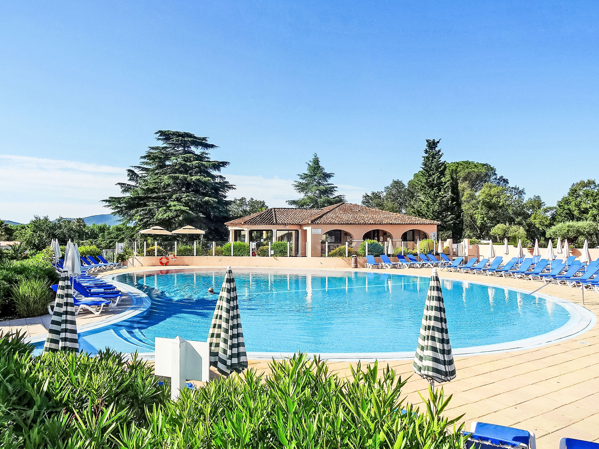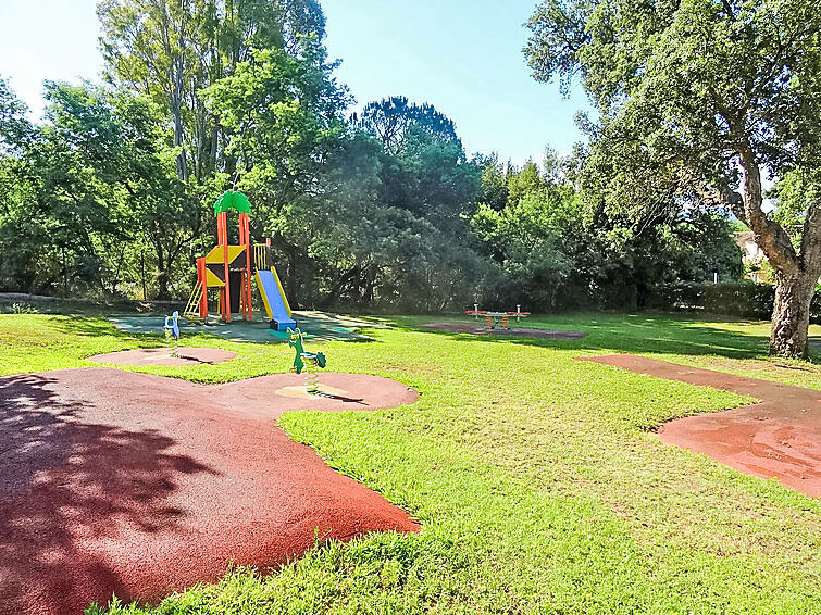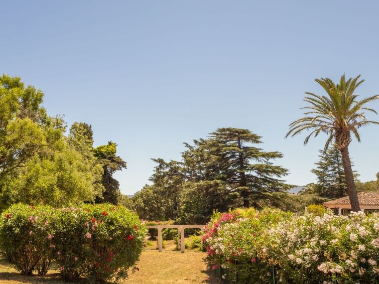 Grimaud: Residentie "Les Parcs de Grimaud". 5 km van het centrum van Grimaud, zonnige ligging, 500 m van zee, de straat oversteken. Voor medegebruik: park 16 ha (omheind), openluchtzwembad (30 x 15 m, 70 - 200 cm diepte, seizoensgebonden beschikbaarheid: 01.Apr. - 01.Okt.). Kinderzwembad, tafeltennis, jeu de boules, kinderspeelplaats. Winkel 3 km, levensmiddelenwinkel 200 m, supermarkt 3 km, restaurant 300 m, bakkerij 800 m, bushalte "Camping de la Plage" 950 m, zandstrand "Les Prairies de la Mer" 500 m. Jachthaven 2.5 km, golfterrein (18 holes) 3.4 km, zeilschool 5 km. Attracties in de buurt: Port Grimaud 2.5 km, Parc d'attractions Azur Park 3 km, Sainte Maxime 7 km, Saint Tropez 11 km, Cannes 80 km, Nice 110 km. Bekende meren kunnen gemakkelijk worden bereikt: Lac de Sainte Croix 92 km. Wandelgebied Massif de l'Esterel 50 km. Auto noodzakelijk.