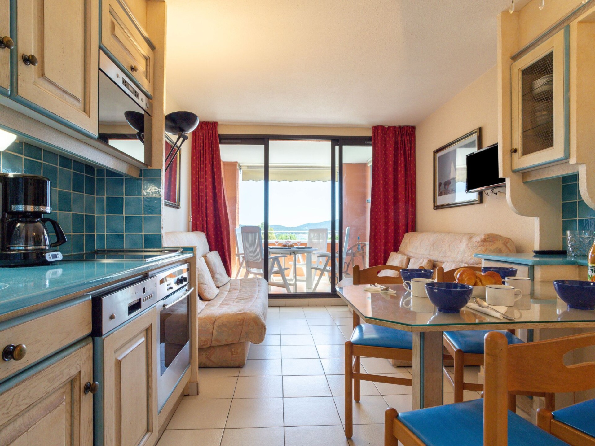 "Les Parcs de Grimaud 7", appartement 2-kamers 28 m2 op de 1e verdieping. Het objekt is geschikt voor 2 volwassenen + 2 kinderen. Gezellig ingericht: woon-/eetkamer met 1 2-pers divanbed (140 cm, lengte 190 cm), TV (Flatscreen TV). Uitgang naar de loggia. 1 kleine kamer met 1 2-pers bed (140 cm, lengte 190 cm). Kookhoek (oven, afwasmachine, 3 keramische glas kookplaten, broodrooster, waterkoker, magnetron, elektrische koffiemachine). Bad/WC. Elektrische verwarming. Terras 6 m2, overdekt, op het zuiden gelegen. Terrasmeubelen. Uitzicht op zee. Ter beschikking: wasmachine. Internet (Internet (WiFi), extra). Parkeerplaats. Rookmelders. Aanbod door een particulier volgens art. 155, IV van CGI. 83068000799N2