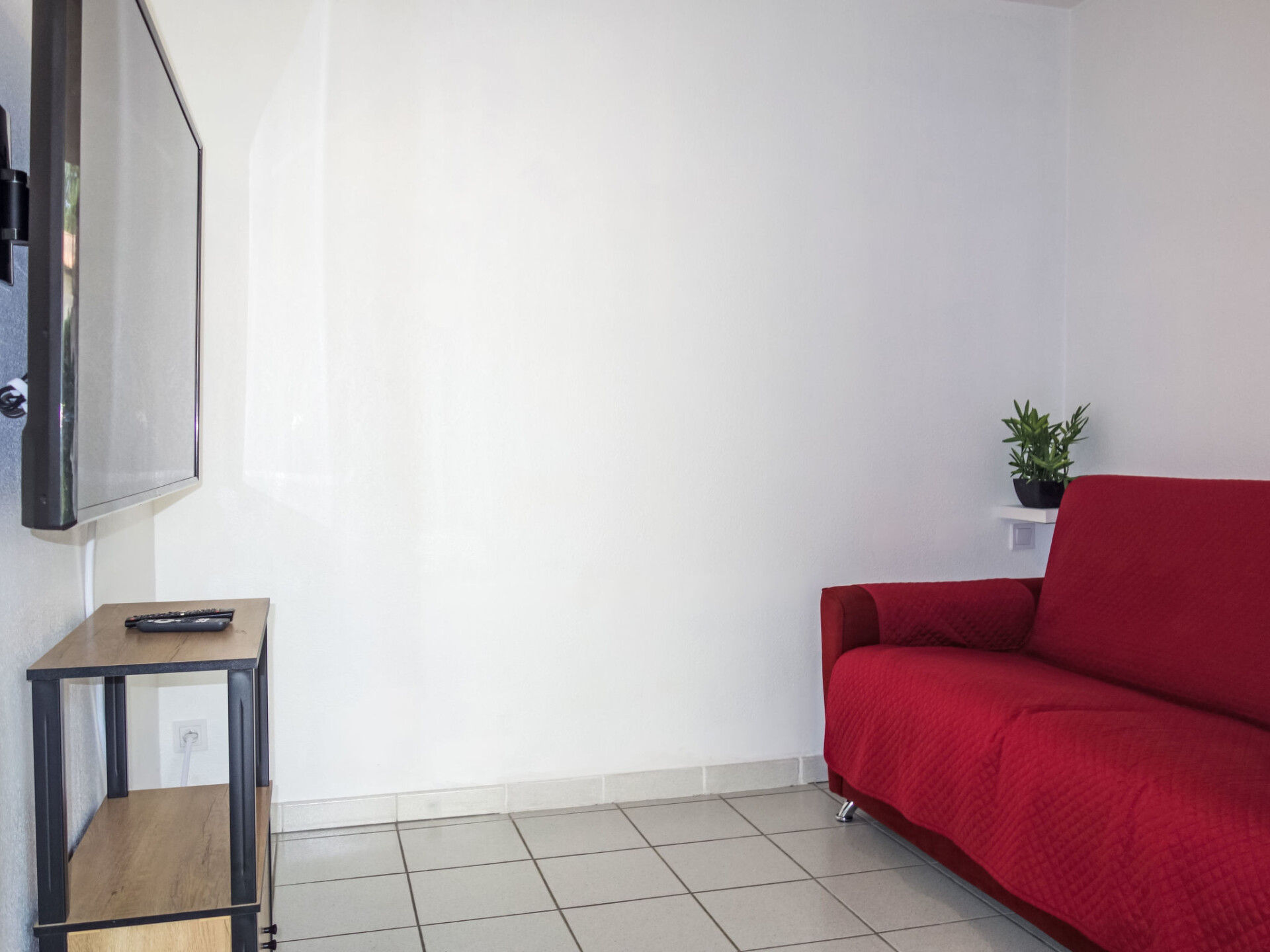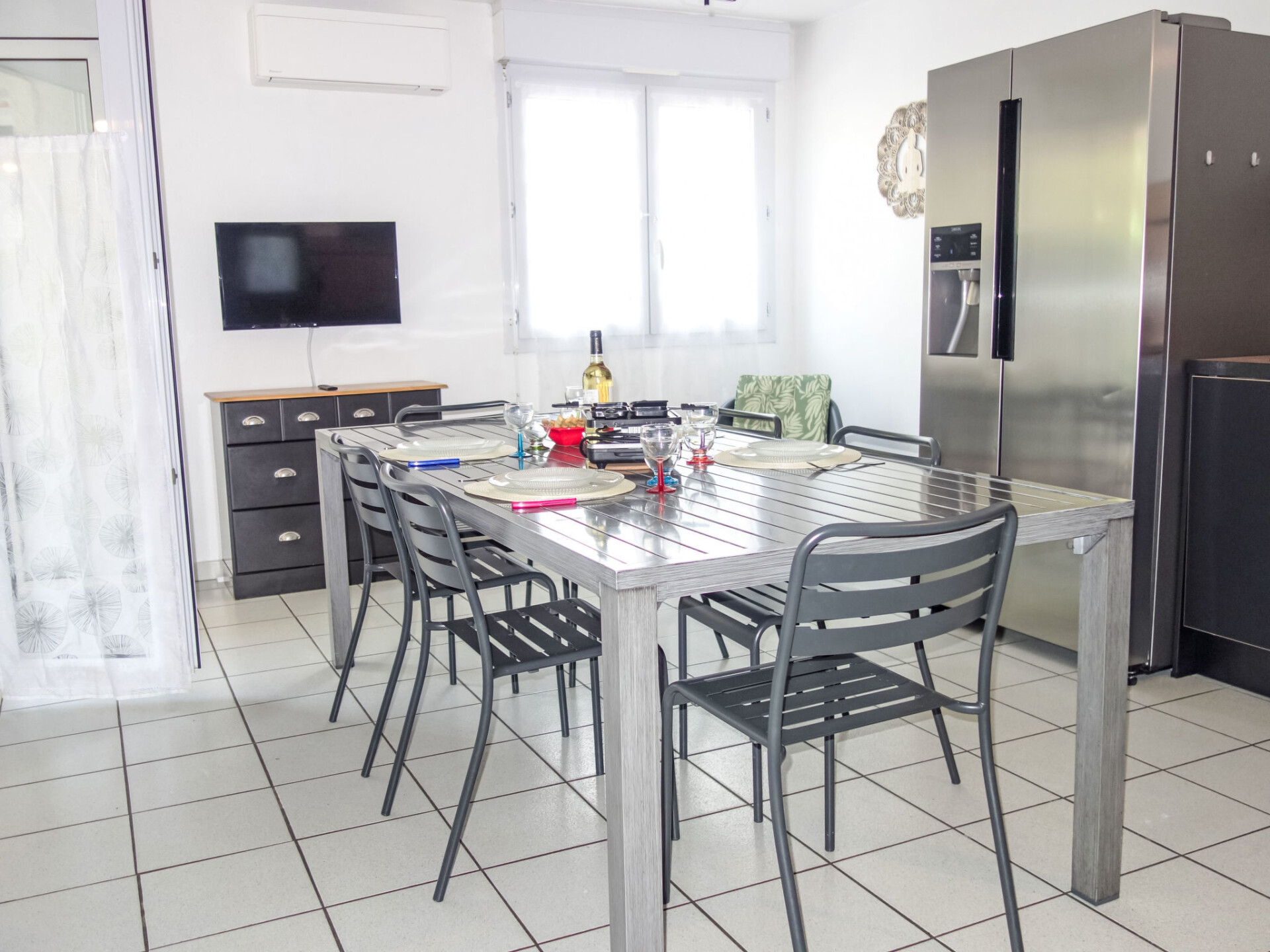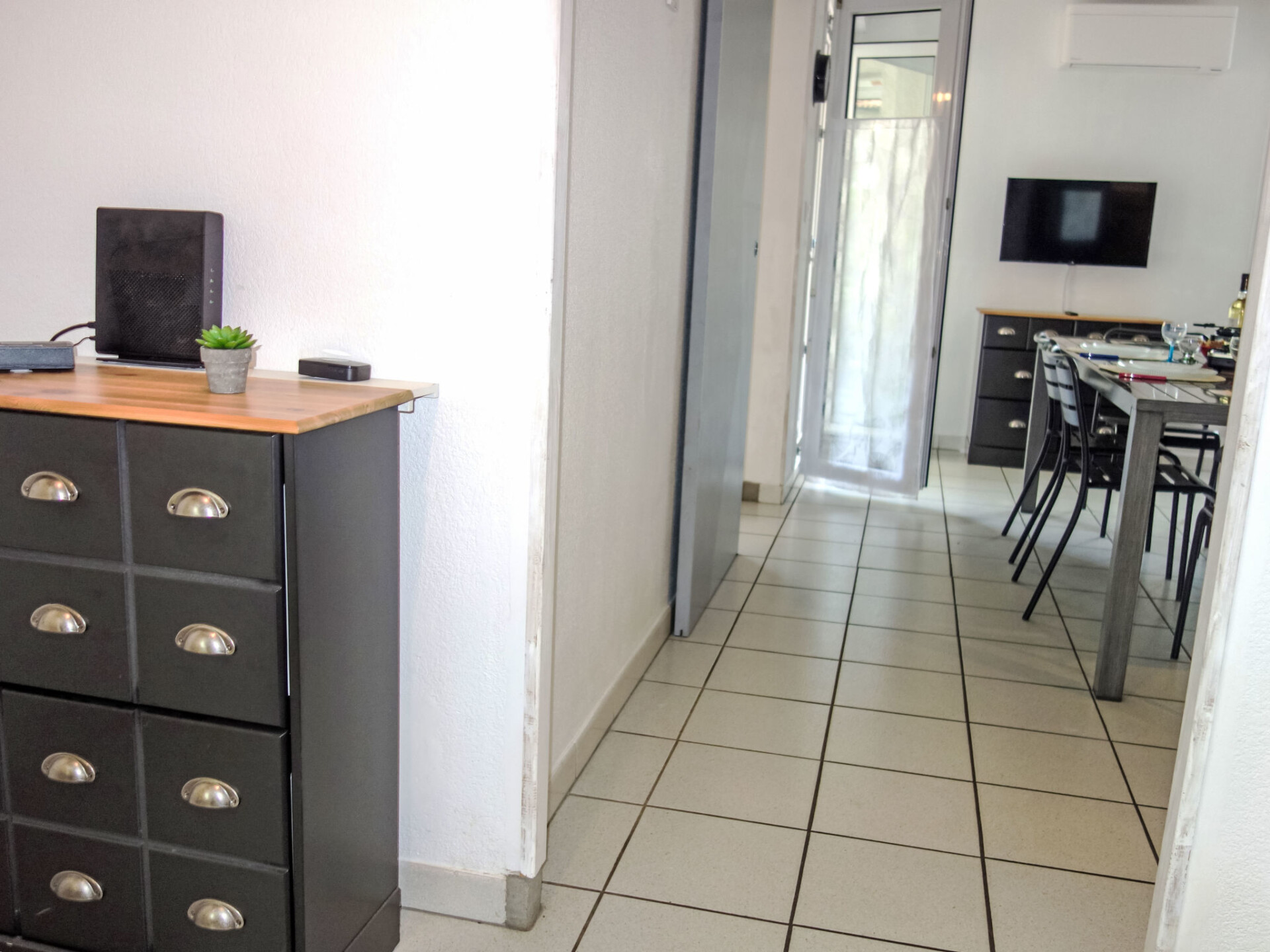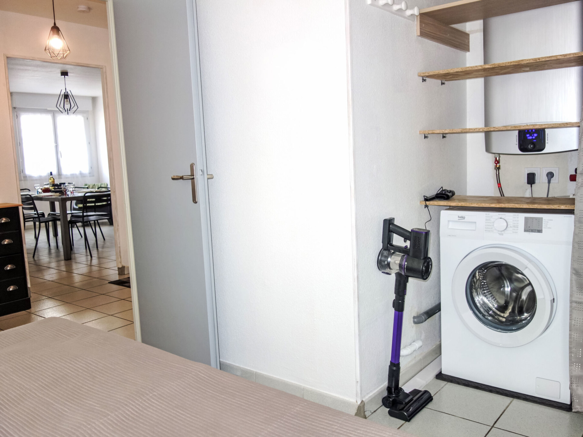 Appartement 3-kamers 50 m2, op de begane grond. Woon-/eetkamer met TV en air-conditioning. Uitgang naar het terras. 1 kamer met 1 2-pers bed (160 cm, lengte 200 cm). 1 kamer met 1 2-pers divanbed (140 cm, lengte 190 cm), TV (Flatscreen TV). Kookhoek (oven, afwasmachine, 3 inductiekookplaten, broodrooster, magnetron, diepvriezer, elektrische koffiemachine, pads voor de koffiemachine (Senseo) extra). Douche, aparte WC. Elektrische verwarming. Klein terras 10 m2 gedeeltelijk overdekt, zithoek in de tuin 25 m2, op het zuidoosten gelegen. Terrasmeubelen, elektrische barbecue. Ter beschikking: wasmachine. Internet (WiFi, gratis). Parkeerplaats nr. 10. Niet rokers woning. Maximaal 1 huisdier/hond toegestaan. Rookmelders. Aanbod door een particulier volgens art. 155, IV van CGI.