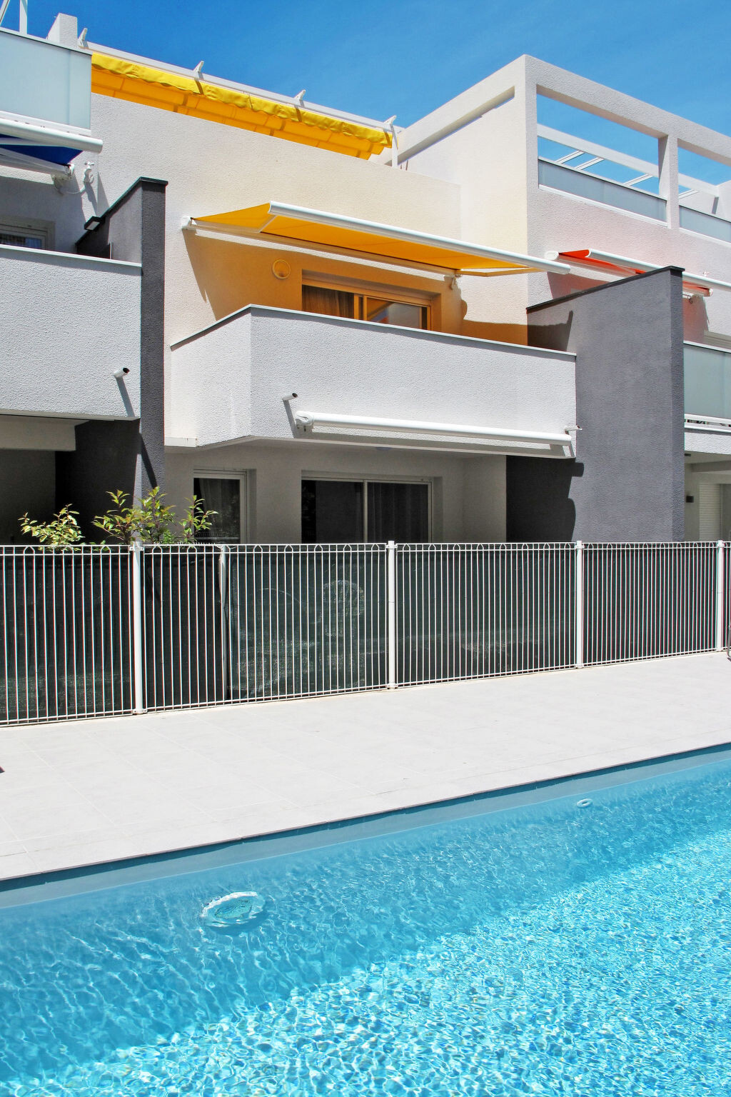 Kleine, mooi residentie "Les Pins Parasols", van 3 verdiepingen, bouwjaar 2015. 8 appartementen in de woning. In het centrum, 600 m van het centrum van Argelès-Plage, 24 km van het centrum van Perpignan, centrale ligging, 250 m van zee. Voor medegebruik: terrein met gazon, openluchtzwembad omheind (8 x 3 m, 140 cm diepte, seizoensgebonden beschikbaarheid: 16.Mei. - 19.Sep.). Winkel 200 m, supermarkt 500 m, bushalte "Rond-point des évadés" 850 m, treinstation 3.2 km, zandstrand 250 m.
