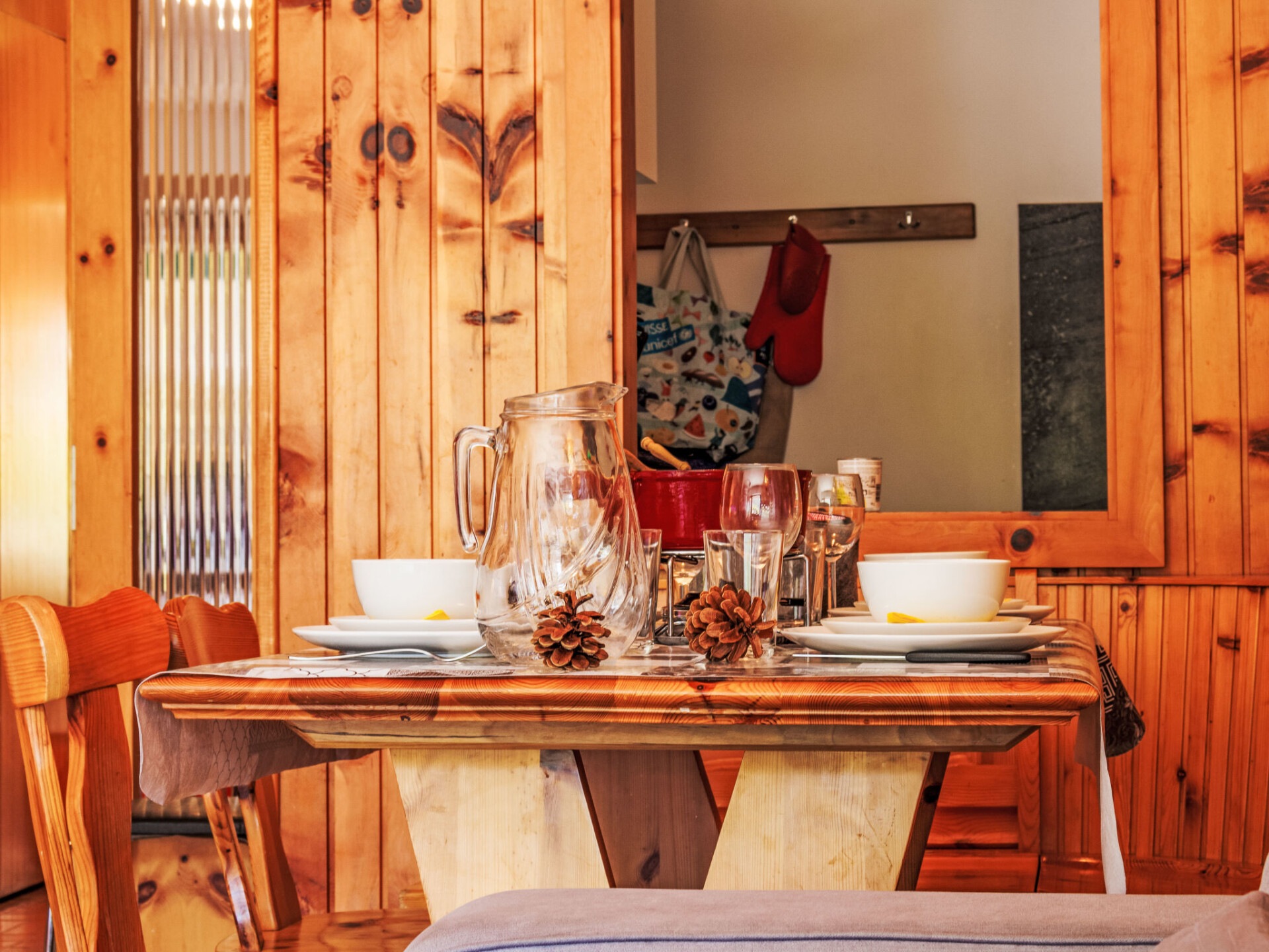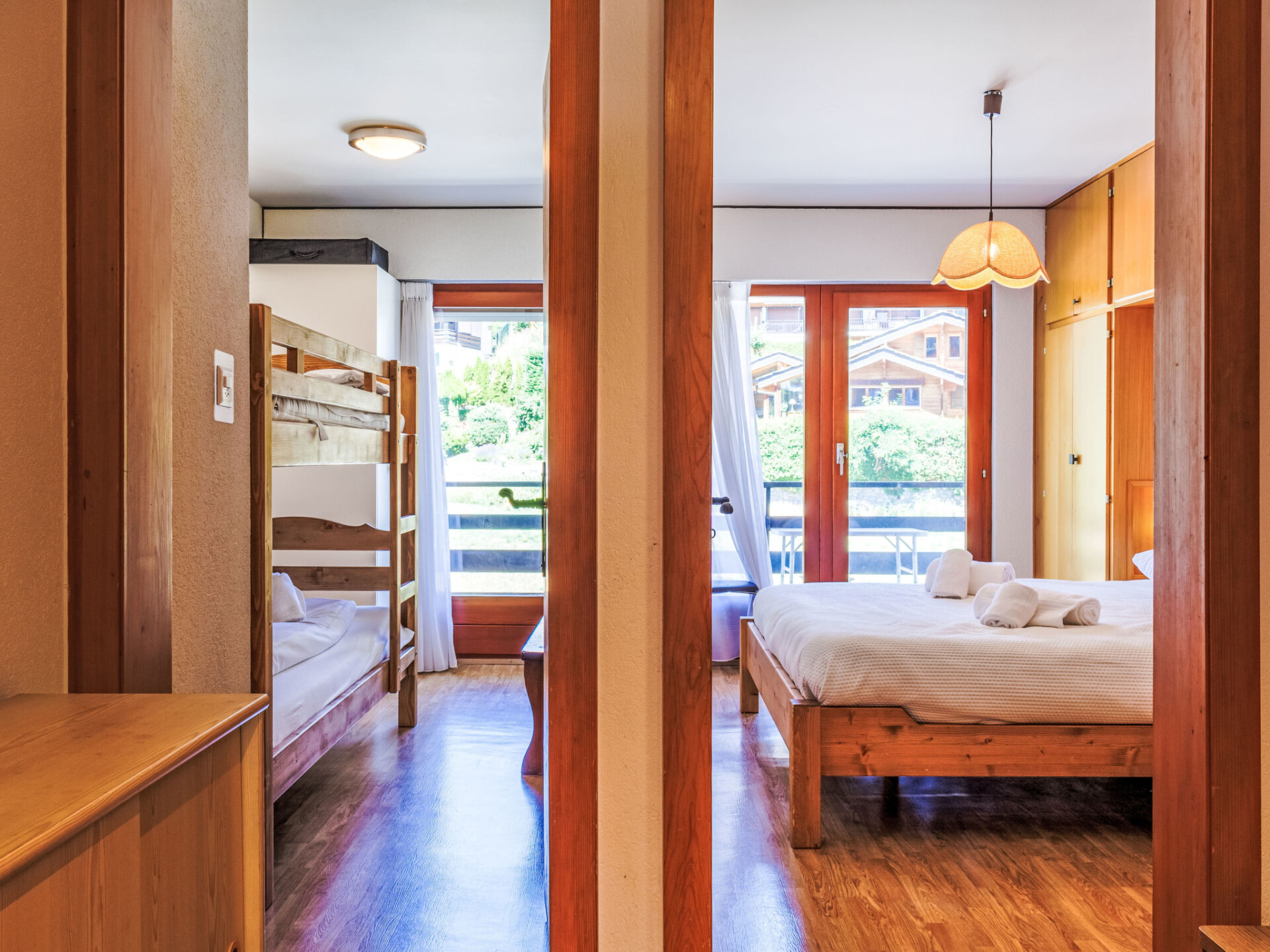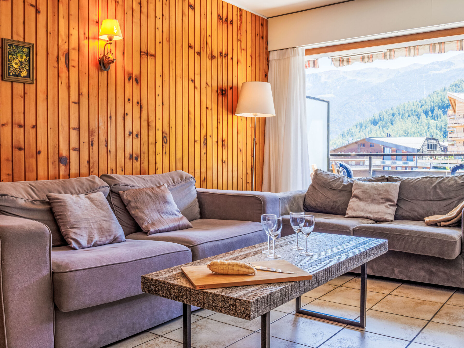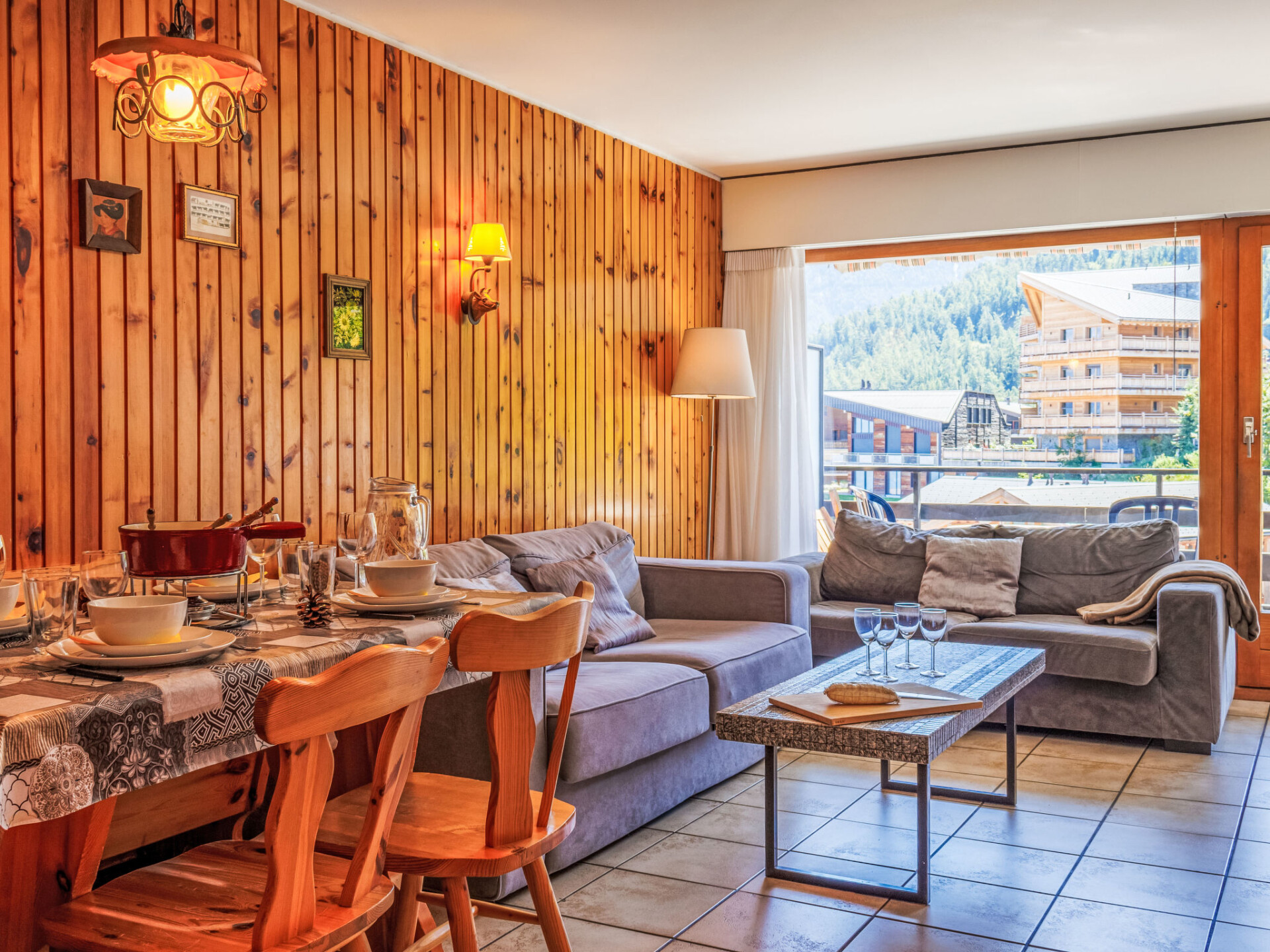 "Les Platanes E3", appartement 3-kamers 64 m2 op de 3e verdieping. Doelmatig ingericht: woon-/slaapkamer met 1 2-pers divanbed (1 x 140 cm, lengte 180 cm), open haard (alleen decoratie), Kabel-TV en DVD. Uitgang naar het balkon, op het zuiden. 1 kamer met 1 2-pers bed (180 cm, lengte 200 cm). Uitgang naar het balkon, op het noorden. 1 kamer met 1 x 2 stapelbedden (90 cm, lengte 190 cm). Uitgang naar het balkon, op het noorden. Keuken (oven, afwasmachine, 4 keramische glas kookplaten, broodrooster, waterkoker, magnetron, elektrische koffiemachine, pads voor de koffiemachine (nespresso) extra, raclette oven, fondue Set (kaas)). Bad/WC, aparte WC. 2 balkons. Balkonmeubilair. Mooi uitzicht op de plaats. Ter beschikking: Internet (WiFi, gratis). Parkeerplaats nr. 29 Les Sorbiers. Niet rokers woning. Maximaal 1 huisdier/hond toegestaan.