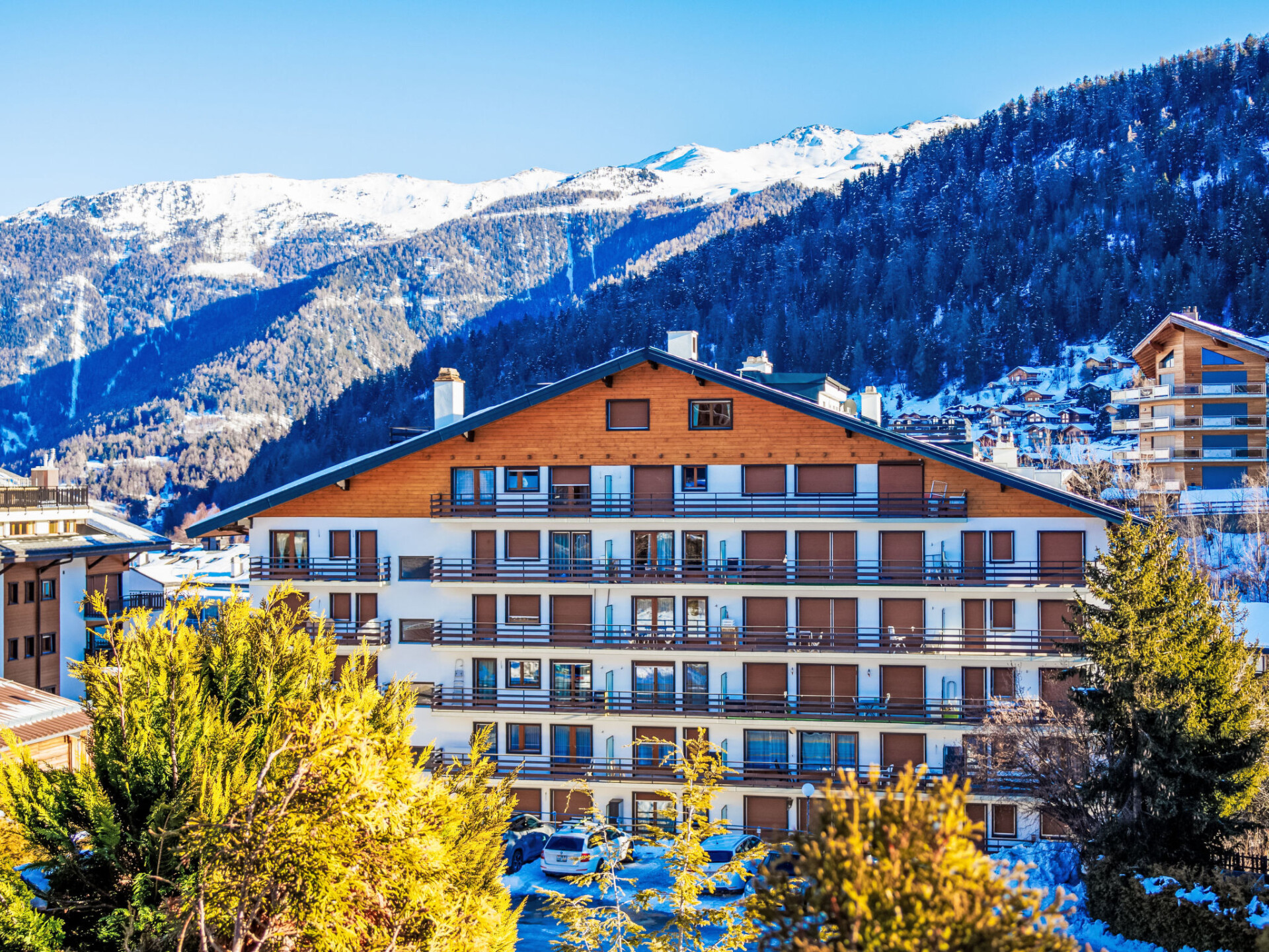 Residentie "Les Platanes". In het centrum. In het huis: bar, boetiek, lift, berging voor ski's, centrale verwarming, wasmachine, droger (voor medegebruik, extra). Supermarkt 250 m, restaurant 100 m, bakkerij 130 m, bushalte "Haute-Nendaz, station/poste" 200 m, treinstation "Sion" 16 km, openluchtzwembad 800 m. Golfterrein (18 holes) 16 km, tennis, kabelbaan op 750 m, skibushalte 150 m, ijsbaan 200 m, kinderspeelplaats 600 m. Gratis skibus. Vergelijkbare accommodaties kunnen worden geboekt.