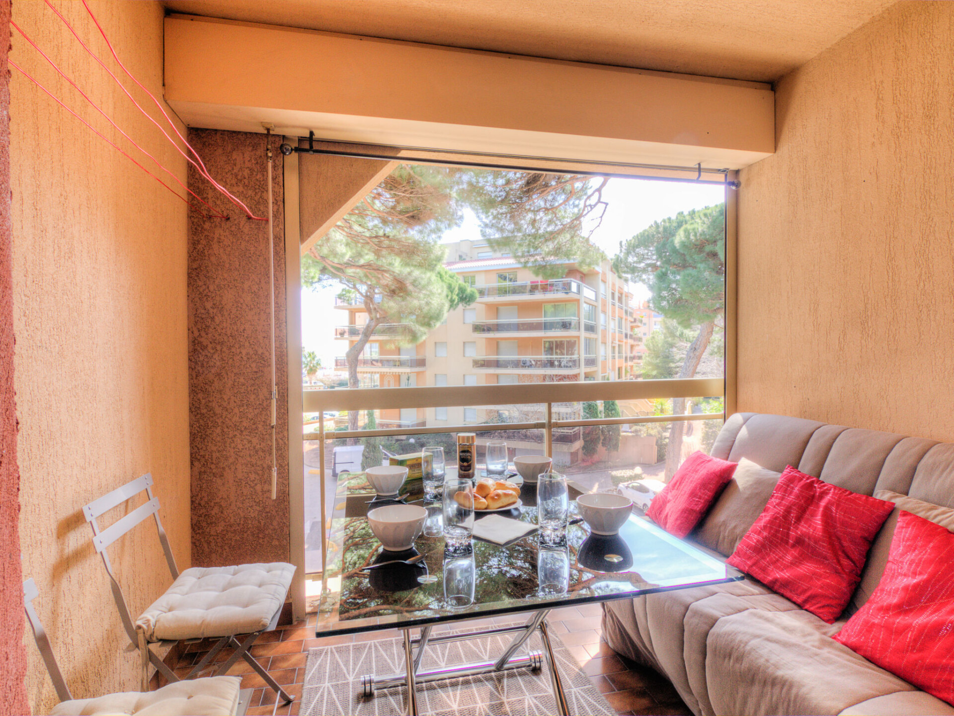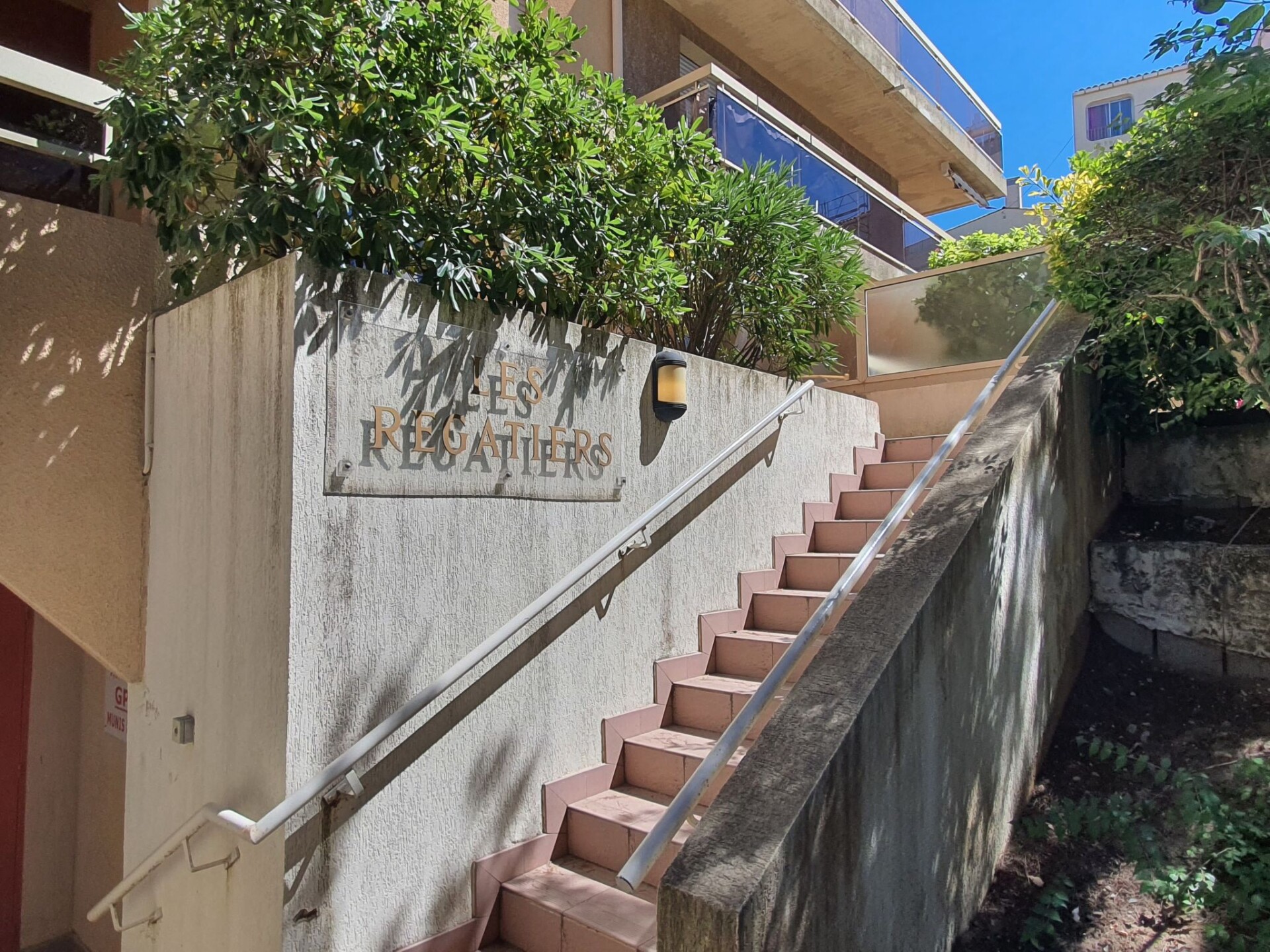 Residentie "Les Régatiers", van 2 verdiepingen. In de plaats Hyeres, 300 m van zee. Trappenweg (12 treden) naar het huis. Openbare parkeerplaatsen 450 m. Bushalte "Yacht Club" 180 m, zandstrand 300 m. Jachthaven 400 m. Attracties in de buurt: kiddy parc. Geen lift. De sleuteloverdracht vindt plaats bij het agentschap INTERHOME in Hyères sur le port.