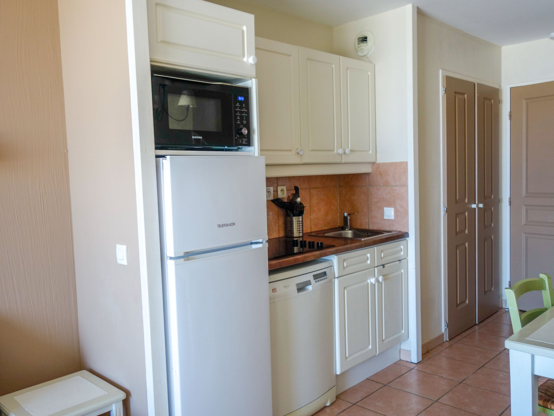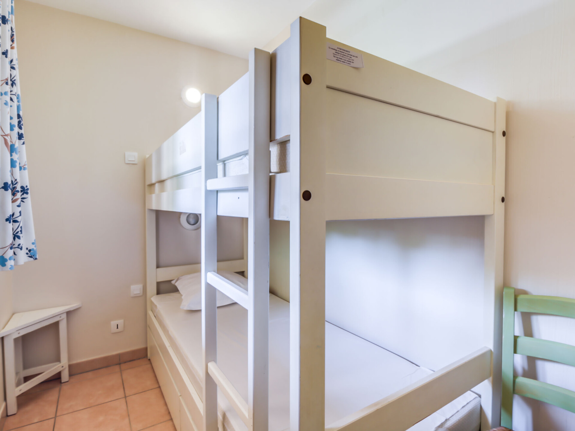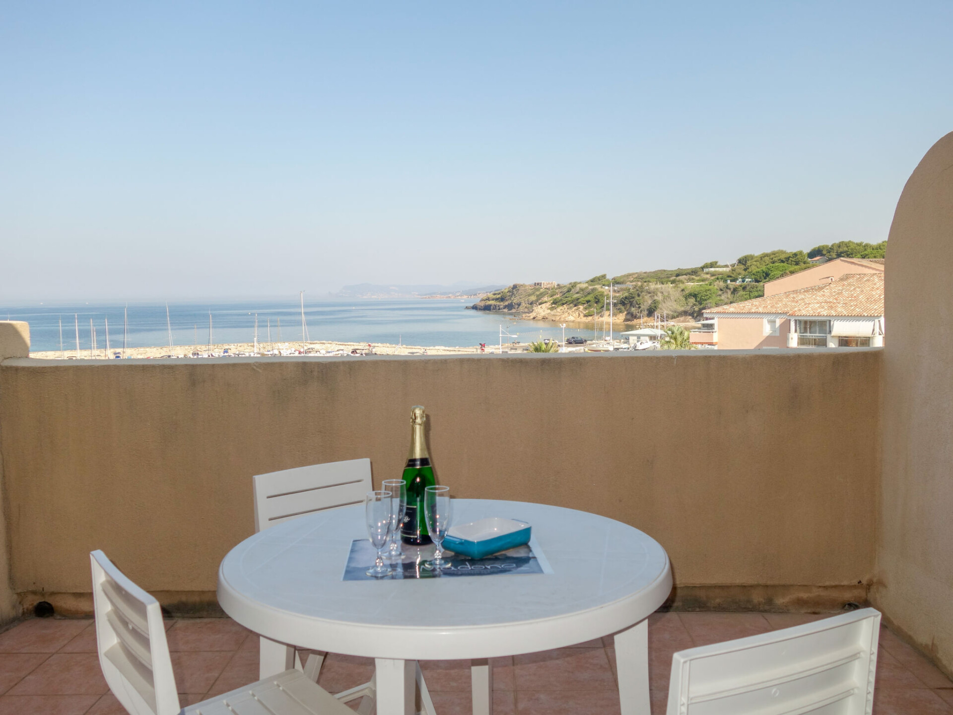 Appartement 3-kamers 45 m2 op 2 verdiepingen op de 2e verdieping. Doelmatig en mooi ingericht: woon-/eetkamer met 2 bedden (80 cm, lengte 190 cm), TV (Flatscreen TV). Uitgang naar het terras. Cabine met 1 x 2 stapelbedden (80 cm, lengte 190 cm). Kookhoek (afwasmachine, 4 keramische glas kookplaten, broodrooster, waterkoker, diepvriezer, elektrische koffiemachine, combimagnetron). Douche/WC. Bovenverdieping: 1 kamer met 1 2-pers bed (140 cm, lengte 190 cm). Uitgang naar het balkon. Bad/WC. Elektrische verwarming. Balkon 12 m2, op het westen gelegen, terras 7 m2, overdekt, op het westen gelegen. Terrasmeubelen. Mooi uitzicht op zee. Ter beschikking: wasmachine. Internet (WiFi, extra). Parkeerplaats nr. 549 (niveau 2) (overdekt), hoogte 190 cm, breedte 249 cm. Niet rokers woning. Maximaal 1 huisdier/hond toegestaan. TV alleen FR. Rookmelders, geen lift. In plaats van een afgesloten slaapkamer bevinden sommige slaapgedeeltes zich in een open ruimte (galerij, nis, etc.).