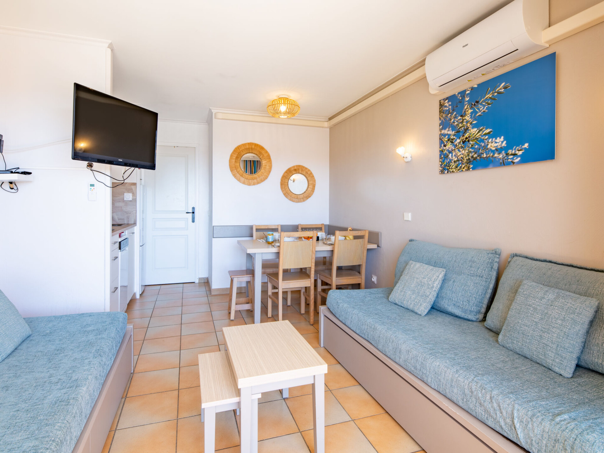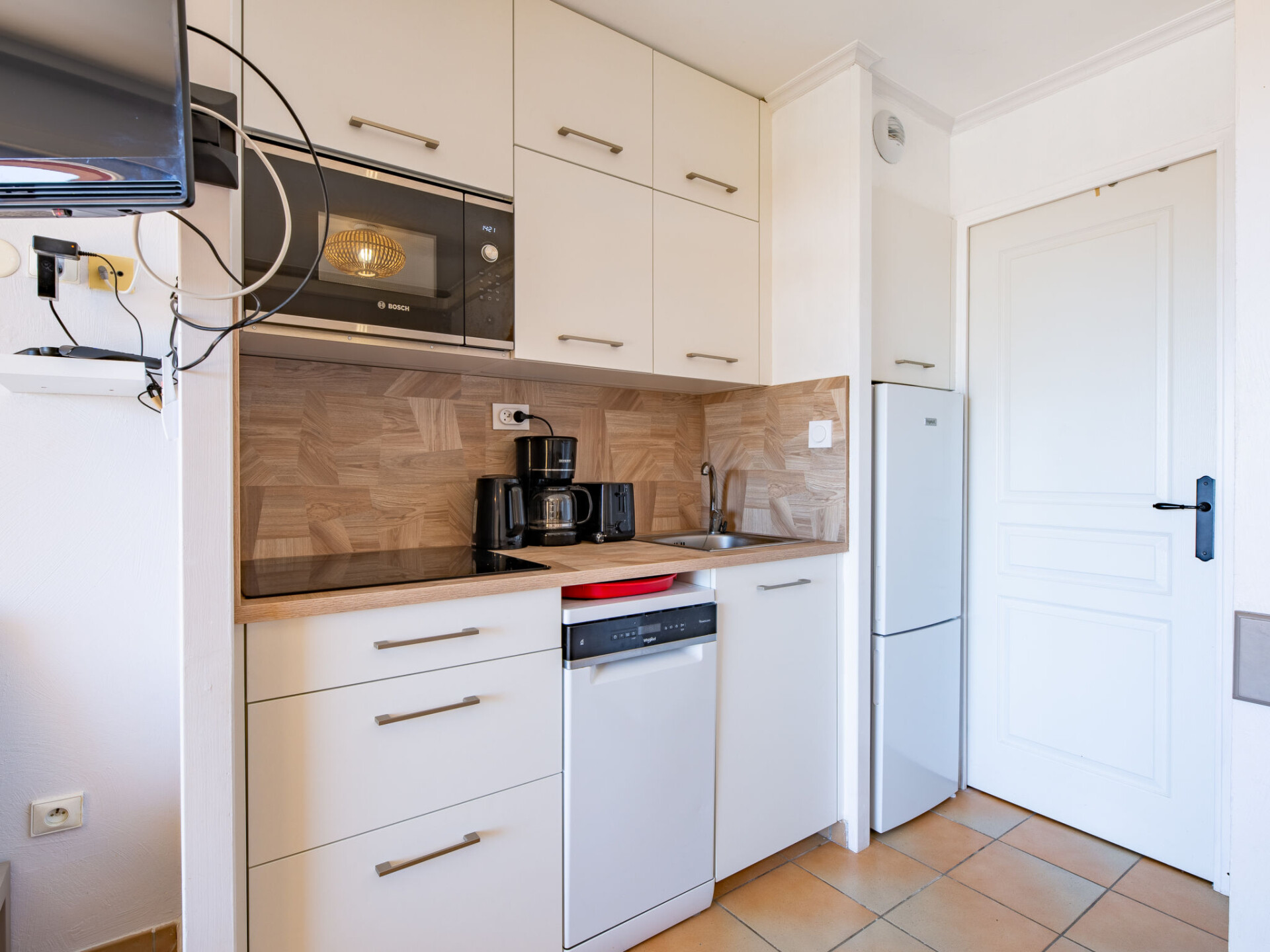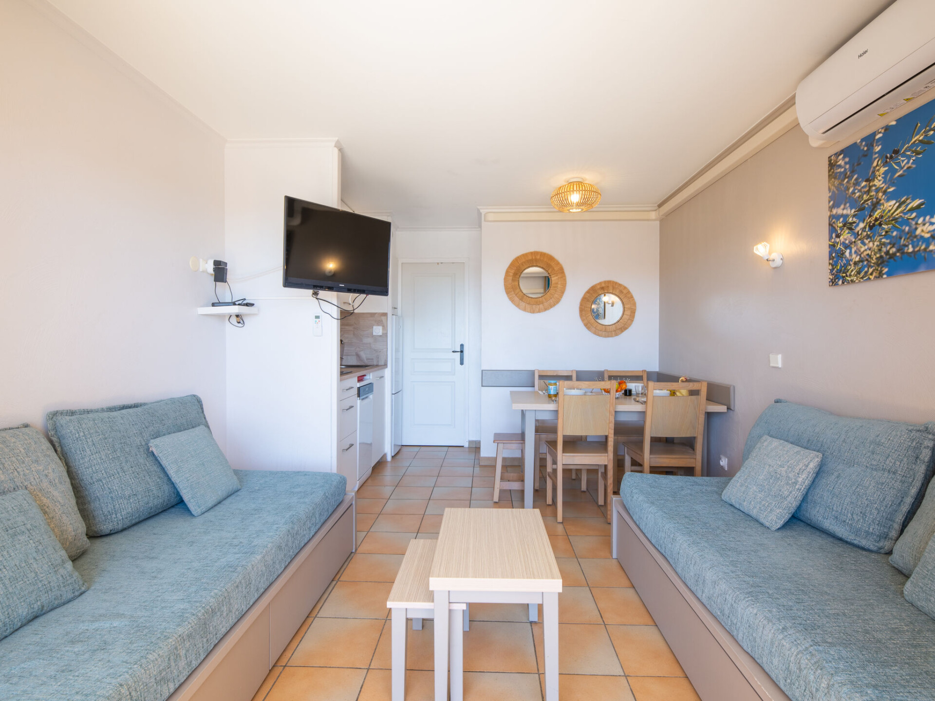 Appartement 2-kamers 29 m2 op de 2e verdieping, op het zuiden gelegen. Mooi ingericht: hal. Woon-/eetkamer met 2 bedden (80 cm, lengte 190 cm), TV (Flatscreen TV). Uitgang naar het balkon. 1 kamer, op het noorden met 1 2-pers bed (140 cm, lengte 190 cm). Open keuken (afwasmachine, 3 inductiekookplaten, broodrooster, waterkoker, diepvriezer, elektrische koffiemachine). Bad/WC. Air-conditioning, heteluchtverwarming. Balkon 9 m2. Balkonmeubilair. Uitzicht op zee. Ter beschikking: strijkijzer, haardroger. Internet (WiFi, gratis). Parkeerplaats (overdekt, 1 Auto). Niet rokers woning. Maximaal 1 huisdier/hond toegestaan. Rookmelders. Aanbod door een particulier volgens art. 155, IV van CGI. 83107002921RV