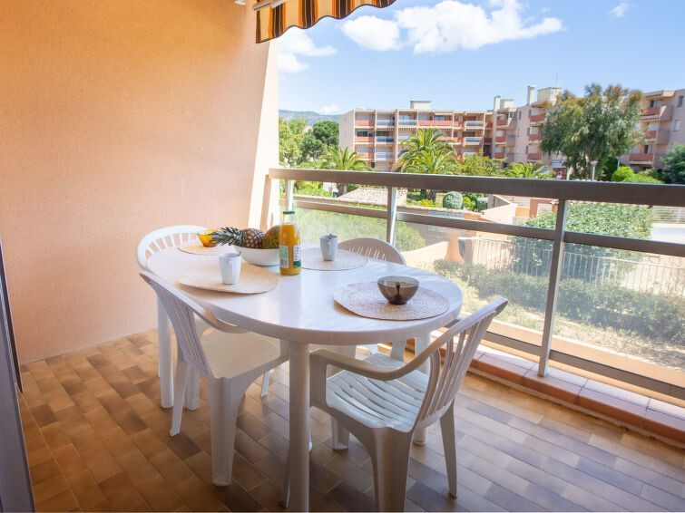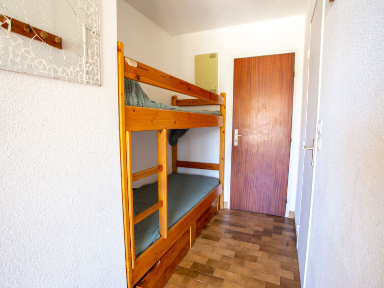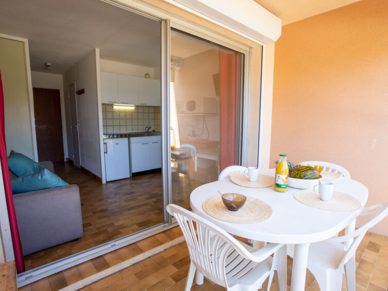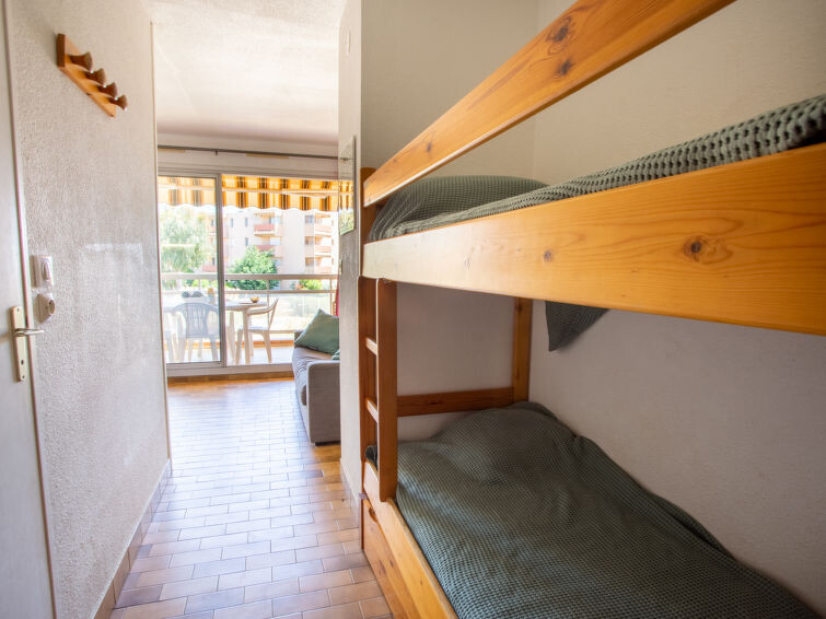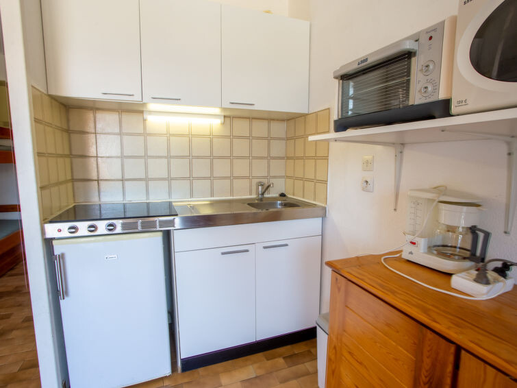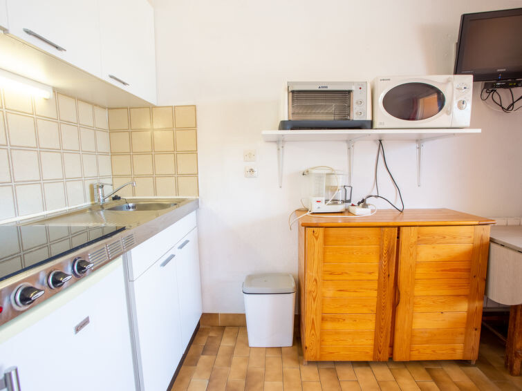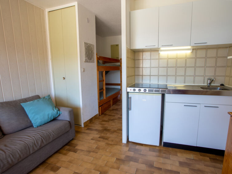 Appartement 1-kamer 19 m2 op de 1e verdieping. Het objekt is geschikt voor 2 volwassenen + 2 kinderen. Eenvoudig ingericht: woon-/eetkamer met 1 2-pers divanbed (140 cm, lengte 190 cm), TV (Flatscreen TV). Uitgang naar het balkon. Hal met 1 x 2 stapelbedden (70 cm). Kookhoek (mini-oven, 3 inductiekookplaten, broodrooster, waterkoker, magnetron, elektrische koffiemachine). Bad/WC. Elektrische verwarming. Klein balkon 5 m2, op het oosten gelegen. Balkonmeubilair. Uitzicht op het zwembad. Ter beschikking: Internet (Internet (WiFi), extra). Garage nr. 378, hoogte 180 cm, breedte 200 cm. Maximaal 1 huisdier/hond toegestaan. TV alleen FR. Rookmelders. 83019000603CZ