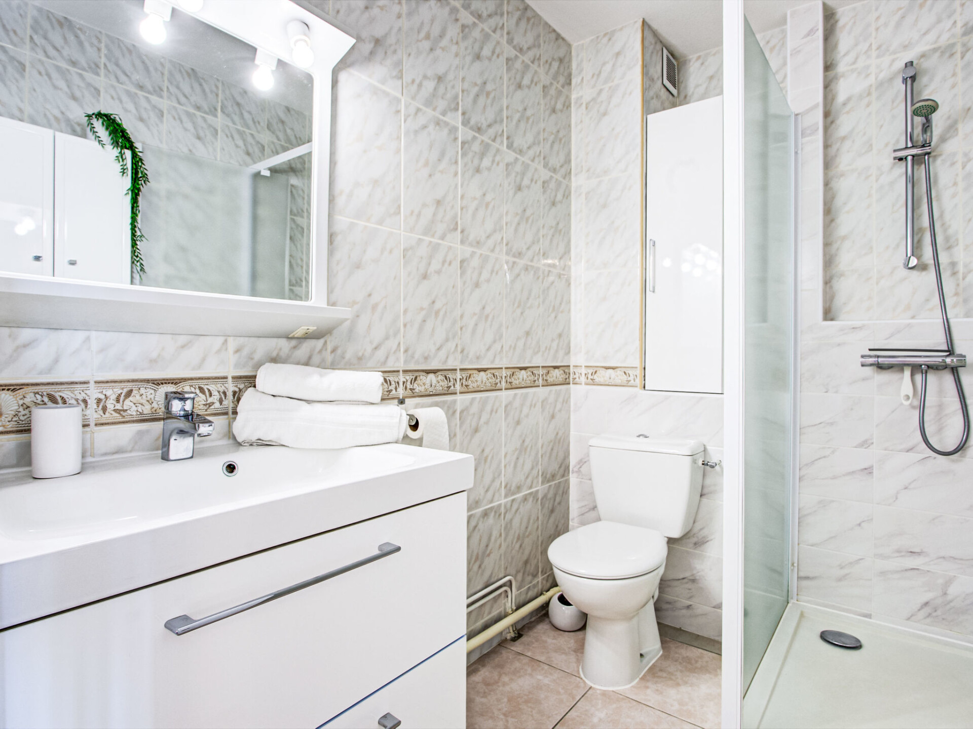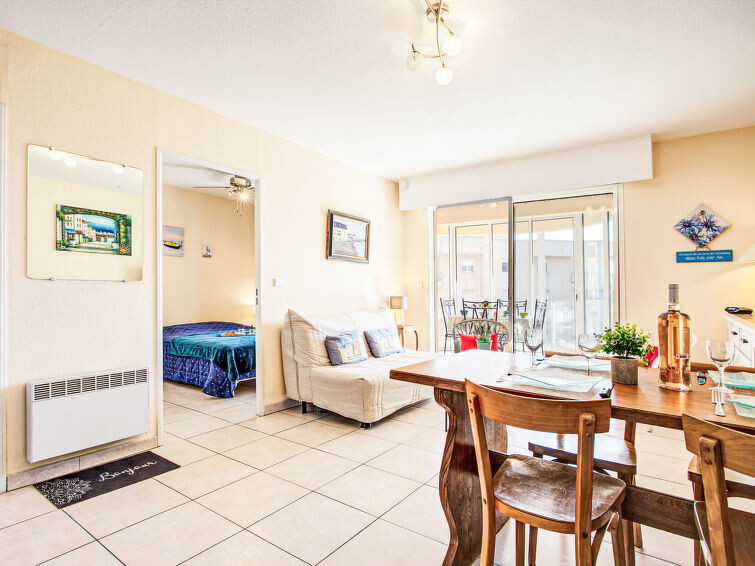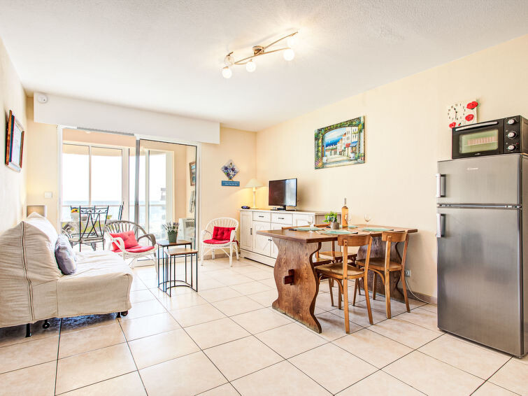Canet Plage: Mooi residentie "Les Rives du Soleil", van 10 verdiepingen. In de wijk Canet Sud, 50 m van zee, 50 m van het strand, de straat oversteken. In het complex: lift. Openbare parkeergarage op 50 m, openbare parkeerplaatsen in de straat. Winkel 50 m, levensmiddelenwinkel 100 m, winkelcentrum 8 km, restaurant 20 m, bakkerij 200 m, café 20 m, bushalte 50 m, treinstation "Perpignan" 12 km, zandstrand 50 m, duikschool 18 km, openluchtzwembad 2 km, thermaalbad 700 m. Jachthaven 5 km, golfterrein (18 holes) 6 km, tennis 4 km, midgetgolf 100 m. Attracties in de buurt: Perpignan 12 km, Collioure 25 km, Banyuls 37 km, Espagne 35 km, Andorre 180 km, Barcelone 200 km. Bekende meren kunnen gemakkelijk worden bereikt: Lac de Villeneuve de la Raho 19 km, Lac de Saint Jean Pla de Corts 39 km, Gorges de Gouleyrous 42 km. Wandelgebied Abbaye de St Martin du Canigou 70 km, Pic du Canigou 77 km, Lac des Bouillouses 105 km.
