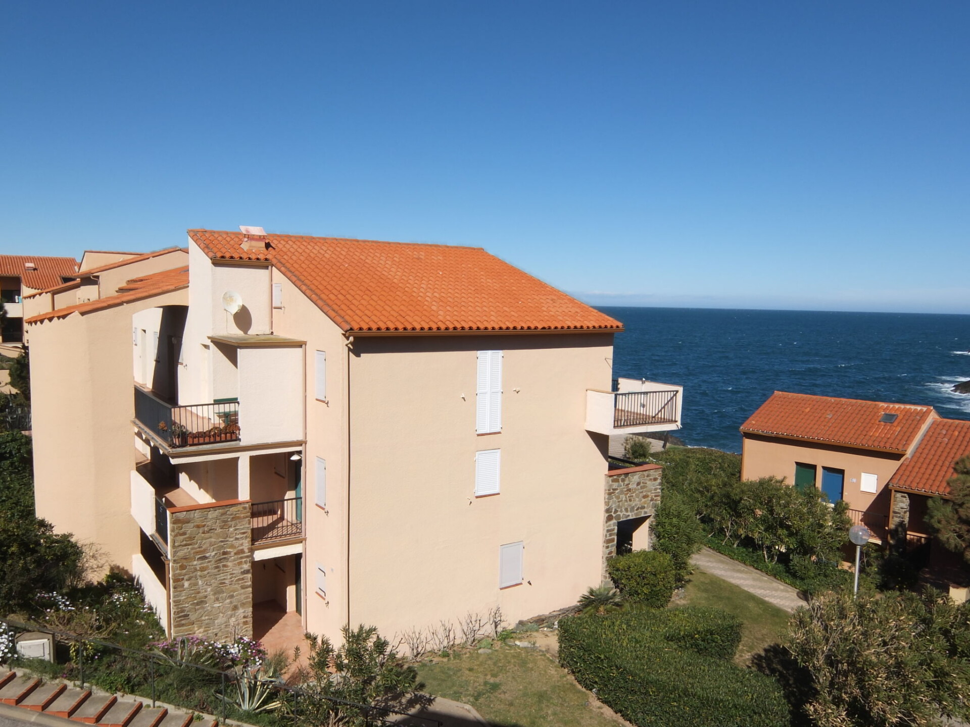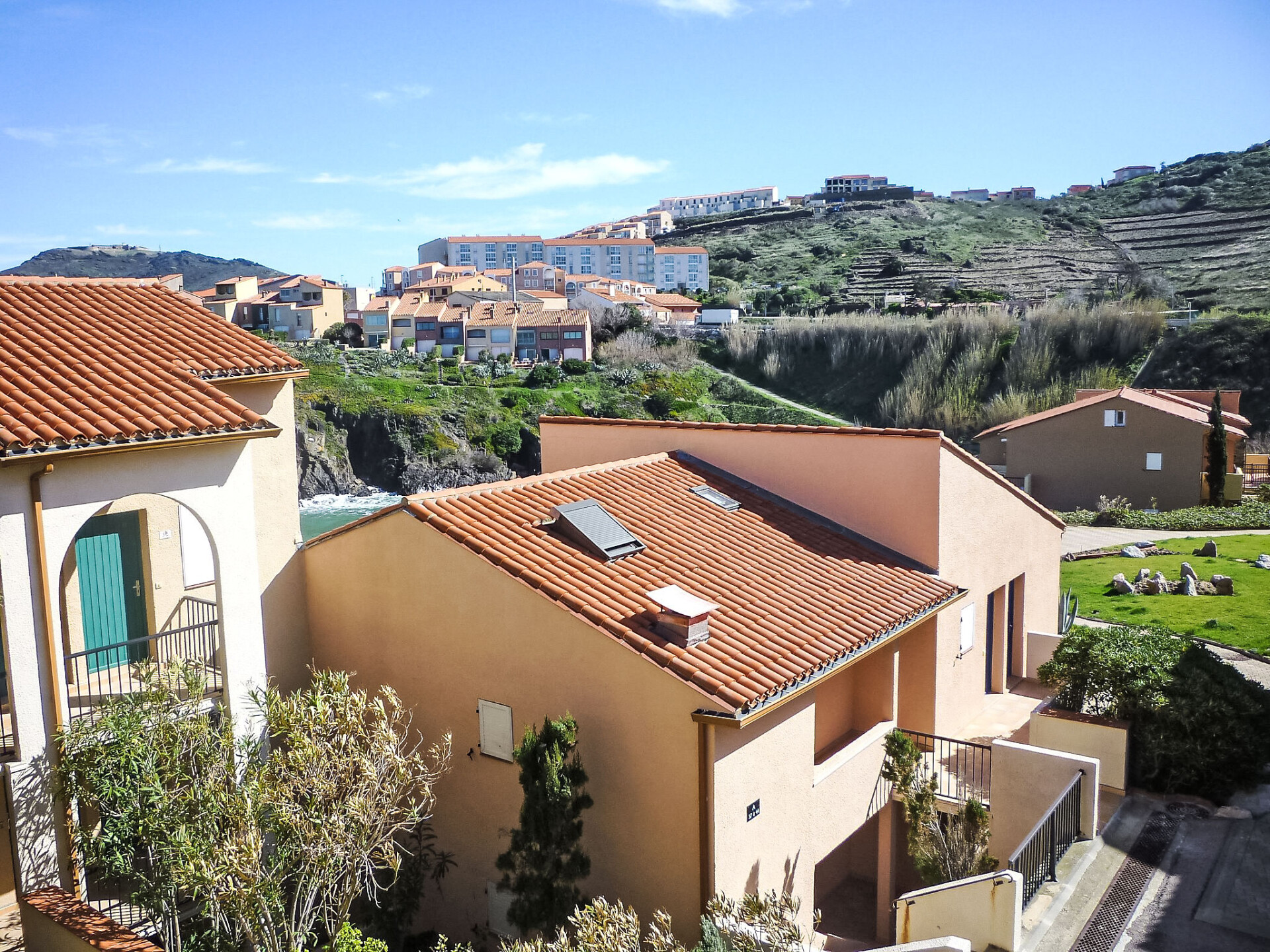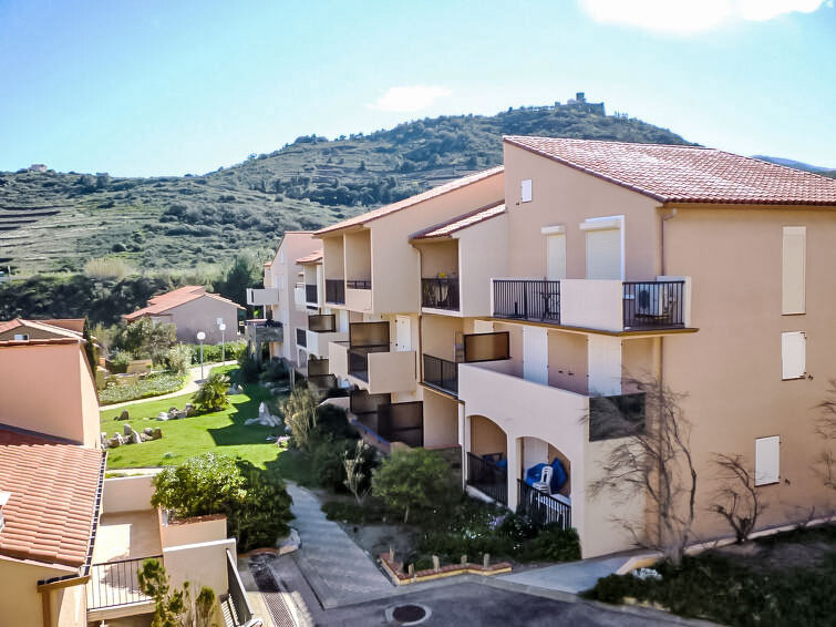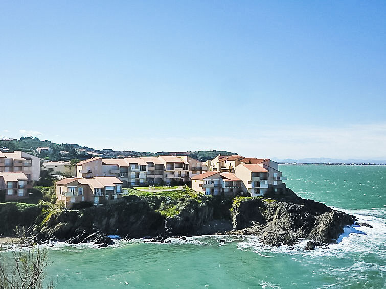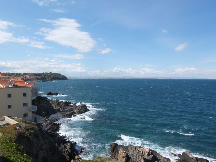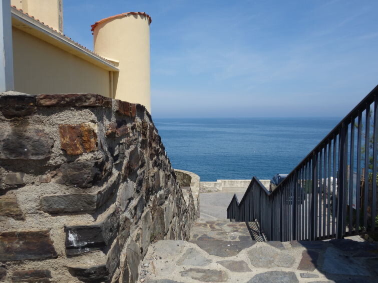Op de flank van een klif gelegen, boven de baai. Direkte toegang tot een baai (klein zand- en kiezelstrand). Residentie "Les Roches Bleues". Aan de rand van de plaats, 1.5 km van het centrum van Collioure, 200 m van zee, 200 m van het strand. Winkel 1 km, supermarkt 400 m, restaurant 500 m, bushalte 300 m, treinstation "Collioure" 2.5 km, kiezelstrand "Plage de l'Oli" 200 m, duikschool 3 km. Jachthaven 1 km, golfterrein (27 holes) 25 km, zeilschool 2.2 km. Attracties in de buurt: Château Royal de Collioure 2 km, Port Vendres 1 km, Banyuls sur Mer 8 km. Geen lift.