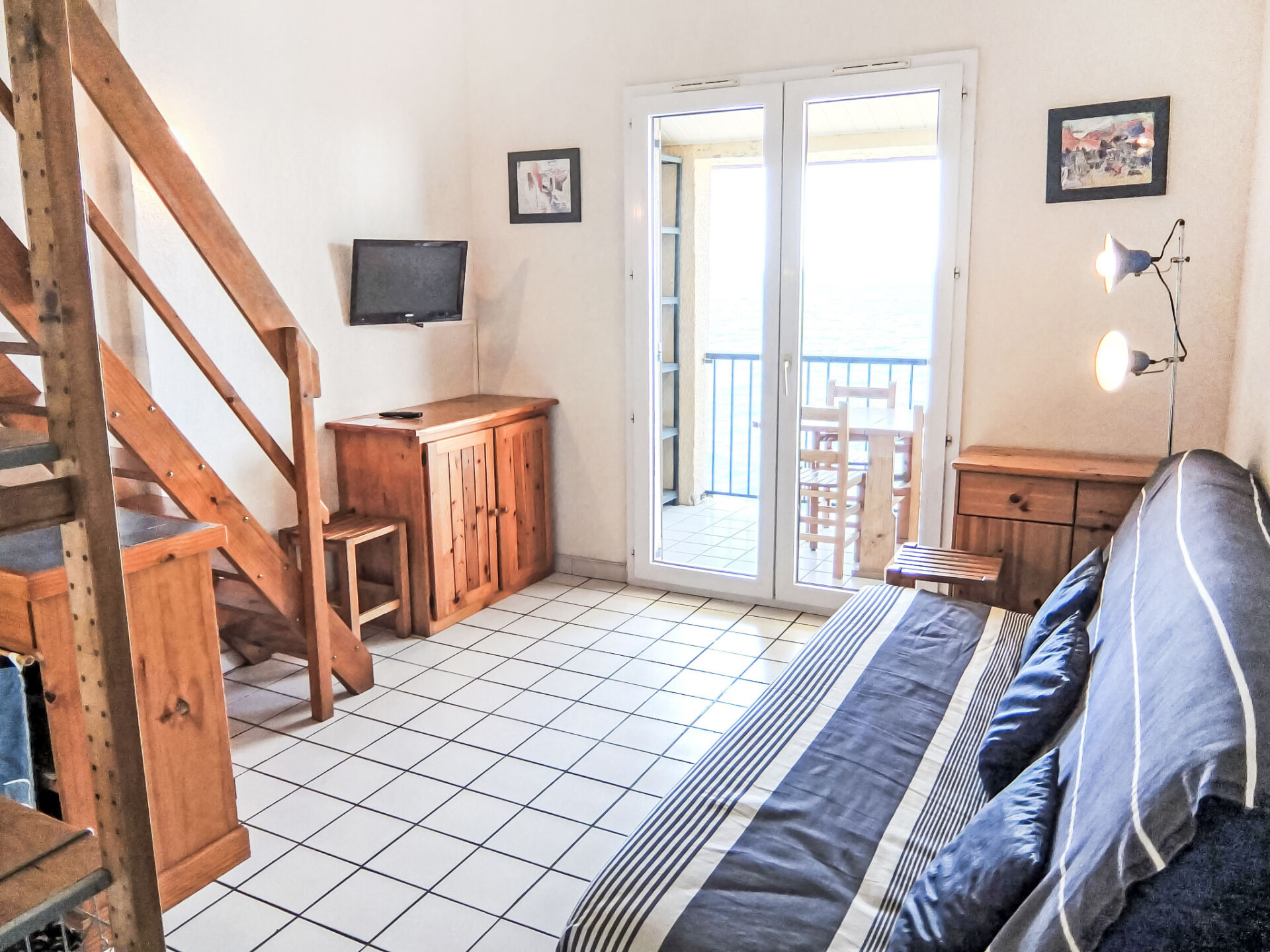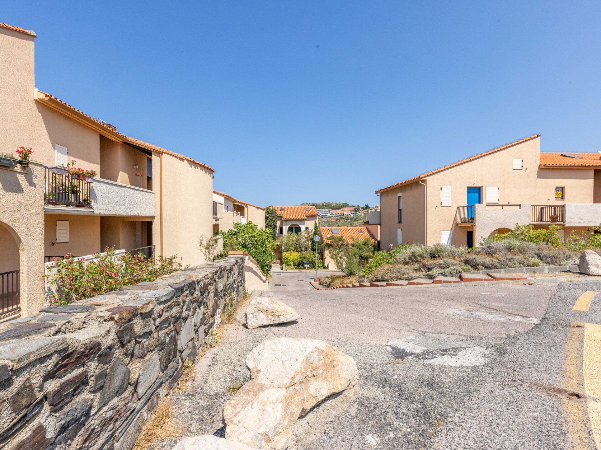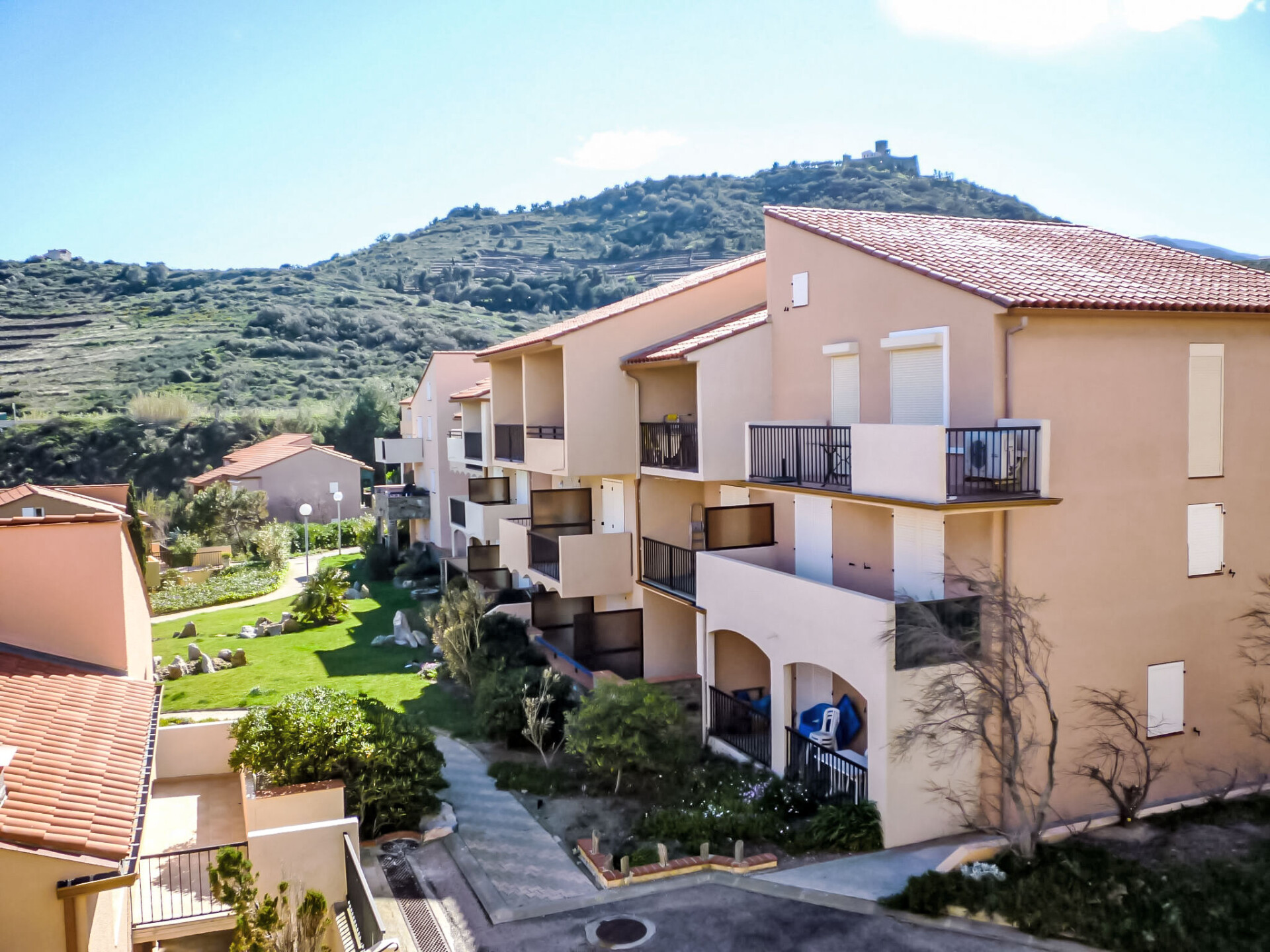 Op de flank van een klif gelegen, boven de baai. Direkte toegang tot een baai (klein zand- en kiezelstrand). Residentie "Les Roches Bleues". Aan de rand van de plaats, 1.5 km van het centrum van Collioure, 200 m van zee, 200 m van het strand. Winkel 1 km, supermarkt 400 m, restaurant 500 m, bushalte 300 m, treinstation "Collioure" 2.5 km, kiezelstrand "Plage de l'Oli" 200 m, duikschool 3 km. Jachthaven 1 km, golfterrein (27 holes) 25 km, zeilschool 2.2 km. Attracties in de buurt: Château Royal de Collioure 2 km, Port Vendres 1 km, Banyuls sur Mer 8 km. Geen lift.