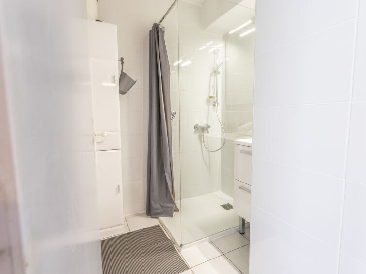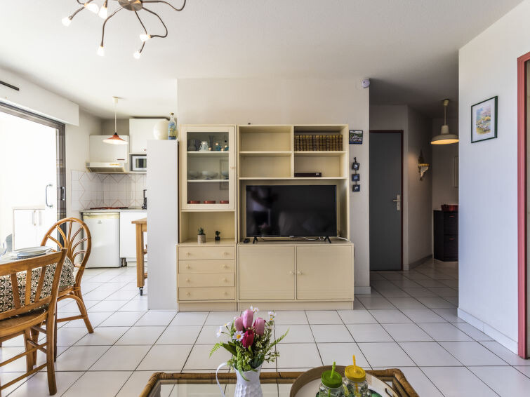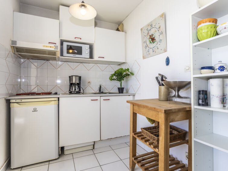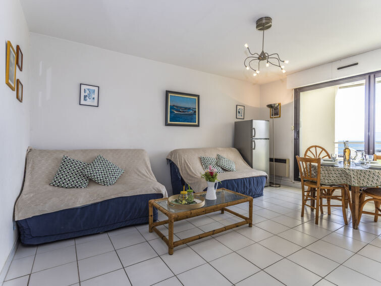 Appartement 3-kamers 41 m2 op de 3e verdieping. Woon-/eetkamer met TV. Uitgang naar het terras. 1 kamer met 1 2-pers bed (140 cm, lengte 190 cm). 1 kleine kamer met 1 x 2 stapelbedden (90 cm, lengte 190 cm). Kookhoek (2-pits kookplaat, afwasmachine, magnetron). Douche, aparte WC. Elektrische verwarming. Terras 9 m2 gedeeltelijk overdekt, op het oosten gelegen. Terrasmeubelen. Uitzicht op zee. Ter beschikking: Internet (Internet (WiFi), extra). Parkeerplaats nr. 106. Geschikt voor families. Rookmelders. Aanbod door een particulier volgens art. 155, IV van CGI.