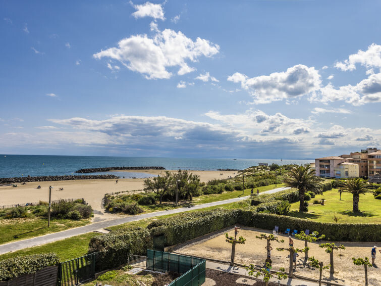 Residentie "Les Roches Marines", van 6 verdiepingen. In de wijk Rochelongue, 30 m van zee, 30 m van het strand. In het huis: lift. Openbare parkeerplaatsen 150 m. Winkel, supermarkt, restaurant, bakkerij, café 20 m, fietsverhuur 80 m, bushalte "Mail de Rochelongue" 400 m, zandstrand "Plage de Rochelongue" 30 m. Jachthaven 2.8 km, golfterrein (27 holes) 1.4 km, tennis 4 km, midgetgolf 2.6 km, kinderspeelplaats 200 m. Attracties in de buurt: Aqualand 2.1 km, Ile des Loisirs 2.6 km, Aquapark 1.8 km.