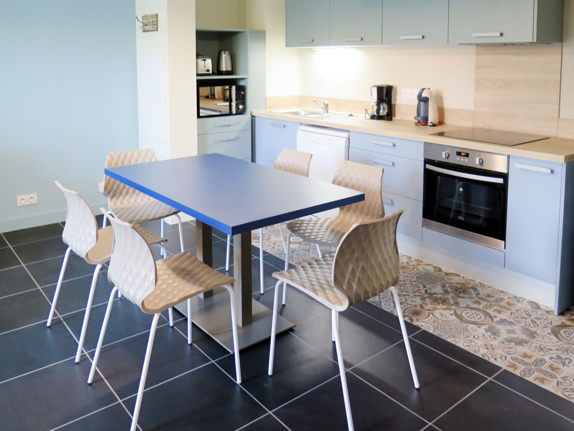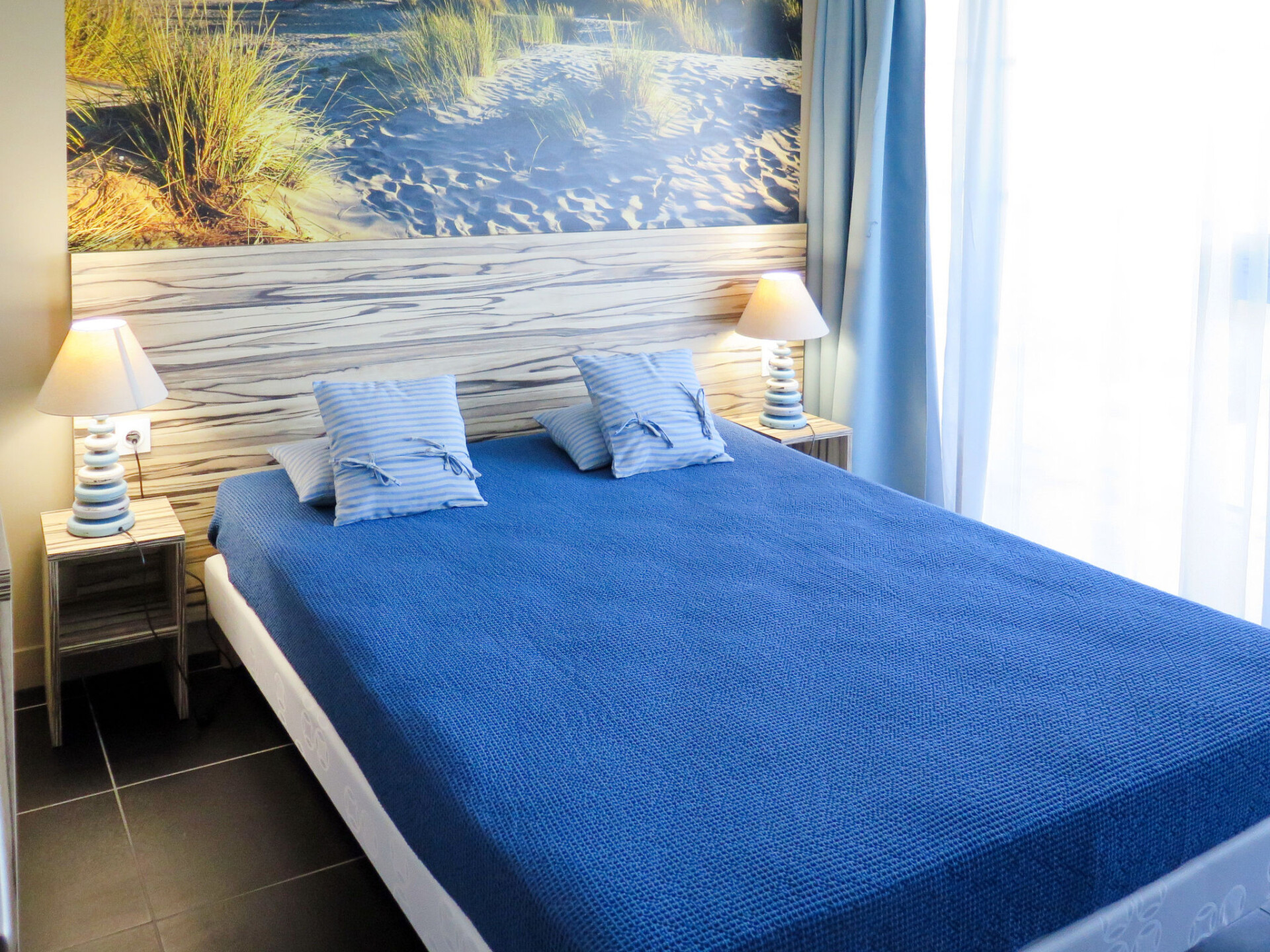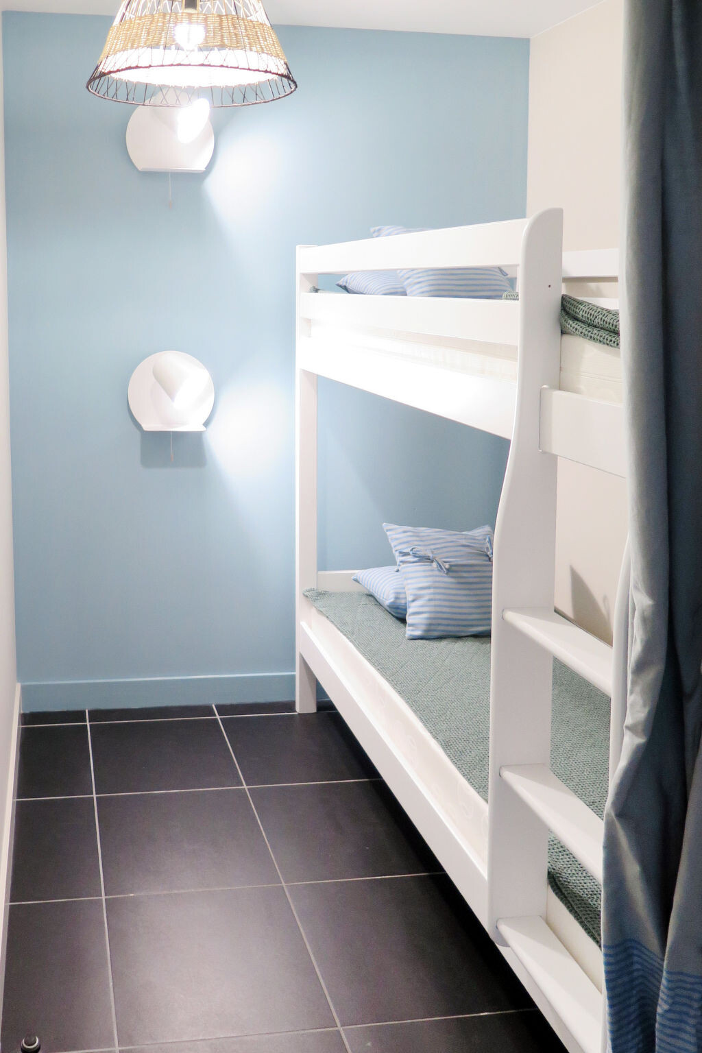 "Les Sables d’Or T2 Cab", appartement 2-kamers 43 m2, op de begane grond. Het objekt is geschikt voor 2 volwassenen + 2 kinderen. Modern en gezellig ingericht: woon-/slaapkamer met 1 2-pers divanbed, eettafel, TV en CD-speler. Uitgang naar het terras. 1 kamer met 1 2-pers bed (160 cm). Uitgang naar het terras. 1 open kamer met 1 x 2 stapelbedden (80 cm). Open keuken (oven, afwasmachine, 4 keramische glas kookplaten, broodrooster, waterkoker, magnetron, diepvriezer, elektrische koffiemachine, pads voor de koffiemachine (Dolce Gusto) extra). Douche/WC. Elektrische verwarming. Terras. Terrasmeubelen, ligstoelen (2). Ter beschikking: wasmachine, strijkijzer, kinderstoel, kinderbed (extra), haardroger. Internet (Internet (WiFi), gratis). Rookmelders.