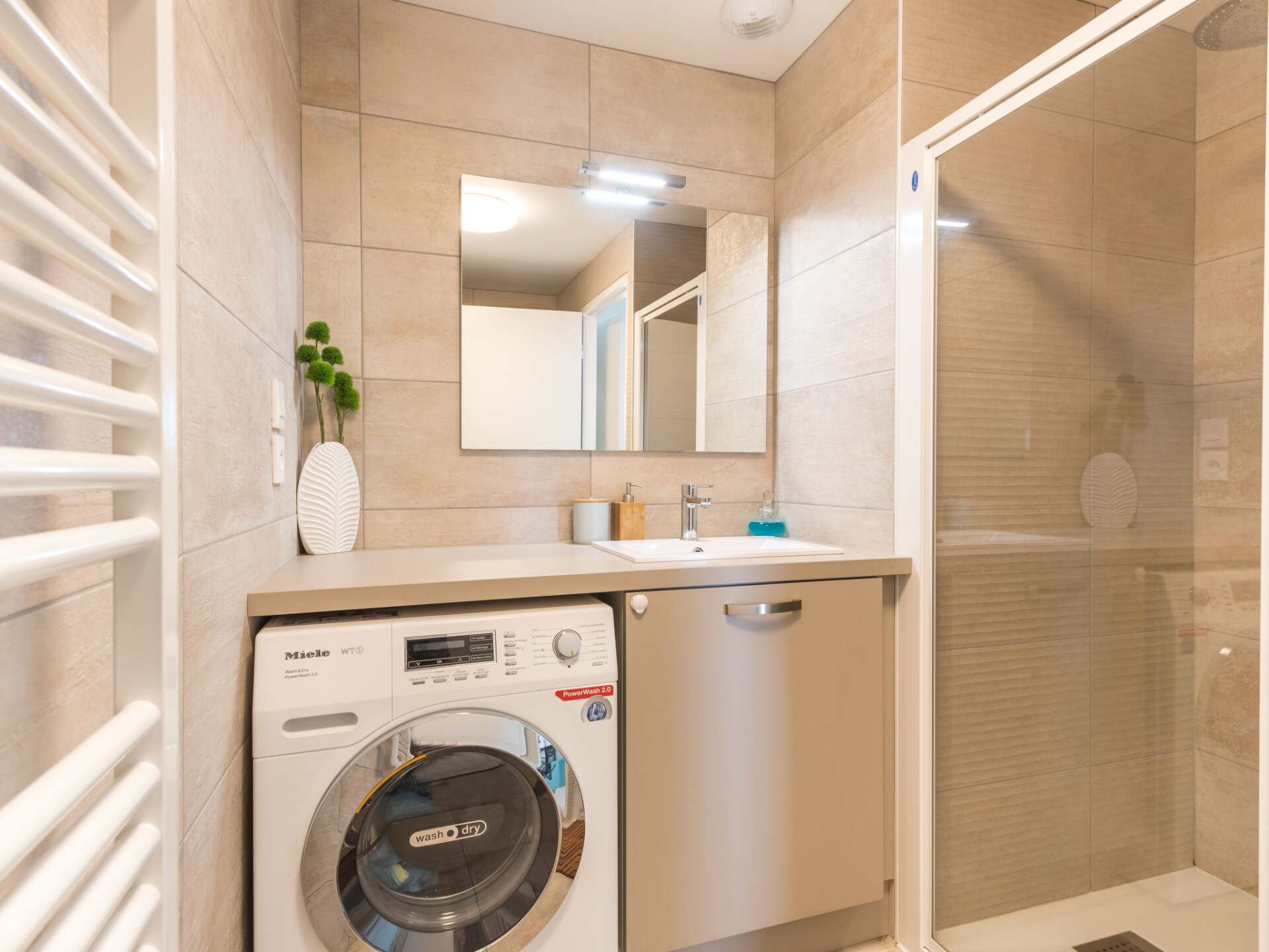 "Les Terrasses de la Plage", appartement 3-kamers 61 m2, op de begane grond. Zeer modern ingericht: woon-/eetkamer met TV (Flatscreen TV), elektrische rolluiken. Uitgang naar de zitplaats in de tuin. 1 kamer met 1 x 2 stapelbedden (90 cm, lengte 190 cm). 1 kamer met 1 2-pers bed (1 x 140 cm, lengte 190 cm), bad. Uitgang naar het terras. Open keuken (oven, afwasmachine, 3 inductiekookplaten, diepvriezer, elektrische koffiemachine, combimagnetron). Douche, aparte WC. Elektrische verwarming. Terras 12 m2, tuin 35 m2. Terrasmeubelen. Ter beschikking: wasmachine, droger, strijkijzer, kinderbed, haardroger. Internet (WiFi). Garage (1 Auto). Rookmelders. 56186 000572 P5