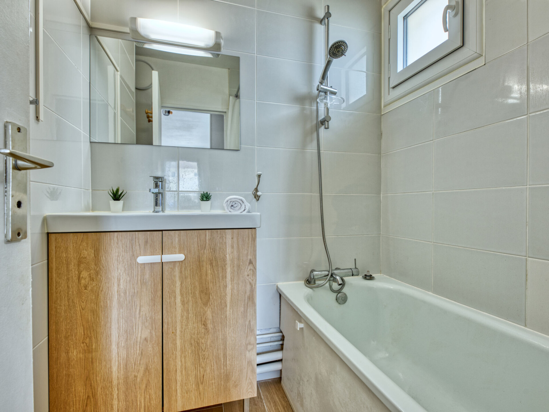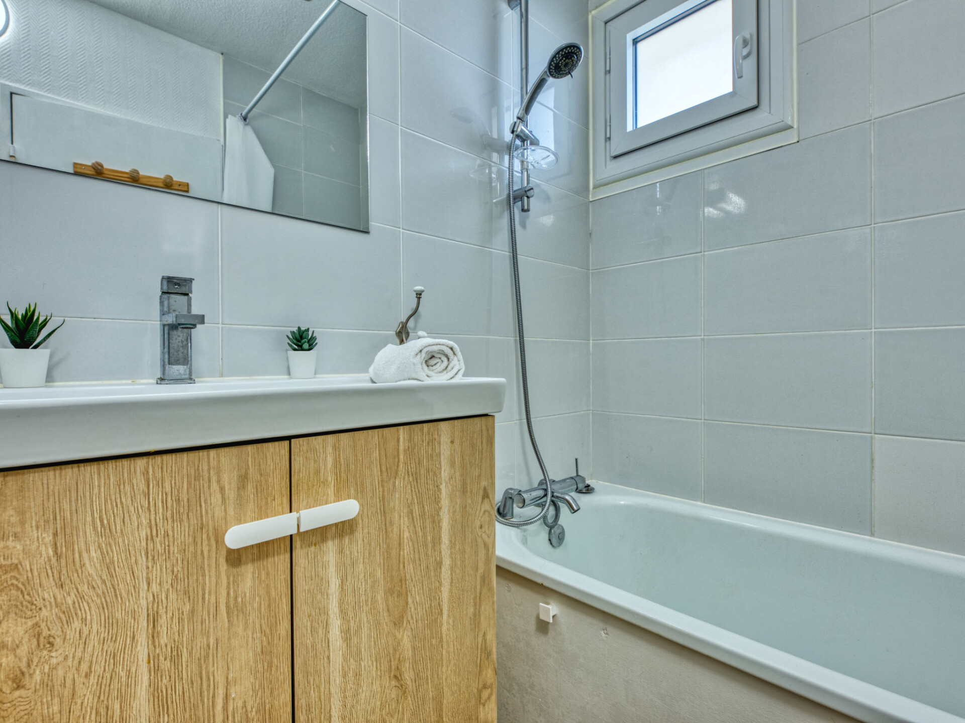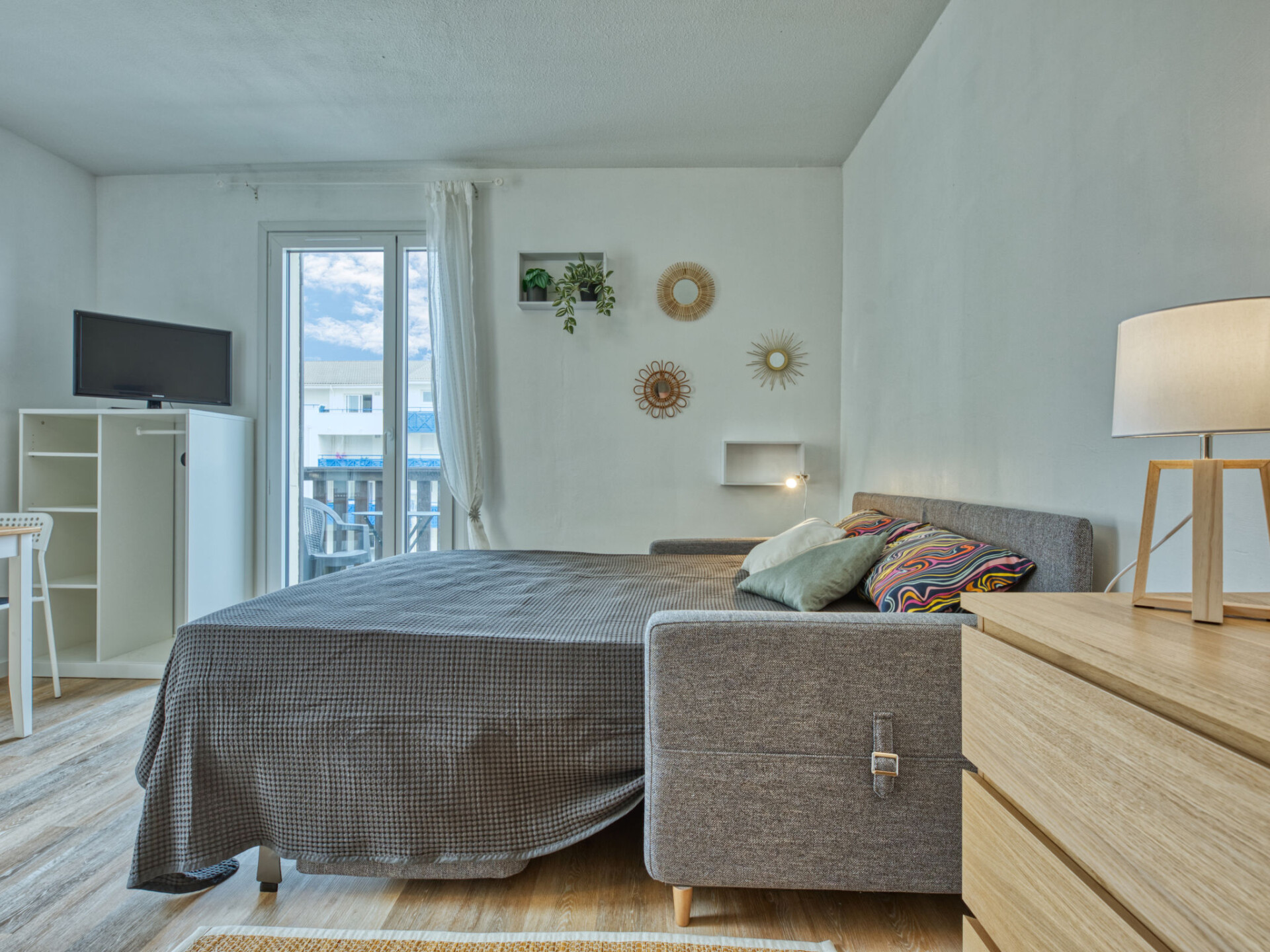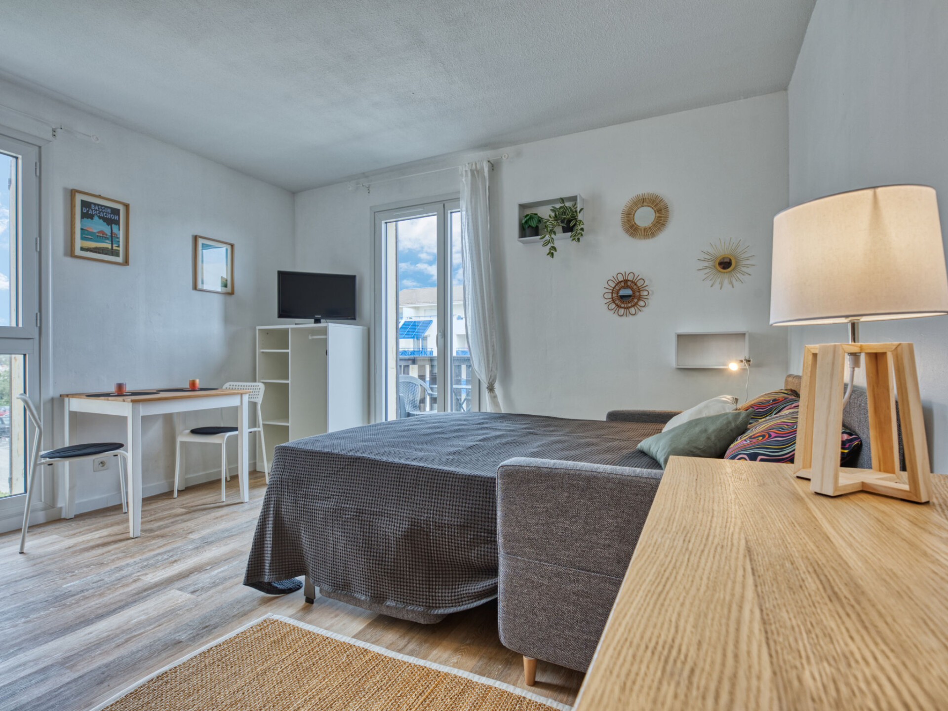 Studio 1-kamer 24 m2 op de 1e verdieping. Comfortabel ingericht: woon-/eetkamer met 1 2-pers divanbed (140 cm, lengte 190 cm), TV (Flatscreen TV). Uitgang naar het balkon. Open keuken (mini-oven, 2 keramische glas kookplaten, broodrooster, waterkoker, magnetron, elektrische koffiemachine). Bad/WC. Elektrische verwarming. Balkon 3 m2, op het zuiden gelegen en op het westen gelegen. Balkonmeubilair. Zijdelings uitzicht op de oceaan. Ter beschikking: Internet (WiFi, extra). Parkeerplaats. Niet rokers woning. Maximaal 1 huisdier/hond toegestaan. Rookmelders. Aanbod door een particulier volgens art. 155, IV van CGI.