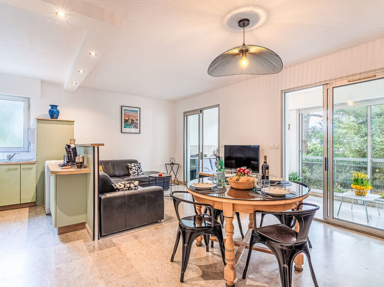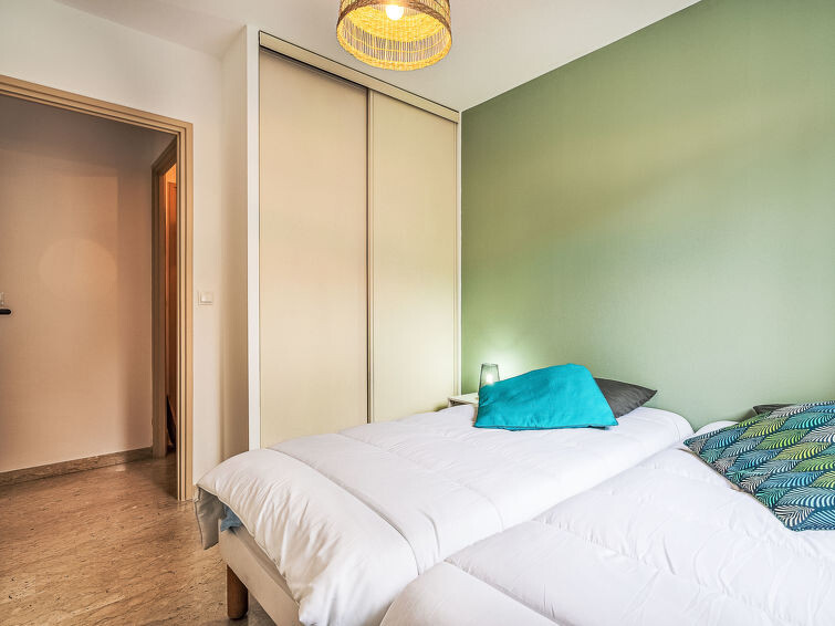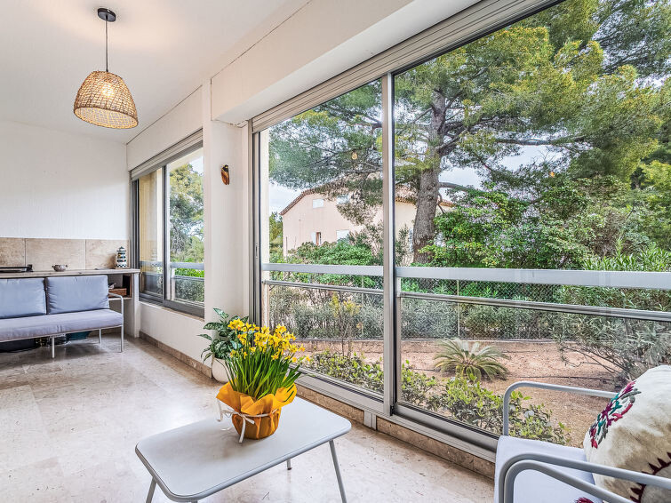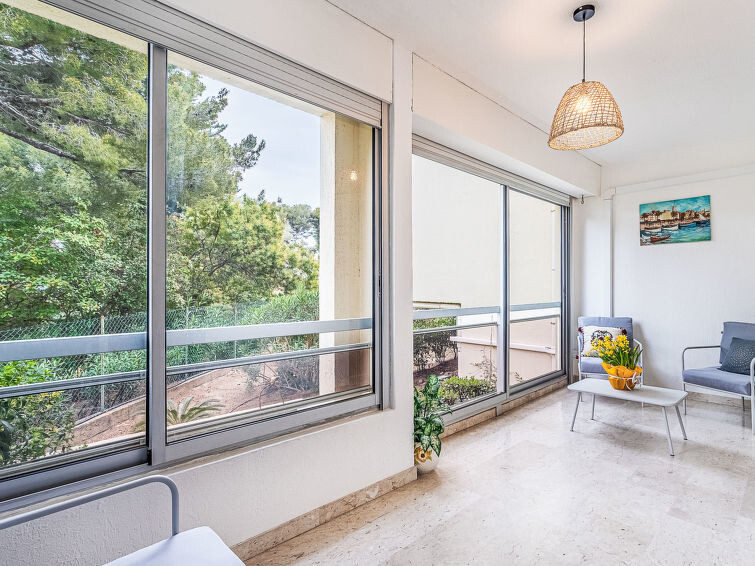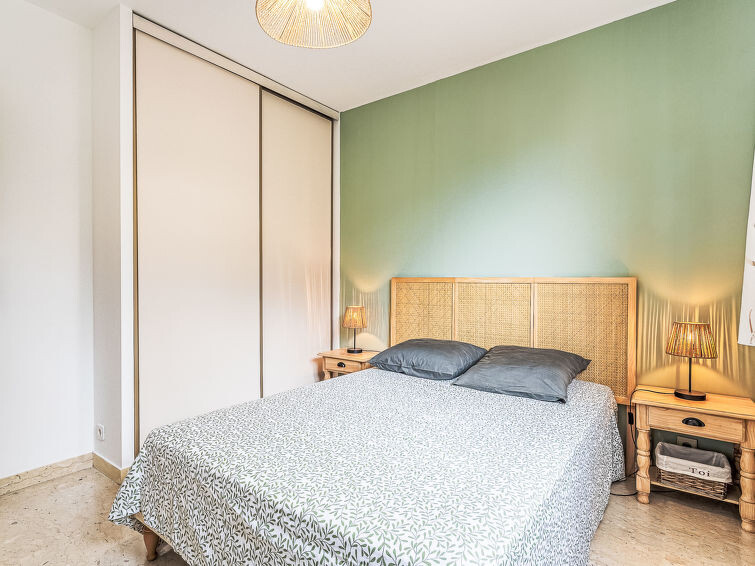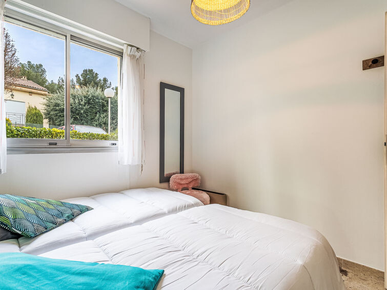 Appartement 3-kamers 60 m2, op verhoogde begane grond. Licht, mooi ingericht: woon-/eetkamer met veranda met 1 divanbed (140 cm, lengte 190 cm), TV (Flatscreen TV), air-conditioning. Uitgang naar de veranda. 1 kamer met 1 2-pers bed (140 cm, lengte 190 cm), TV (Flatscreen TV), ventilator. 1 kamer met 2 bedden (90 cm, lengte 190 cm), ventilator. Keuken (3-pits kookplaat, oven, afwasmachine, broodrooster, waterkoker, magnetron, diepvriezer, elektrische koffiemachine). Douche, aparte WC. Air-conditioning. Terras 10 m2, overdekt, op het zuiden gelegen en op het westen gelegen. Terrasmeubelen. Ter beschikking: wasmachine, strijkijzer. Internet (WiFi, gratis). Parkeerplaats (1 Auto). TV alleen FR. Rookmelders, geen lift. Aanbod door een particulier volgens art. 155, IV van CGI. 83123001943OH